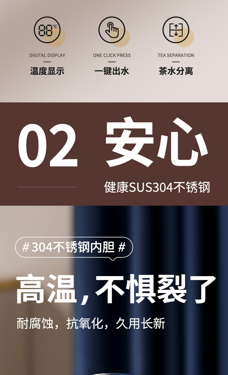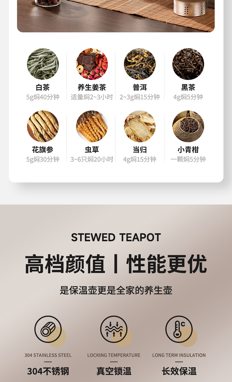 304智能显温保温壶不锈钢焖茶壶老白茶闷泡壶带过滤大容量暖水壶