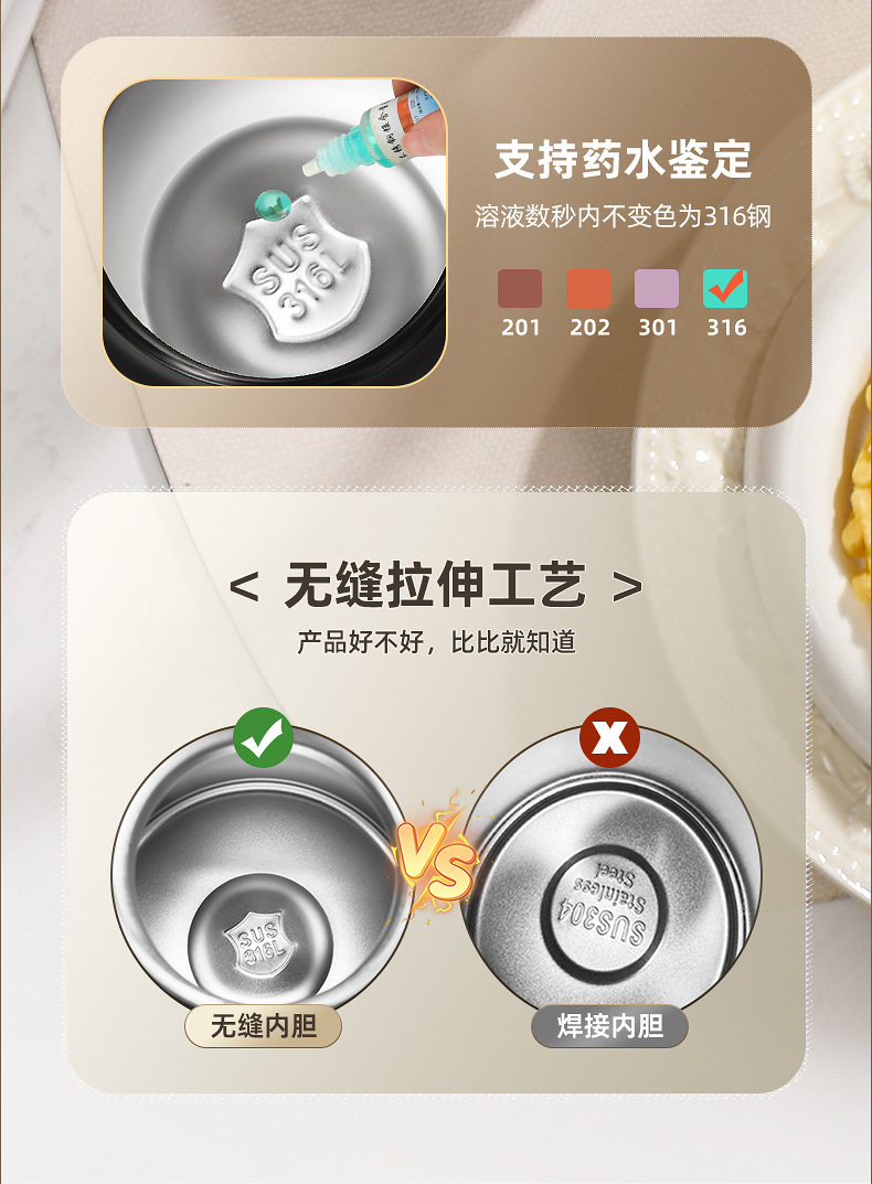 主体材质:316不锈钢内胆、奥氏体不锈钢