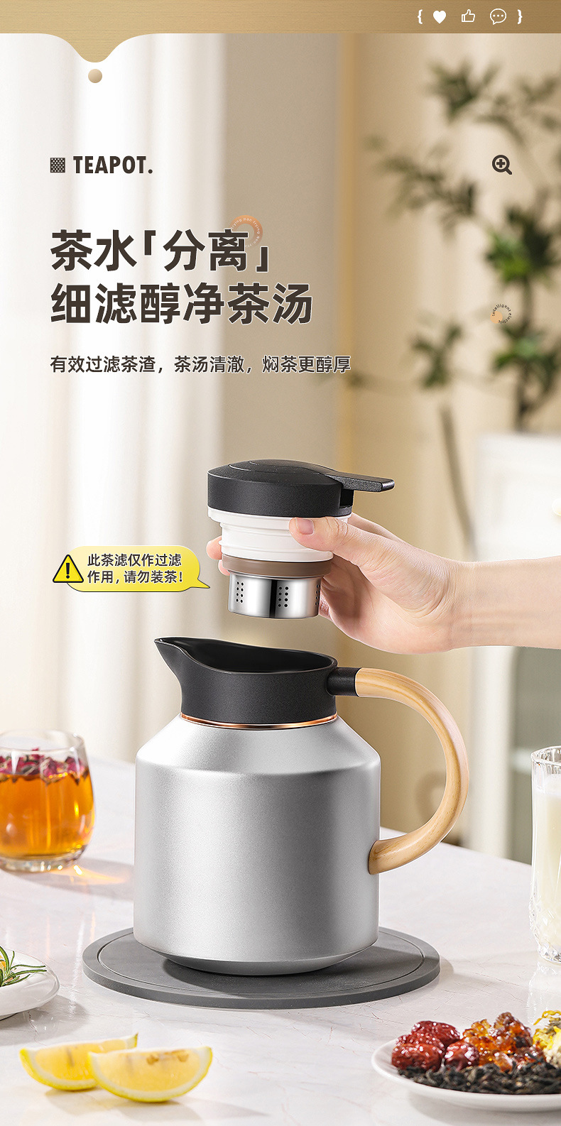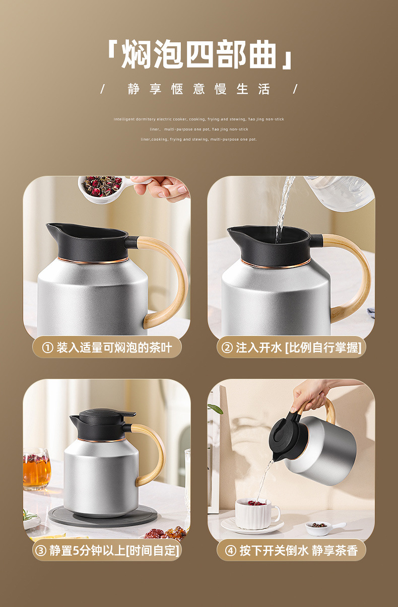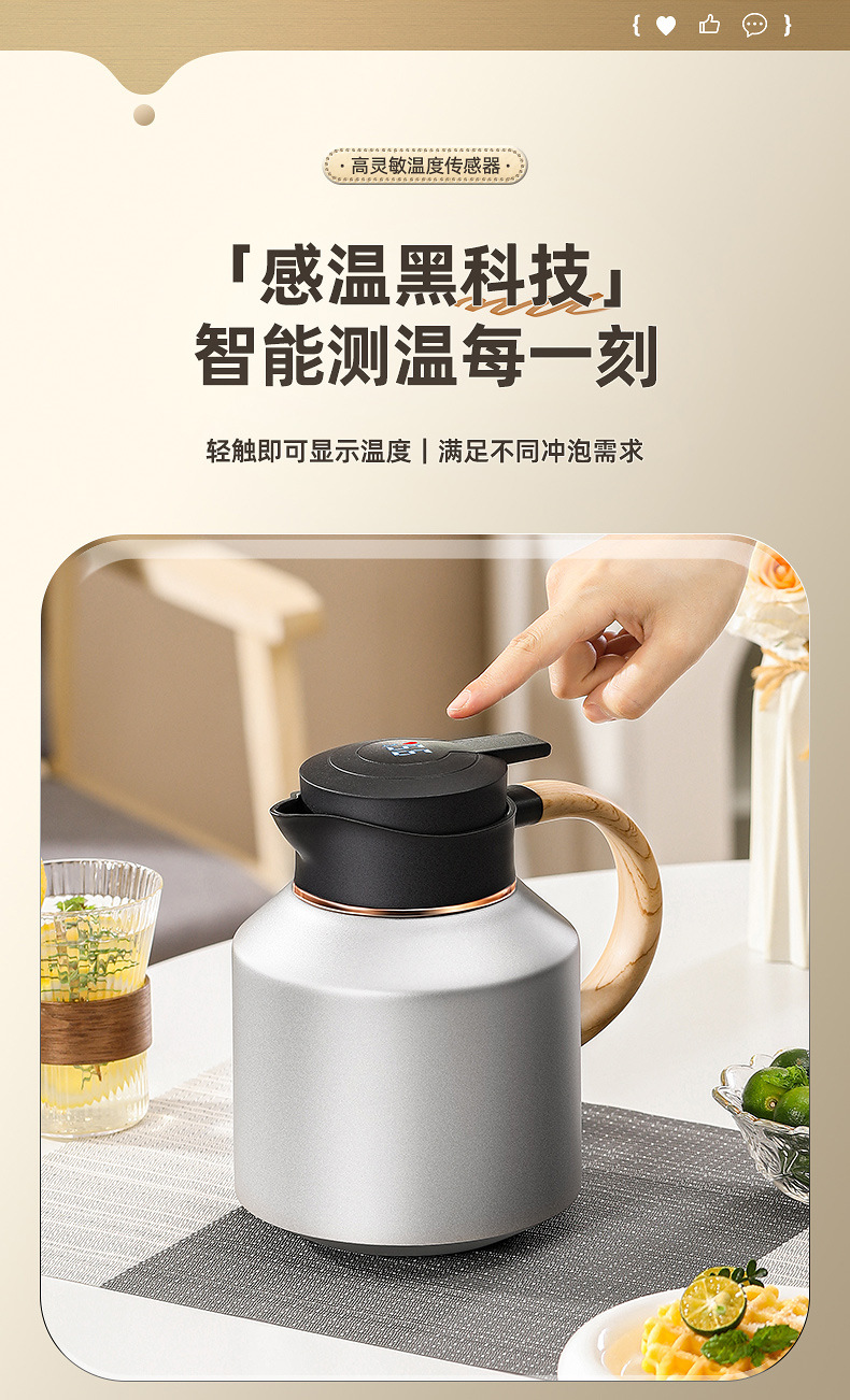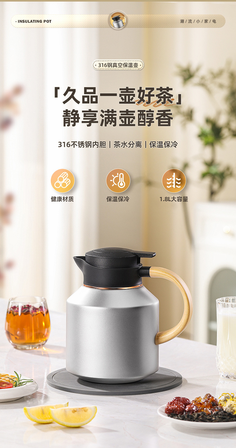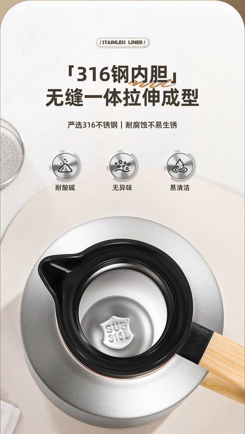 316不锈钢保温壶智能显温焖泡茶壶大容量茶水分离暖水壶老白茶壶