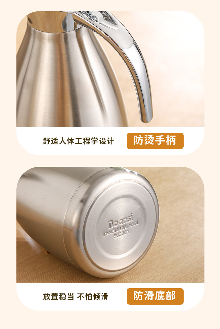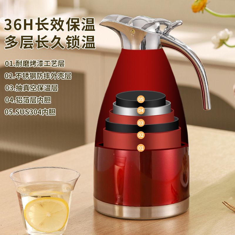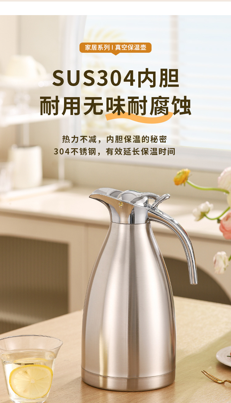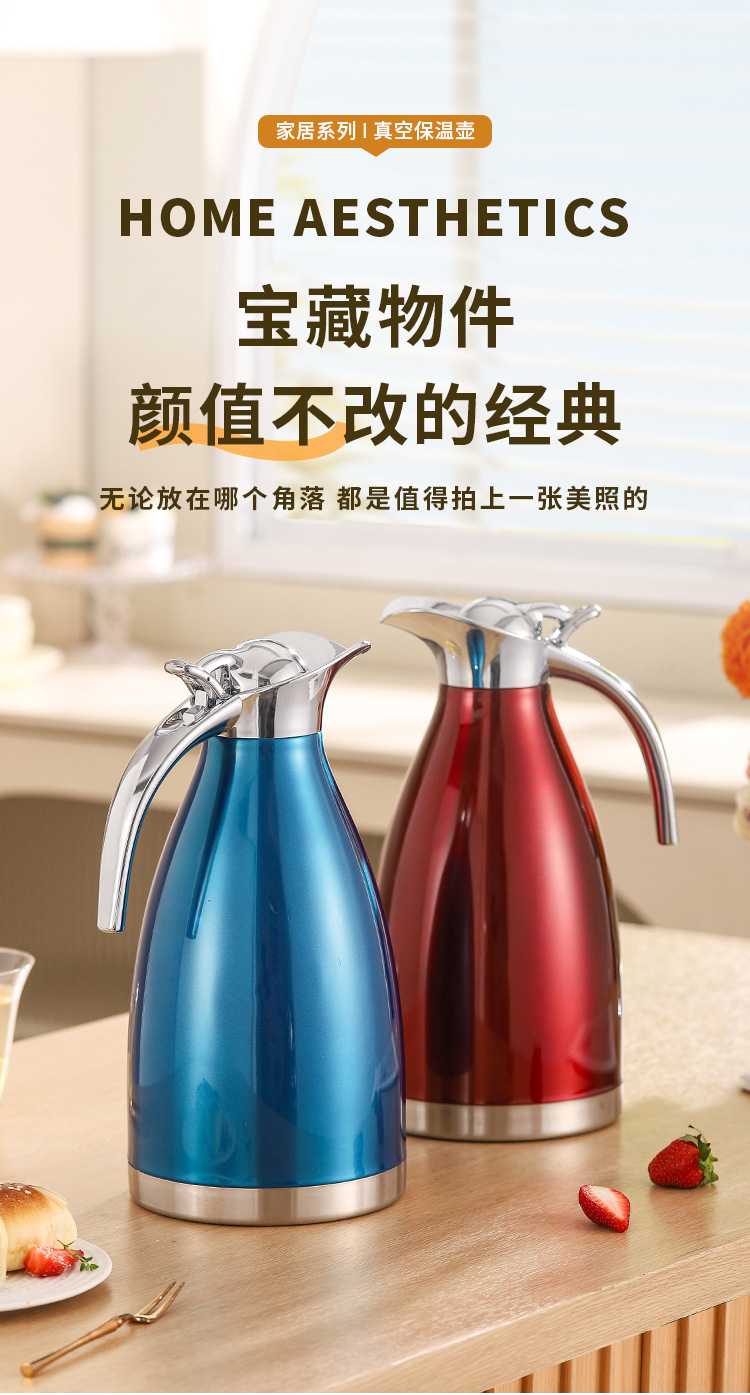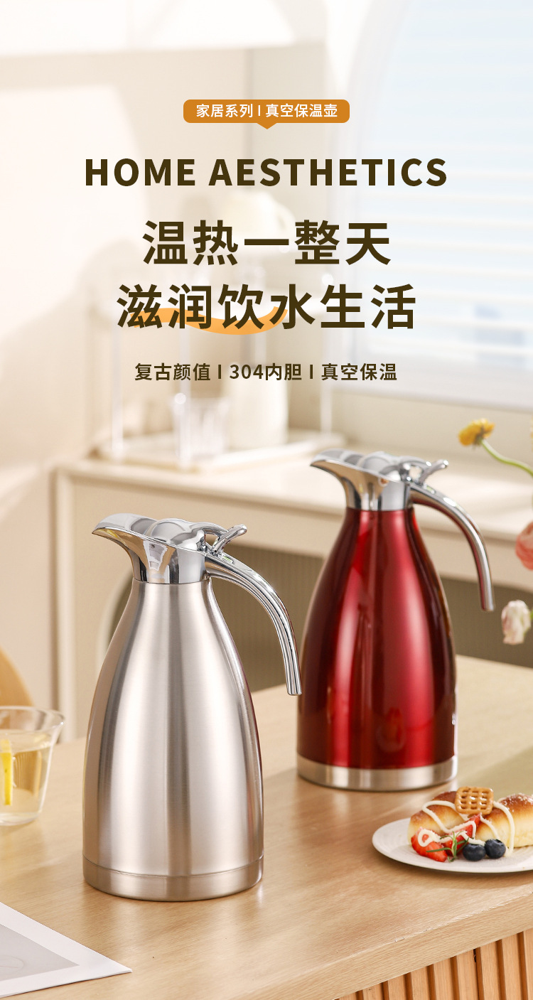 304不锈钢欧式真空咖啡壶家用暖水壶商用餐厅2L大容量保温壶批发