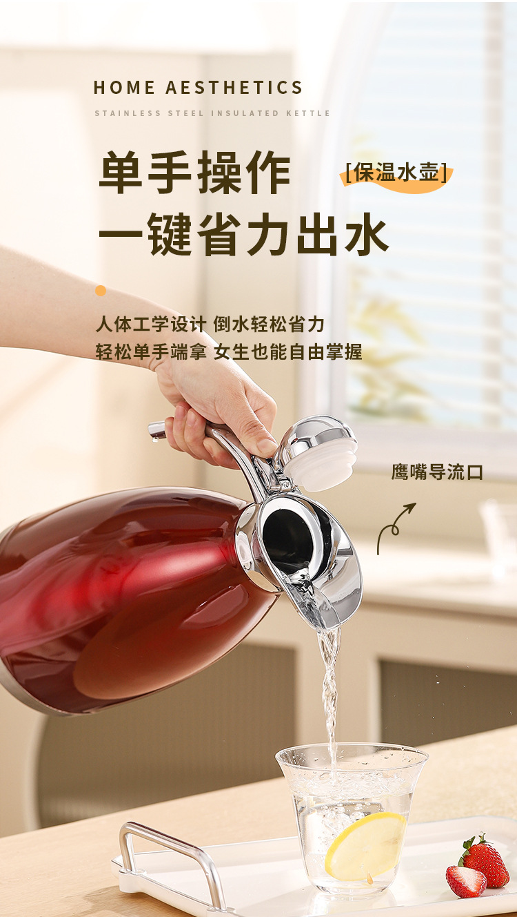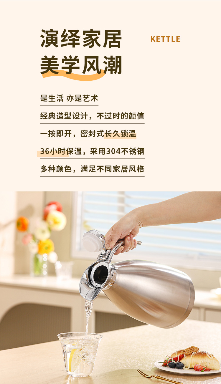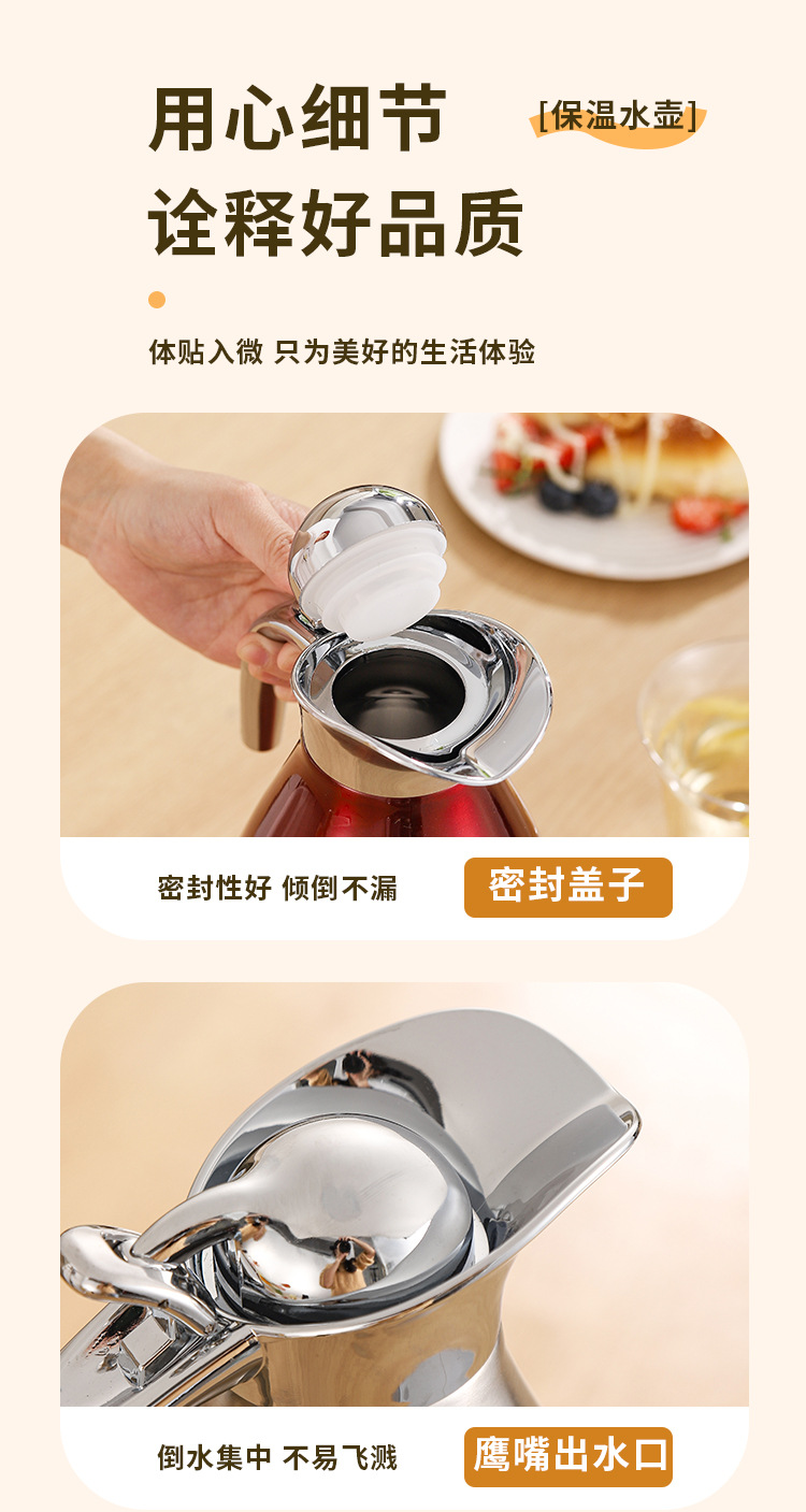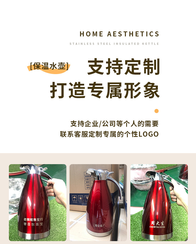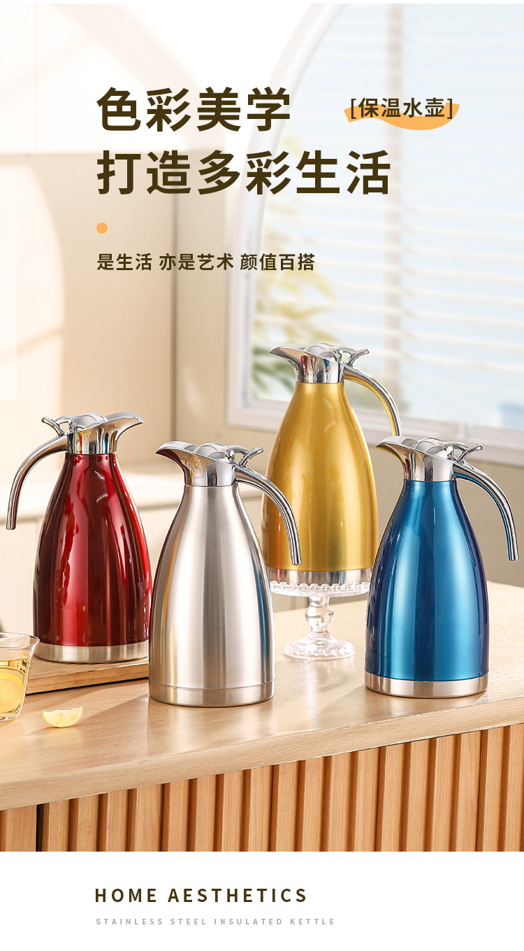 304不锈钢欧式真空咖啡壶家用暖水壶商用餐厅2L大容量保温壶批发