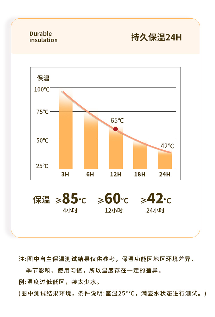 4小时保温款:(壶身为双层不锈钢)保温2-4小时左右;