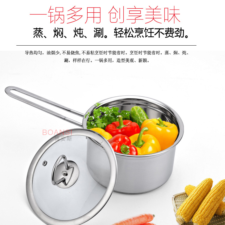 不锈钢奶锅牛奶锅煮奶锅小汤锅加厚泡面锅电磁炉通用