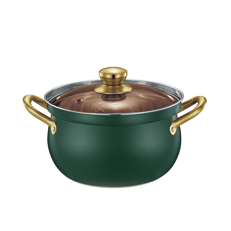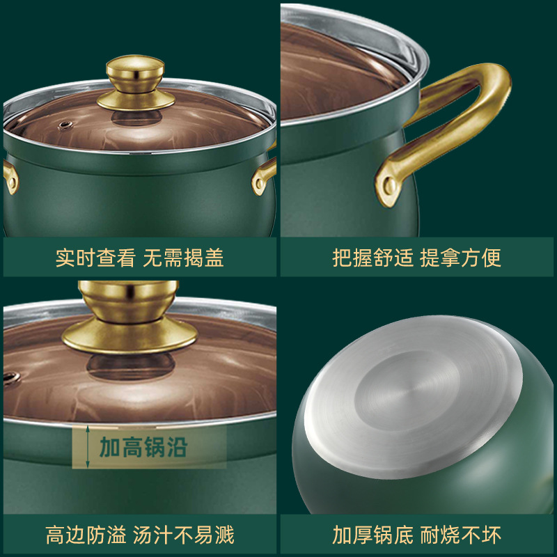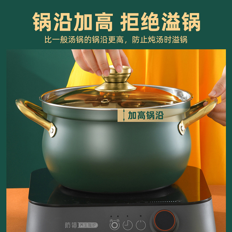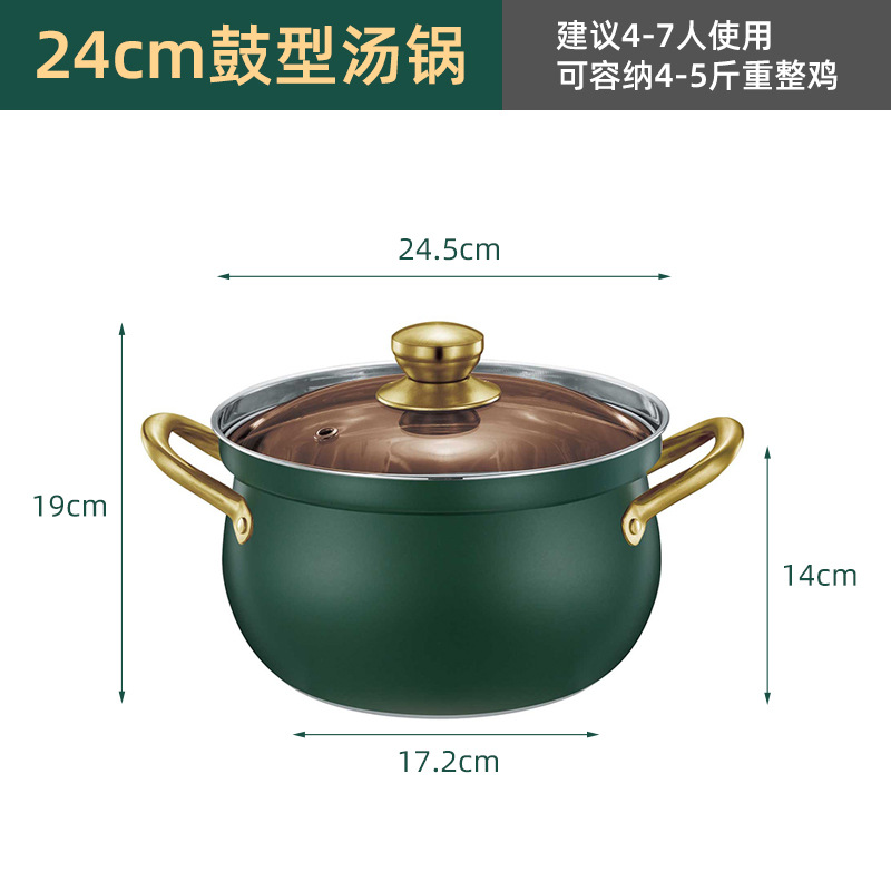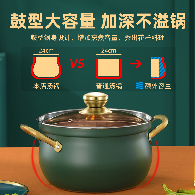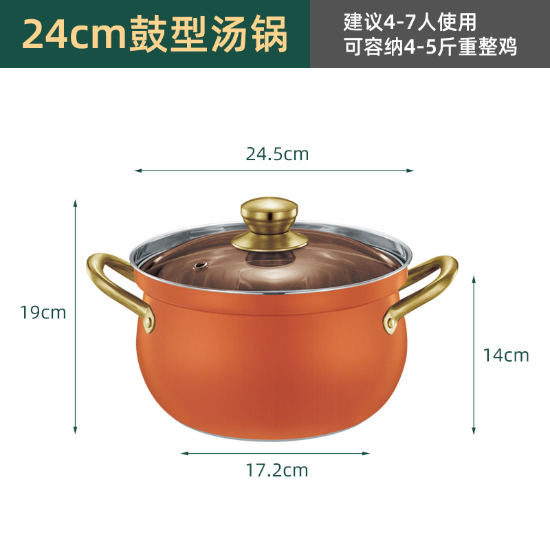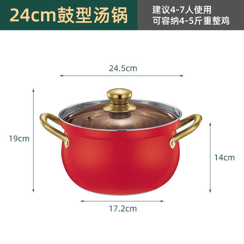 厂家直供跨境不锈钢汤锅家用大容量鼓型锅多功能双耳防溢煮汤锅5L