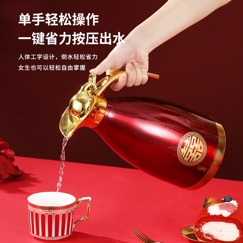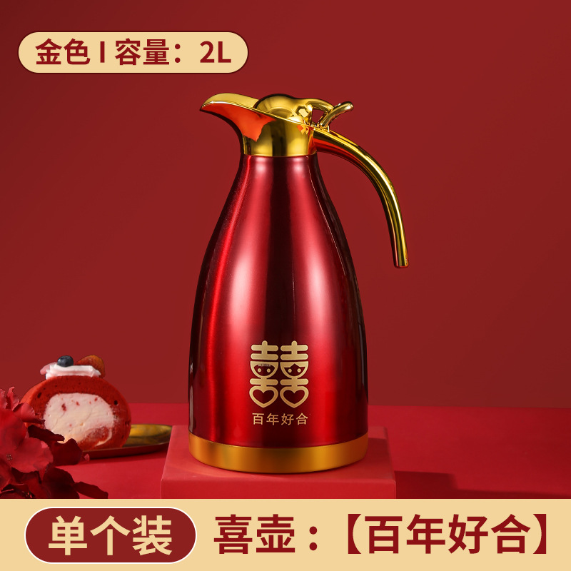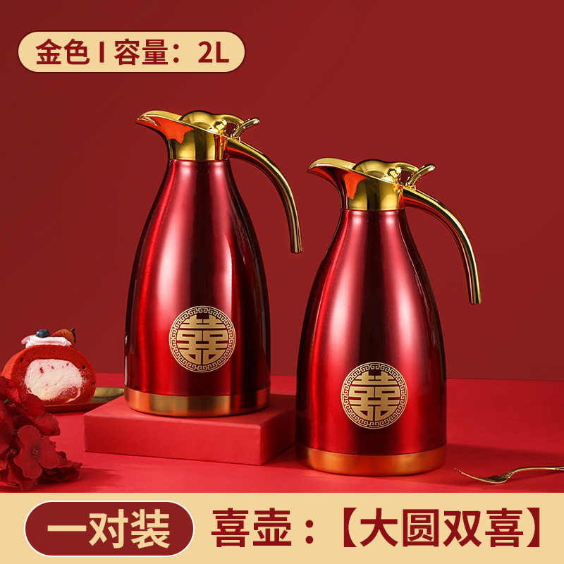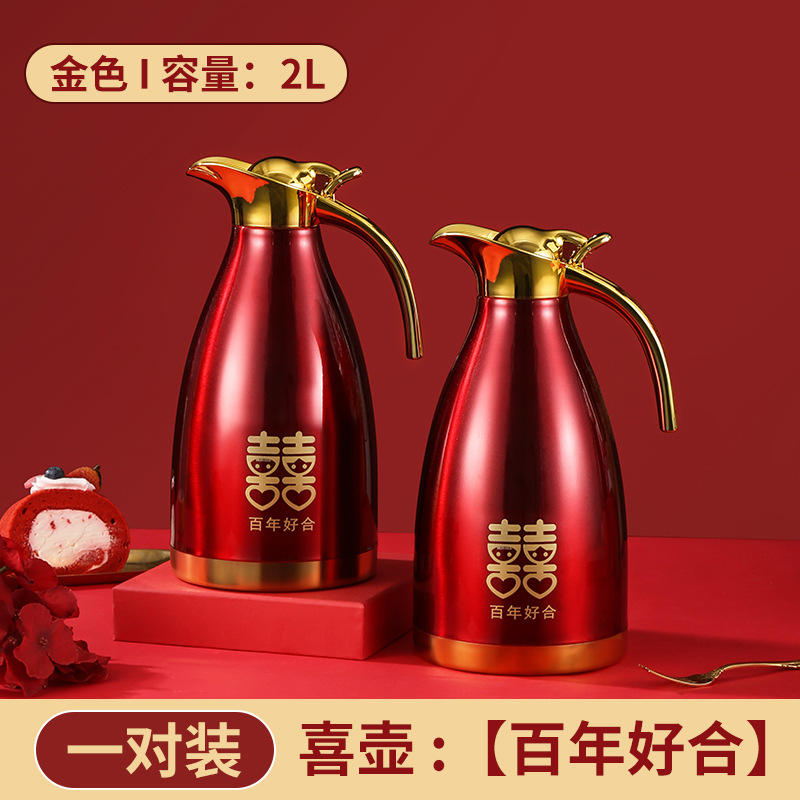 304不锈钢真空保温壶结婚暖壶红色1对喜庆热水瓶陪嫁水壶婚庆礼品