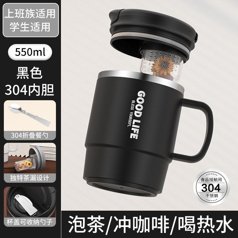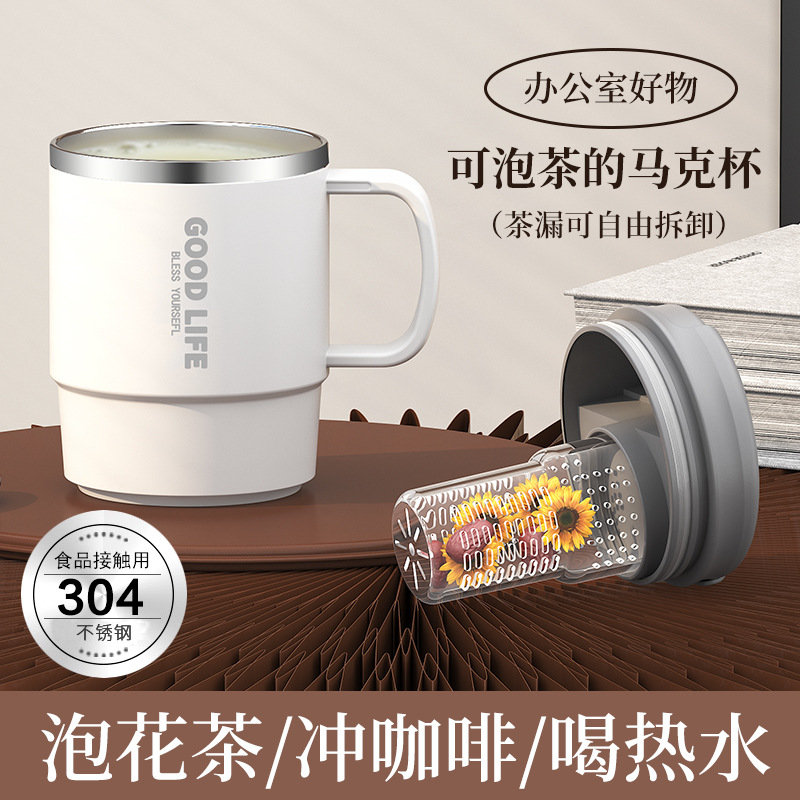 新款304马克杯高颜值水杯带茶漏便携随行杯双层不锈钢咖啡杯LOGO
