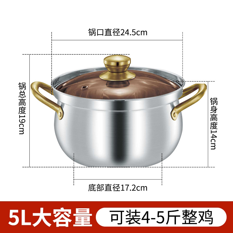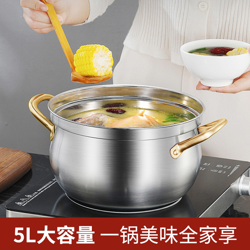 跨境专供不锈钢汤锅家用大容量煲汤锅鼓型加深电磁炉锅赠品礼批发