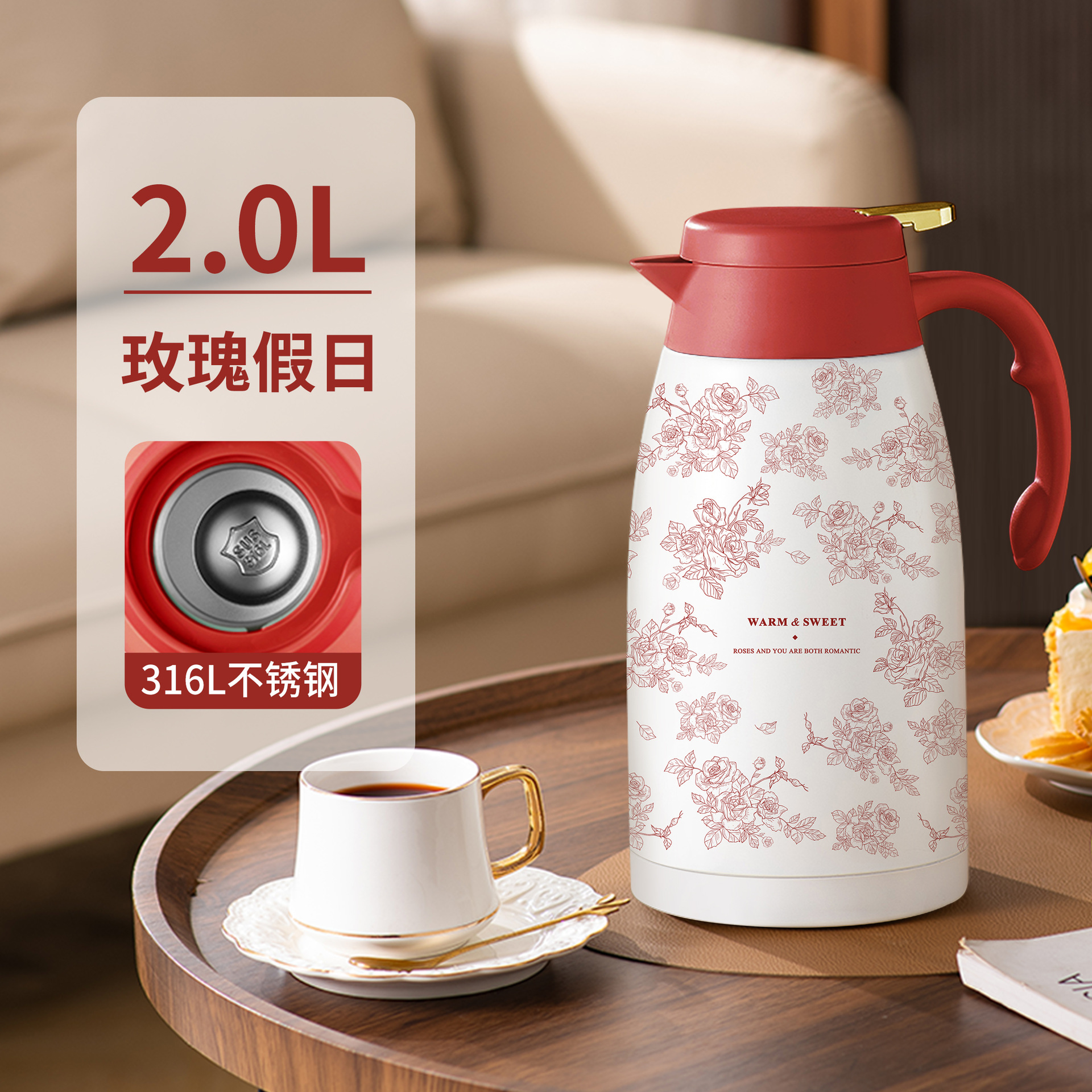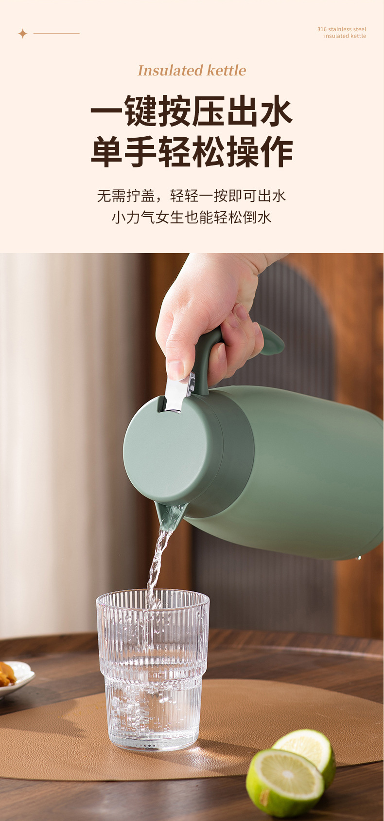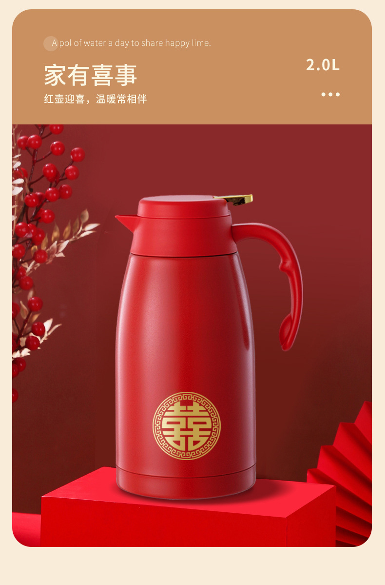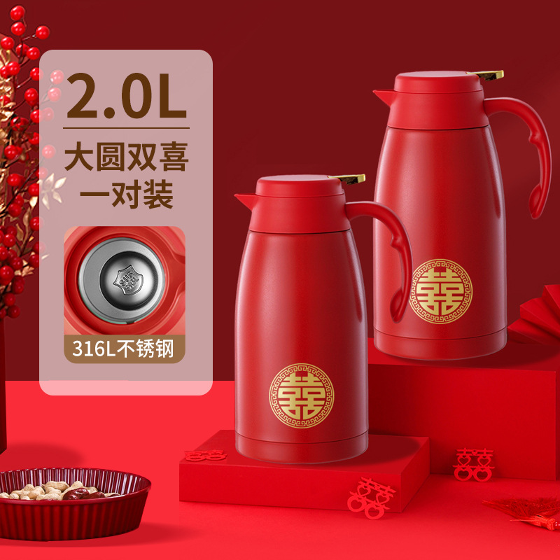 保温壶316L不锈钢双层家用酒店饭店礼品热水壶按压式结婚喜庆批发