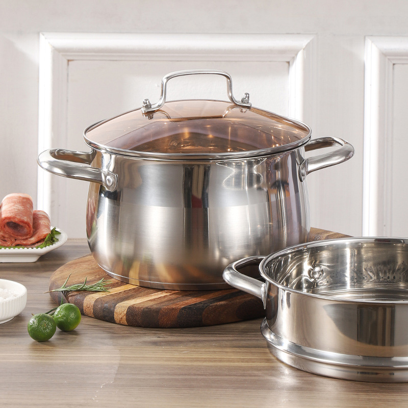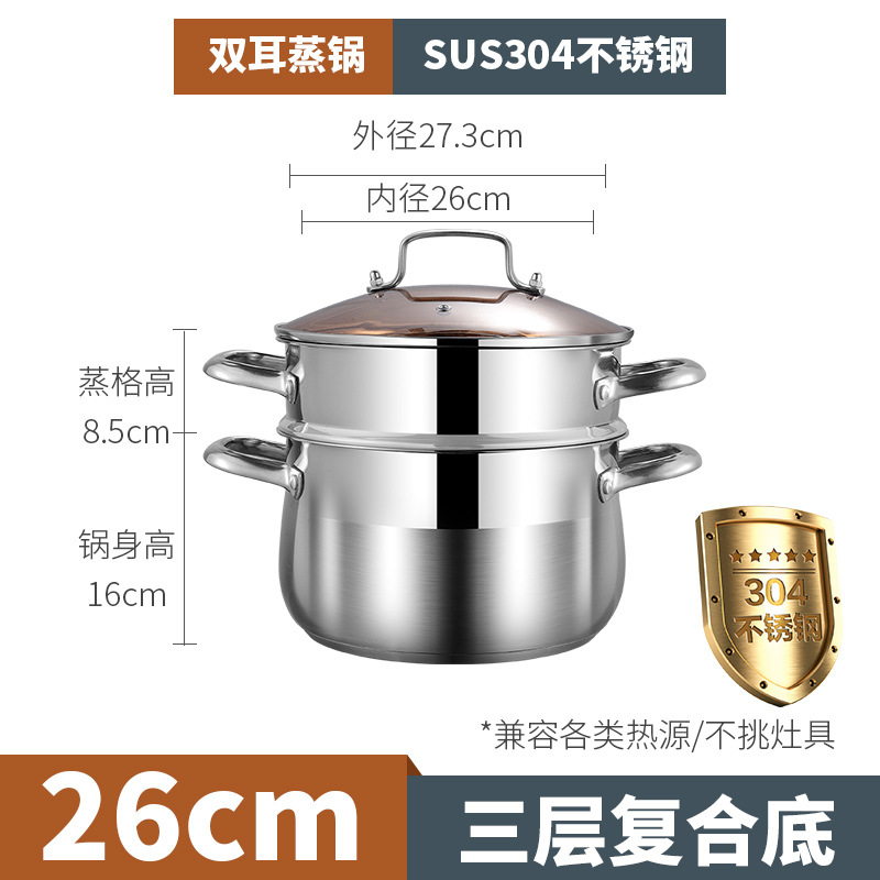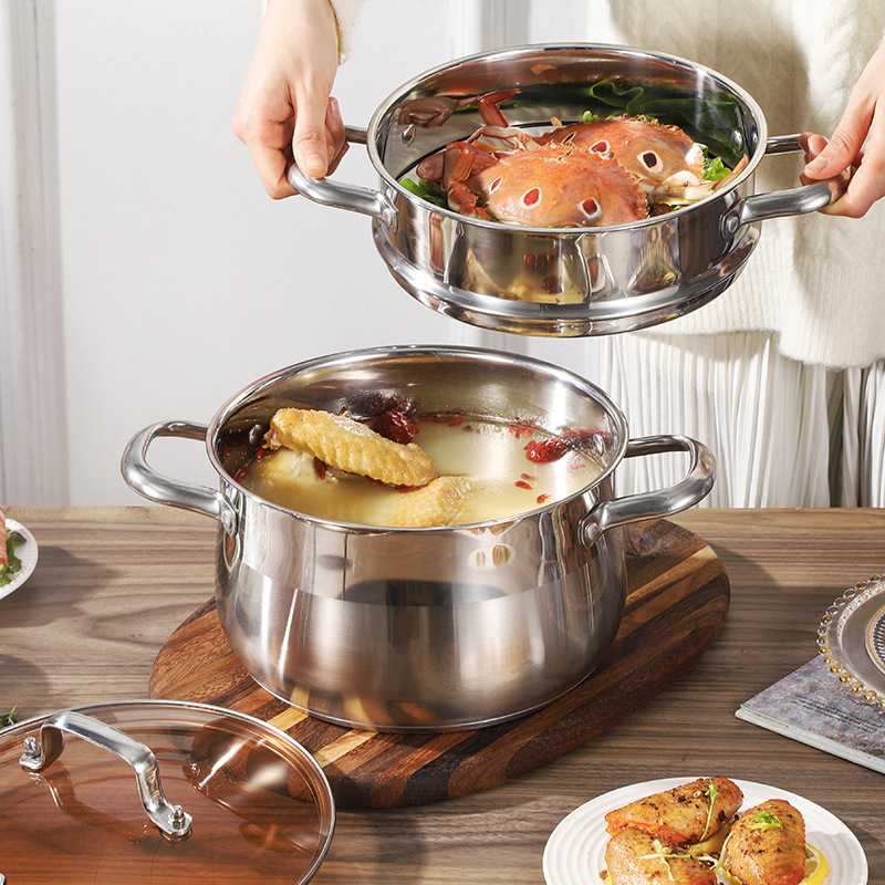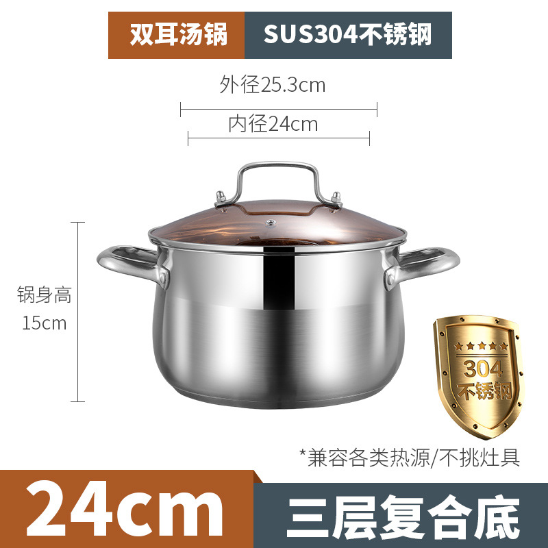 不锈钢复底汤锅304家用双耳蒸汤锅加厚二层电磁炉锅煲礼品批发