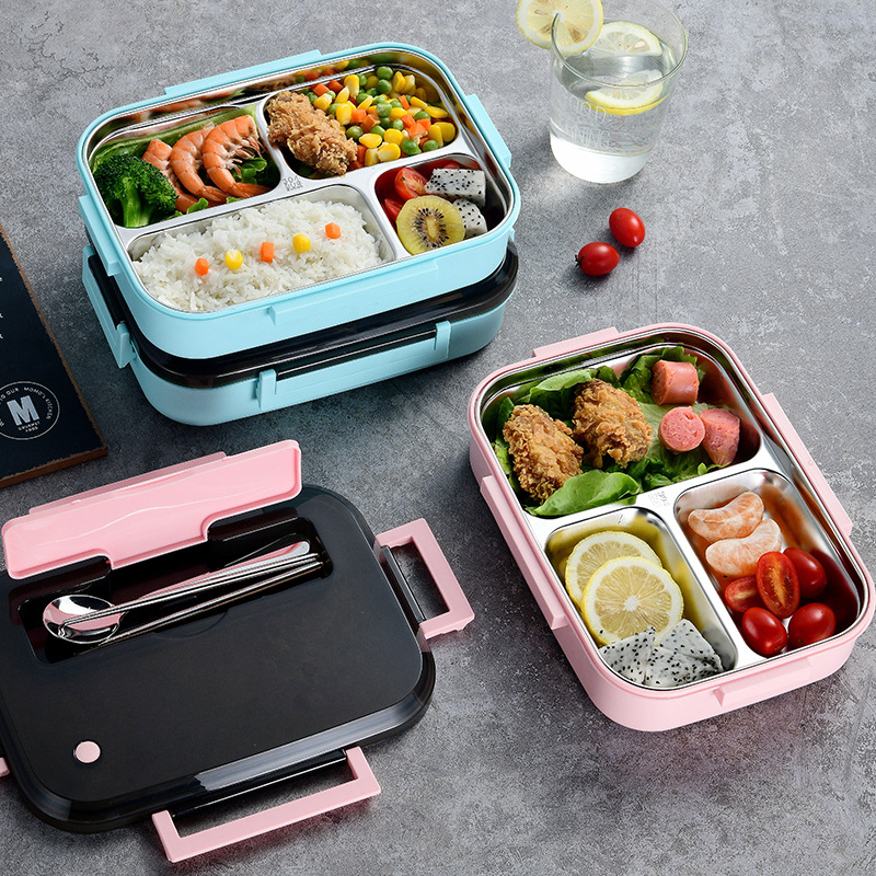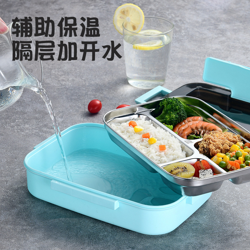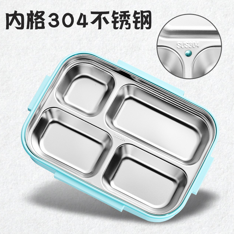 304不锈钢分格快餐盘保温学生快餐盒便当盒幼儿园防烫密封配筷勺