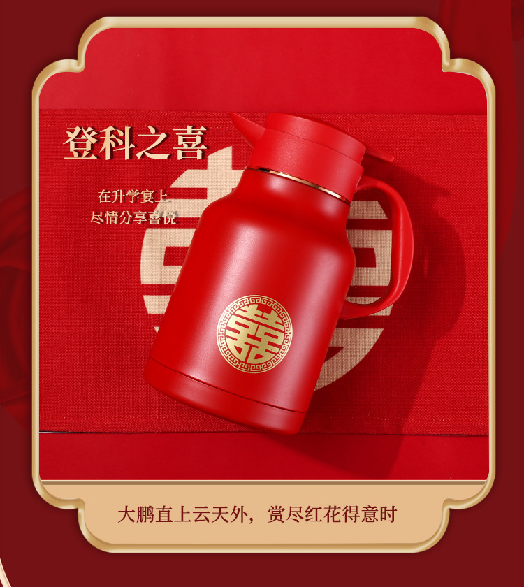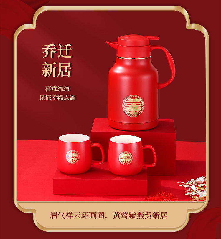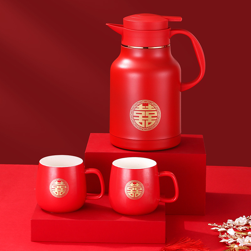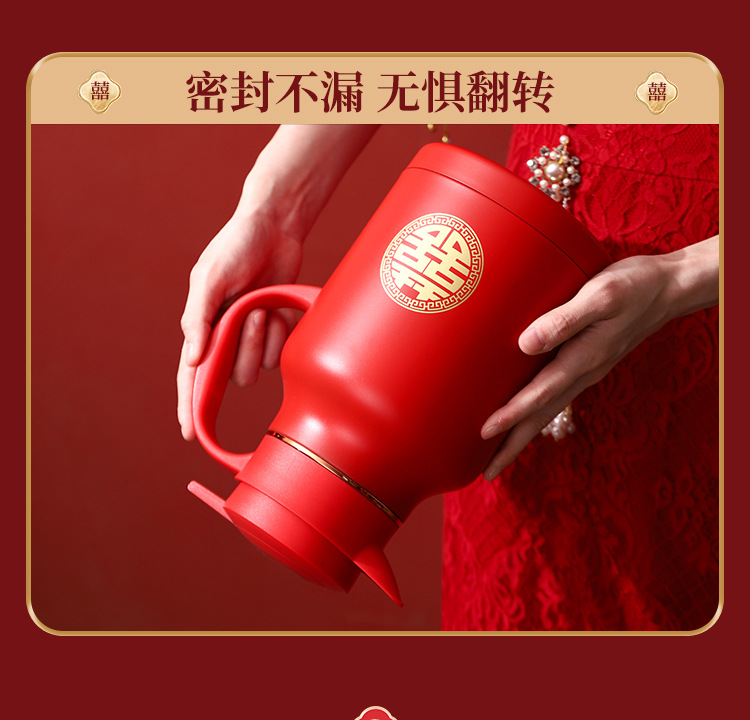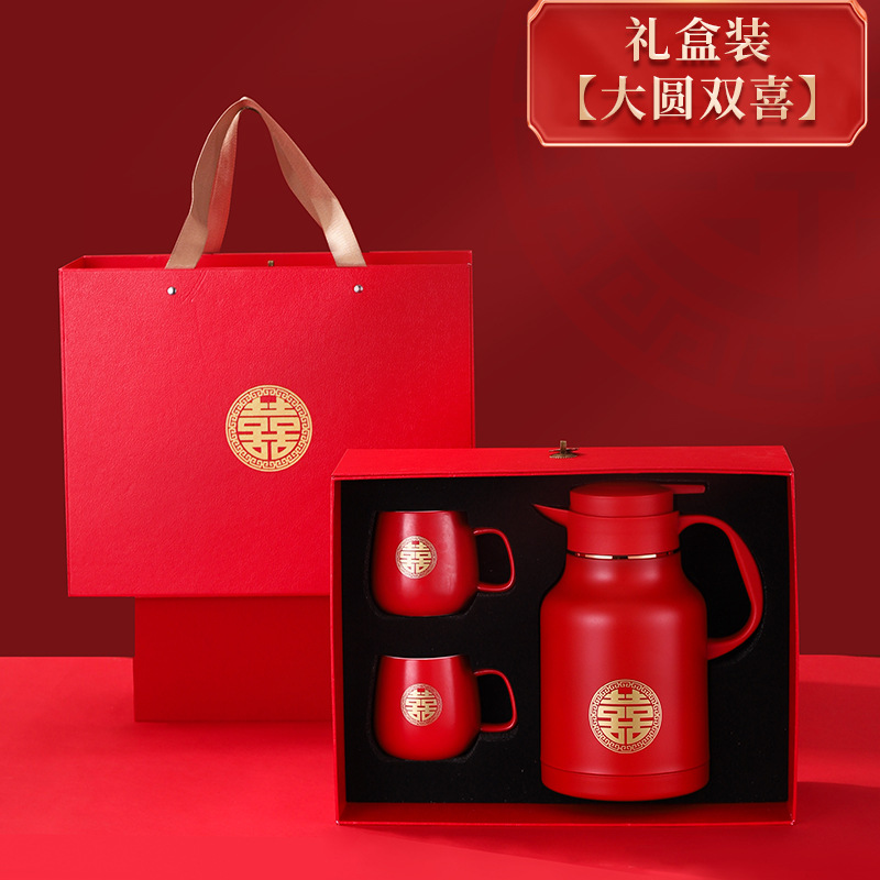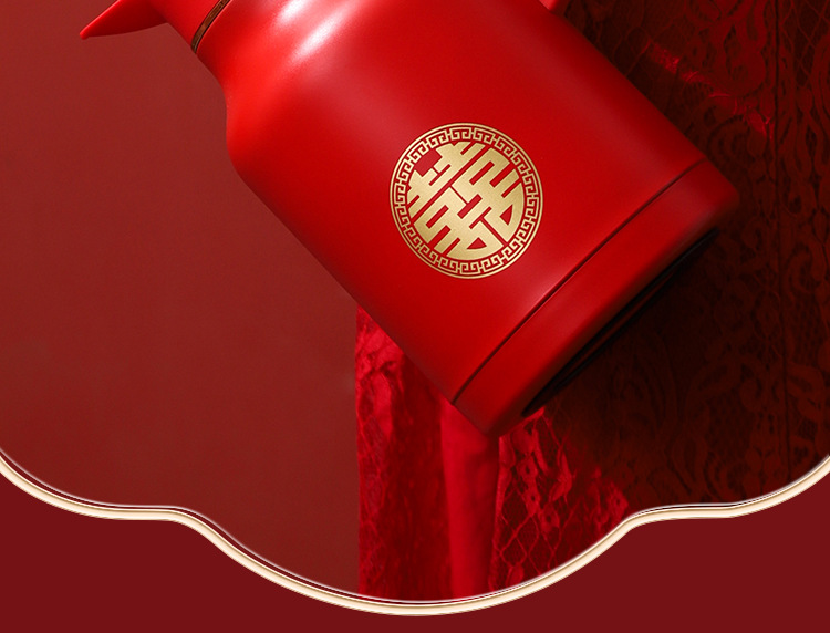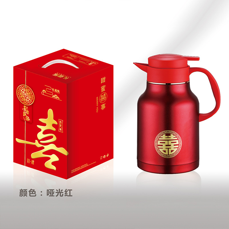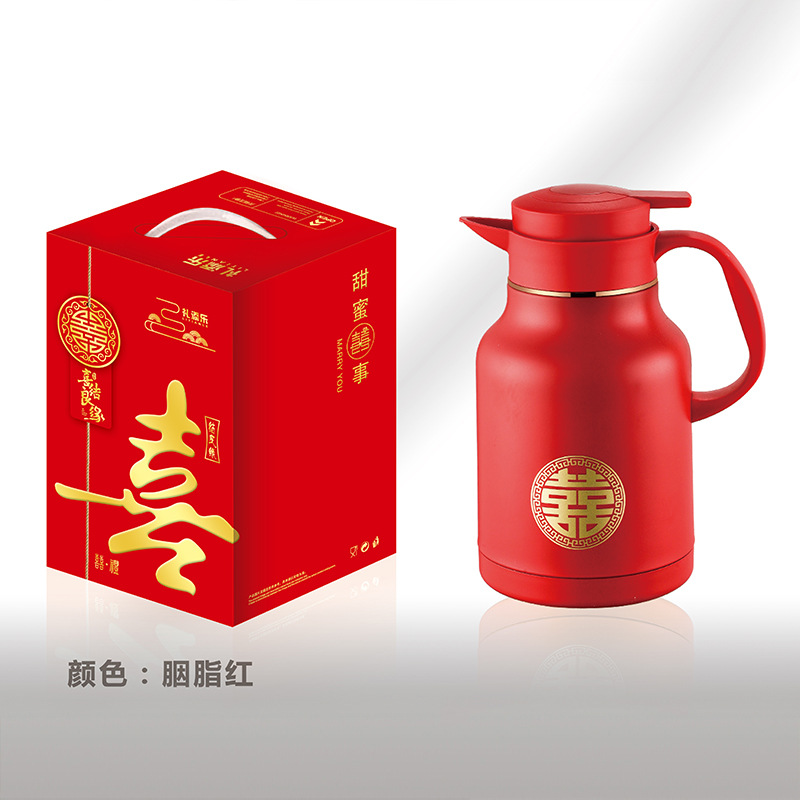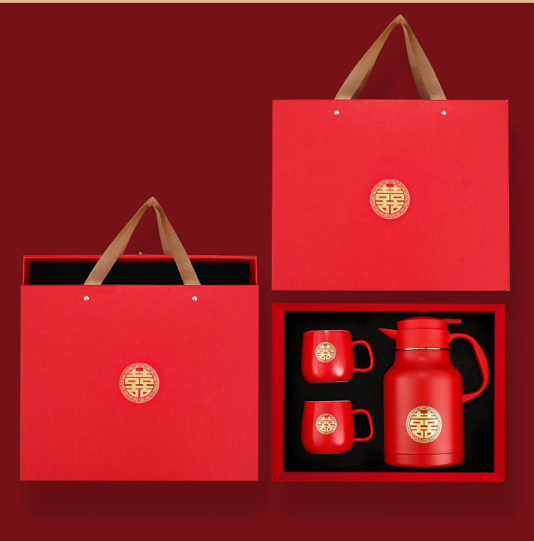 304卡仕壶婚嫁套装礼盒不锈钢喜庆保温壶结婚暖壶陪嫁红色焖茶壶
