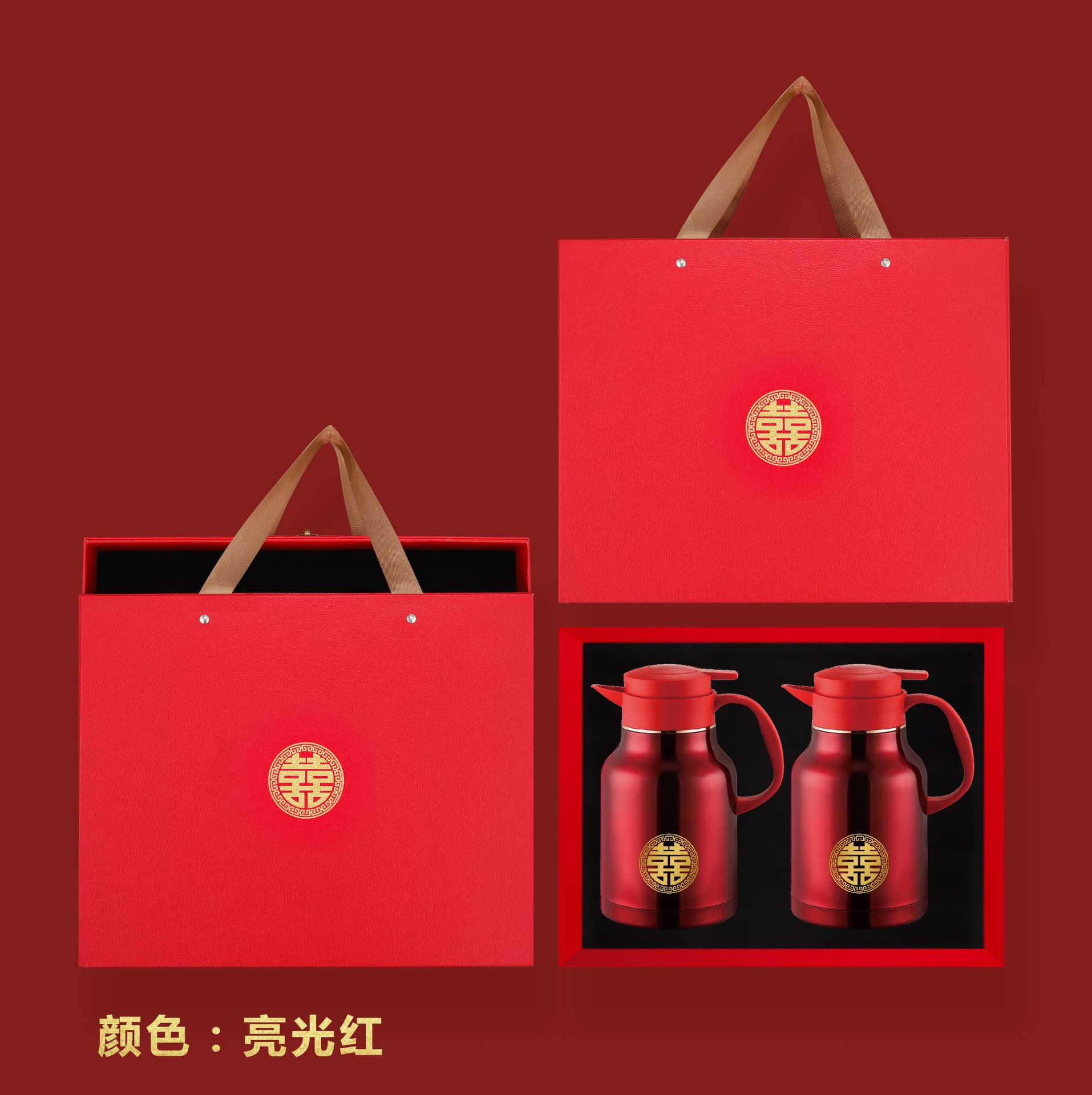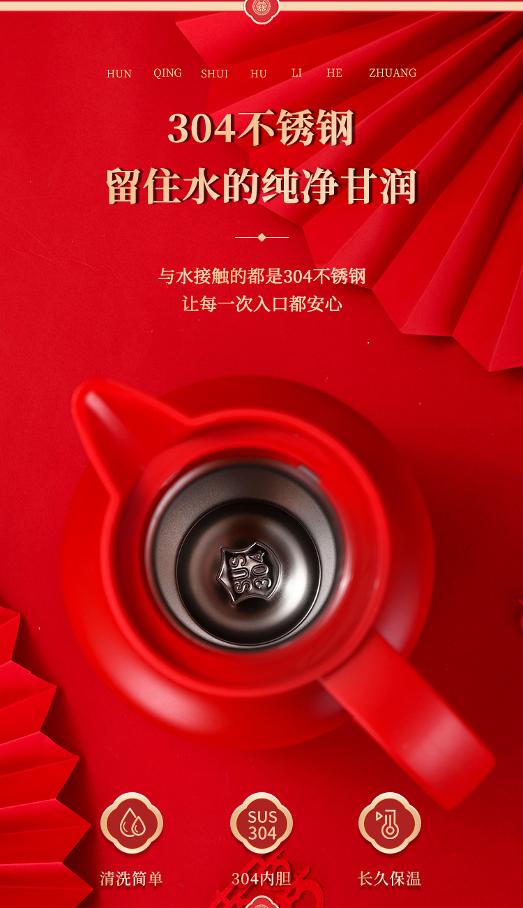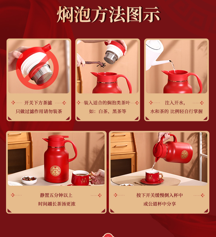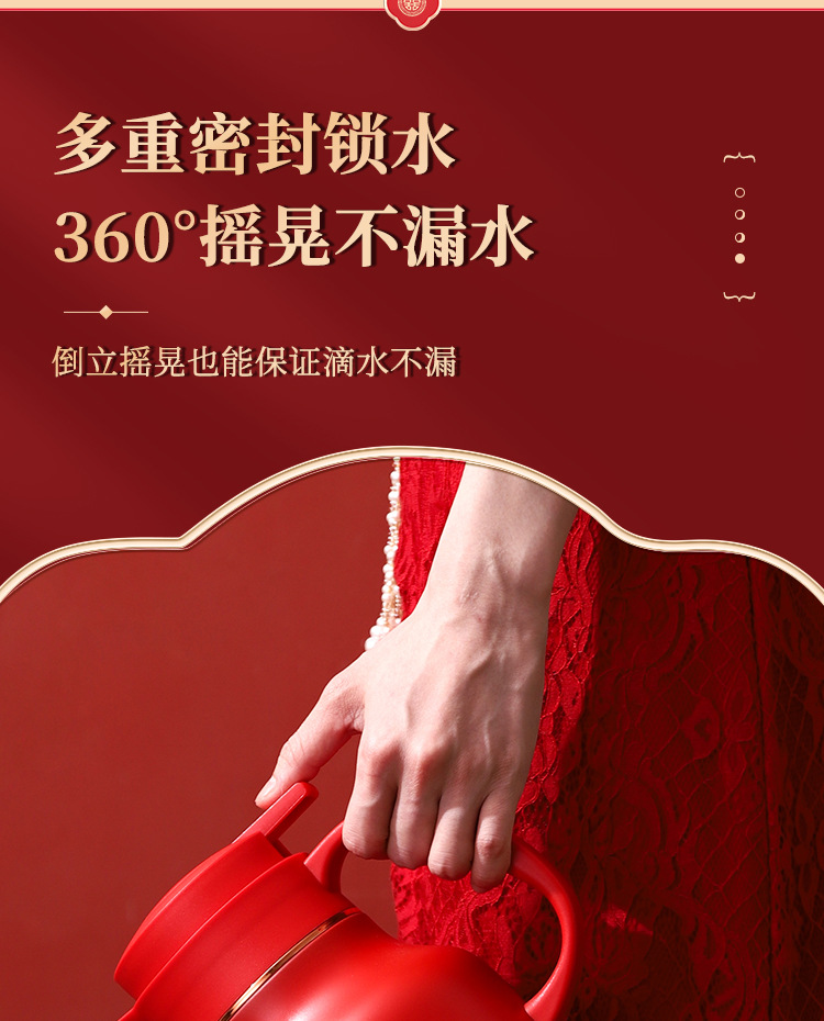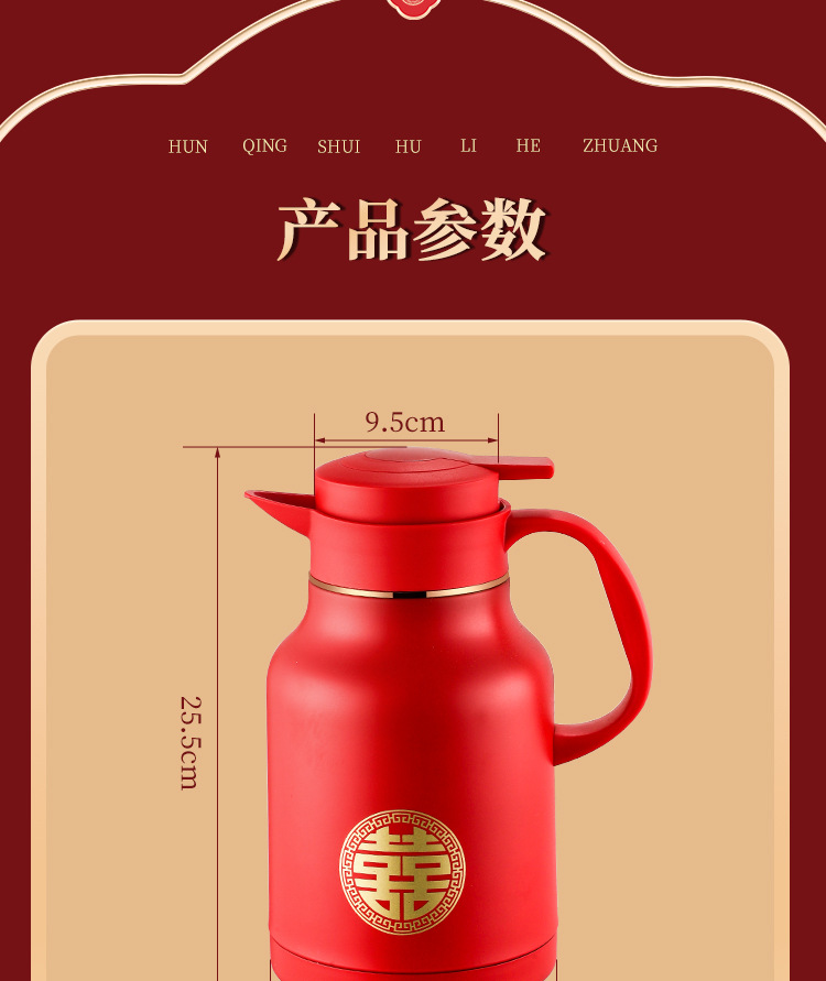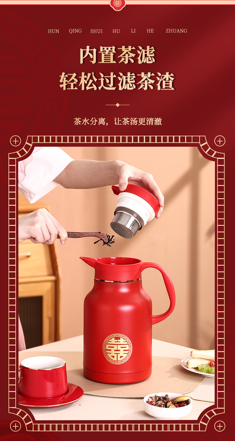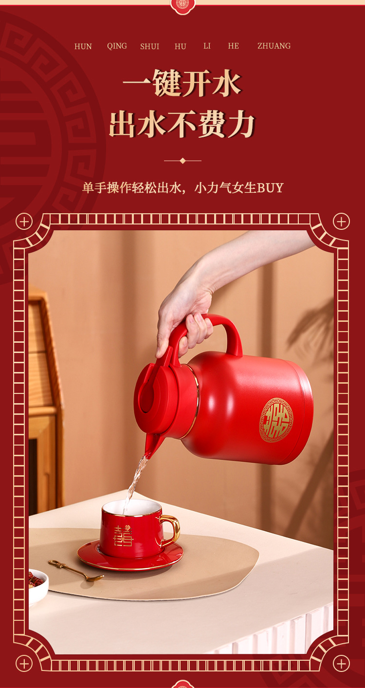 304卡仕壶婚嫁套装礼盒不锈钢喜庆保温壶结婚暖壶陪嫁红色焖茶壶