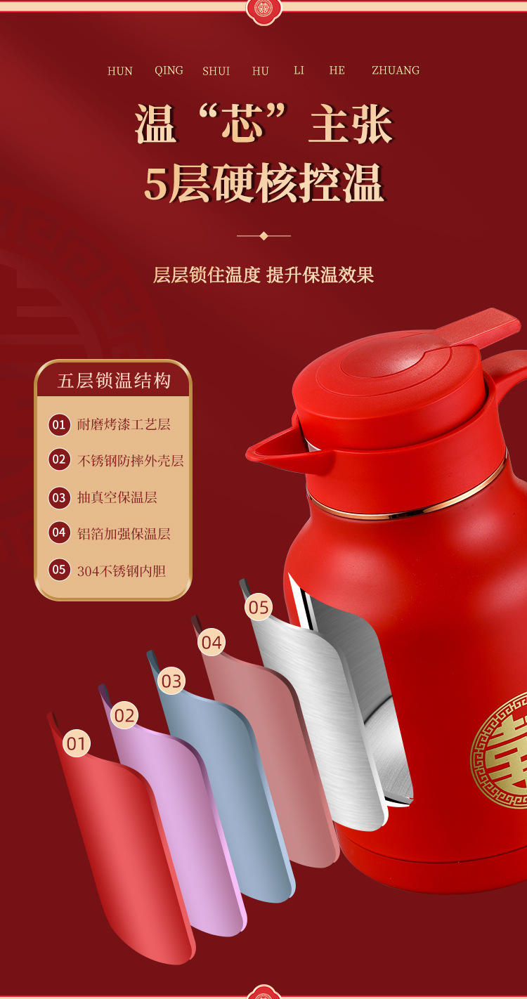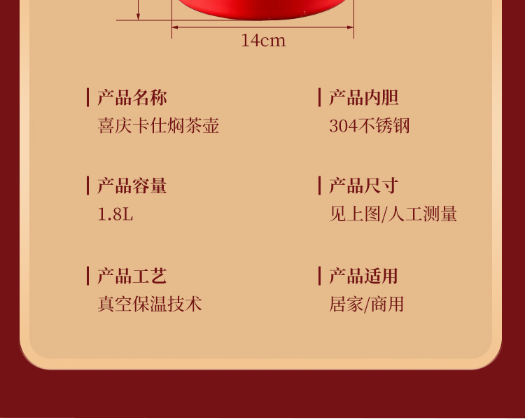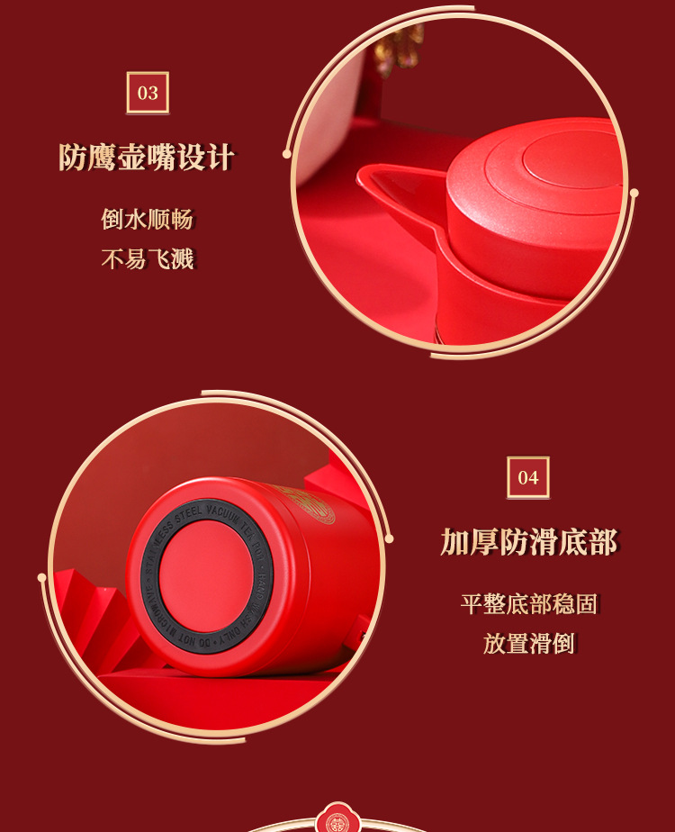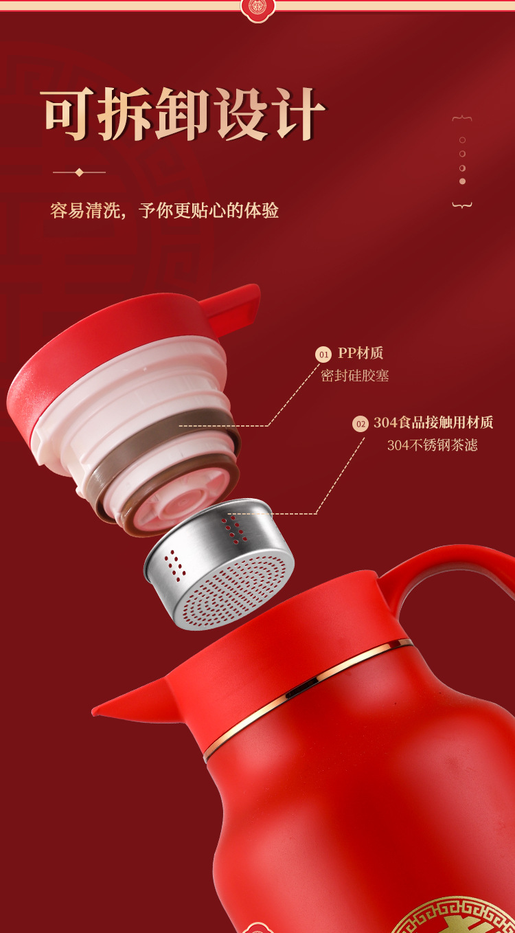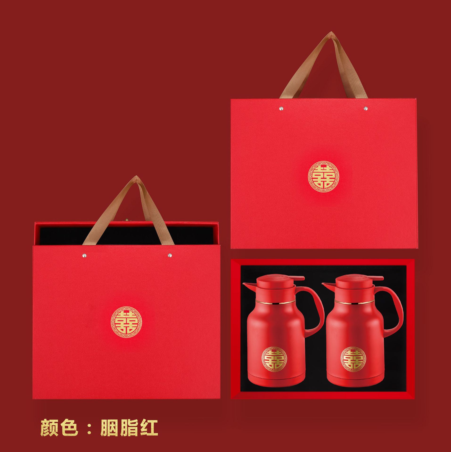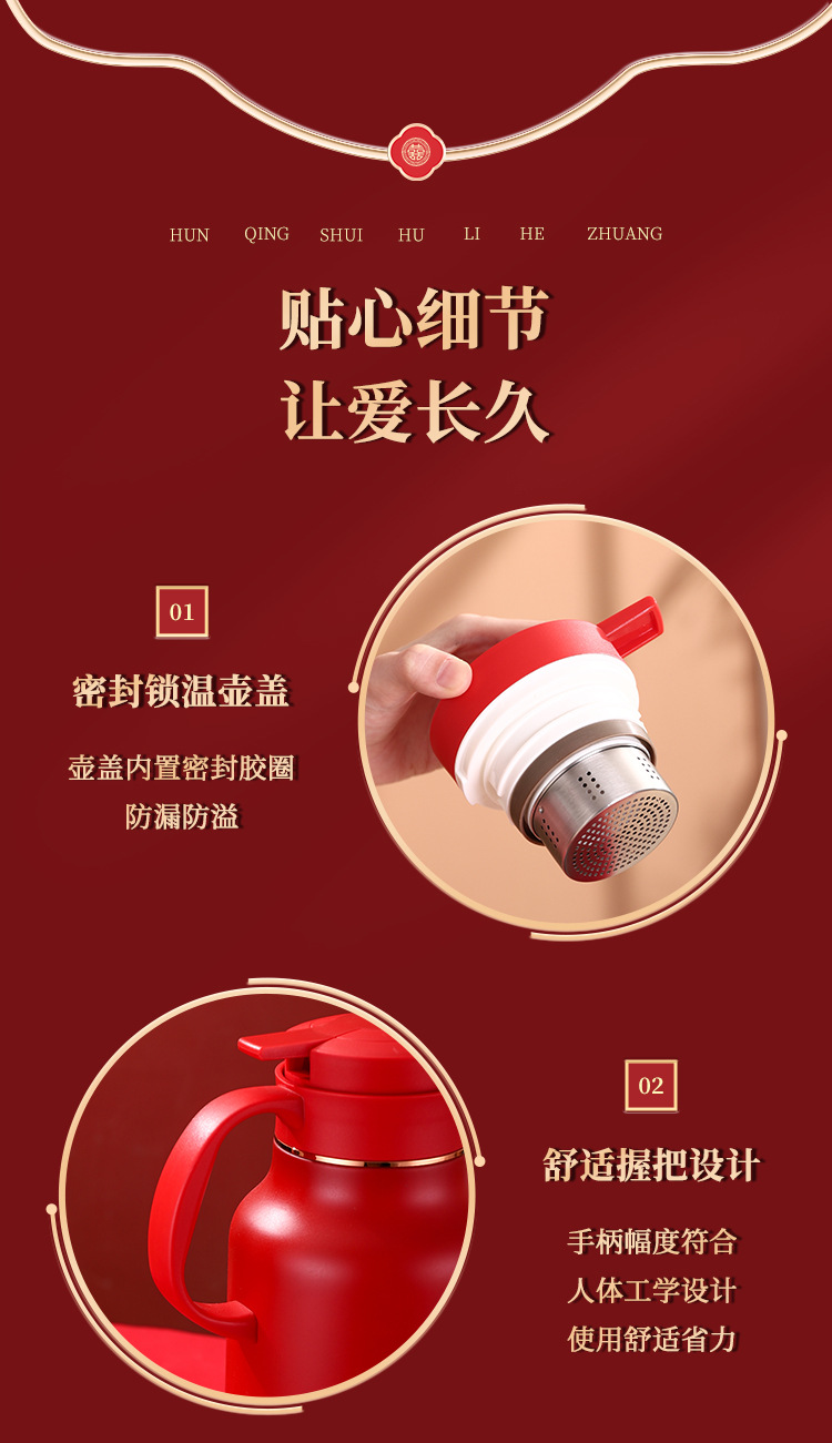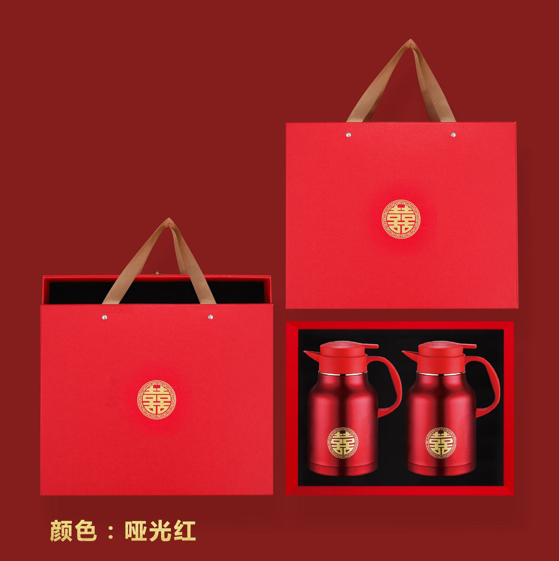 304卡仕壶婚嫁套装礼盒不锈钢喜庆保温壶结婚暖壶陪嫁红色焖茶壶