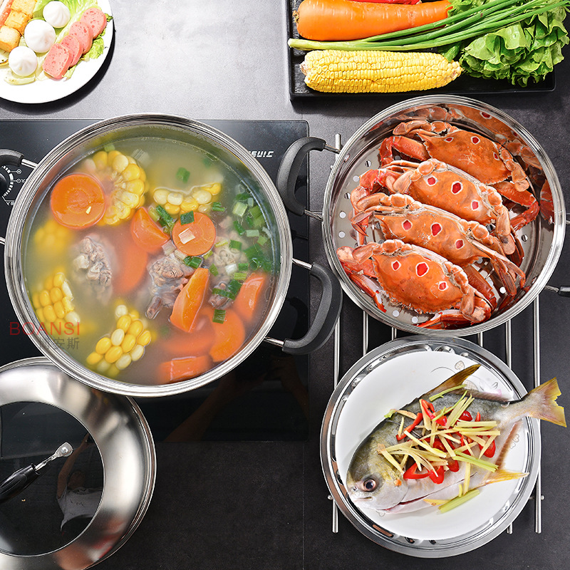 304蒸锅不锈钢三层汤蒸锅复底双篦多用蒸锅汤锅不锈钢锅礼品促销