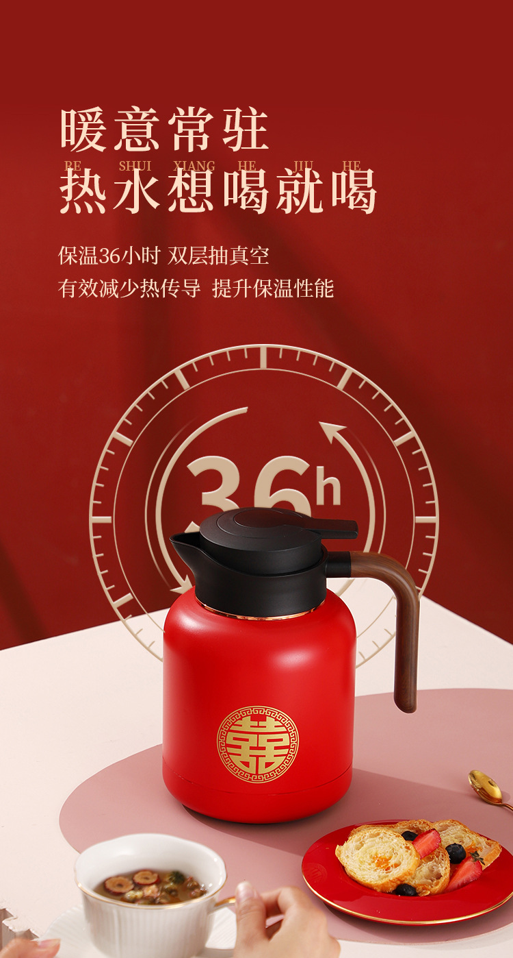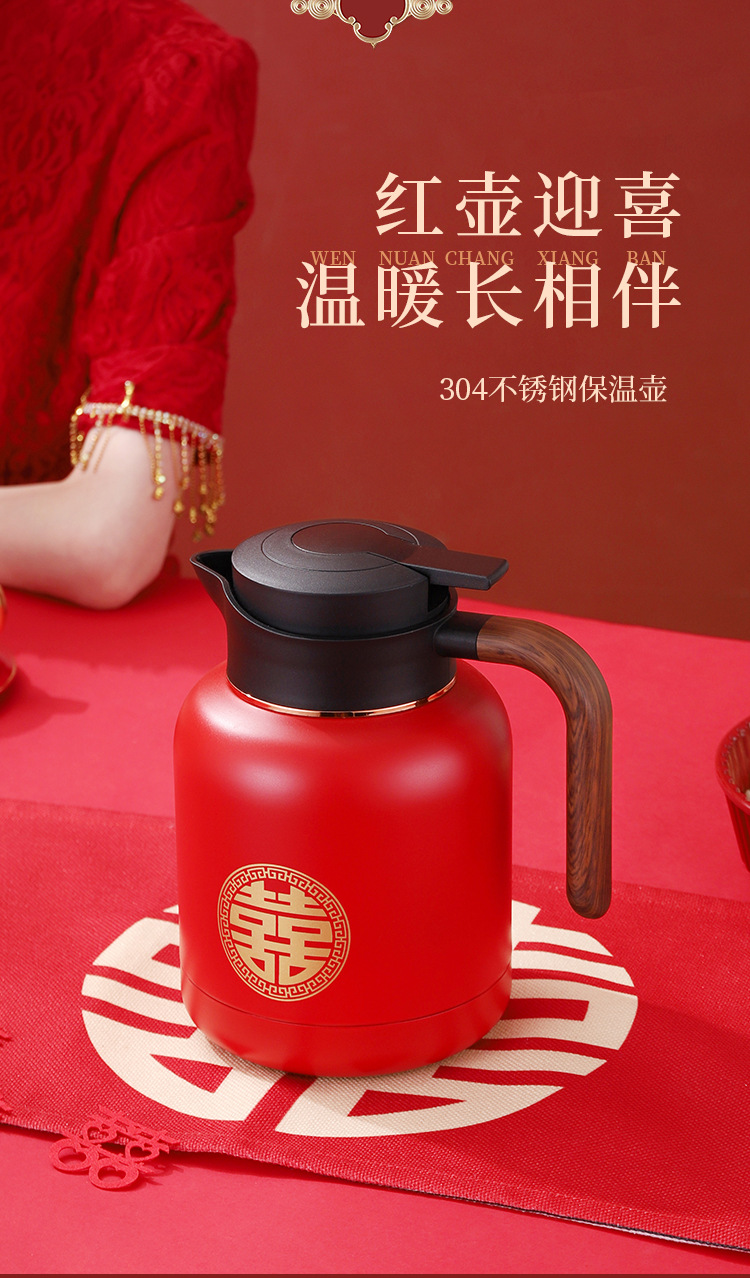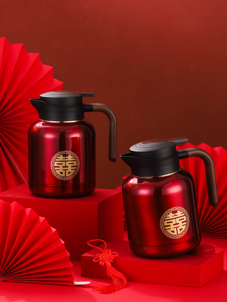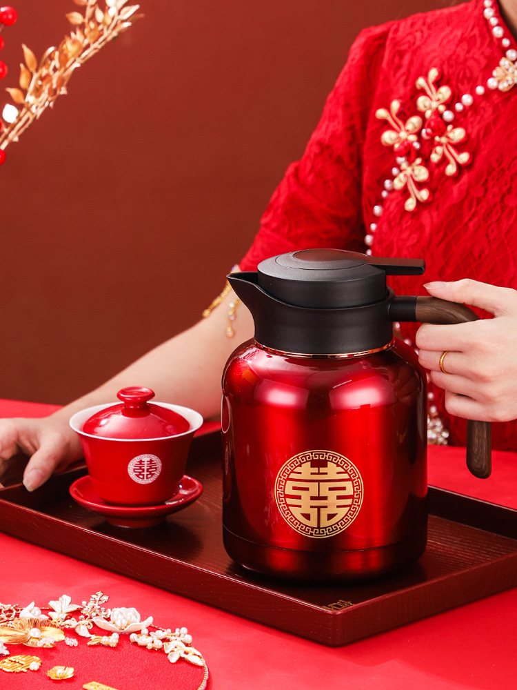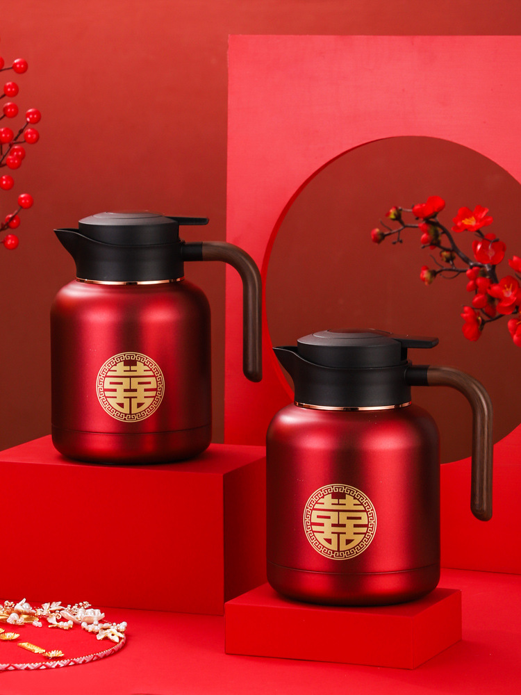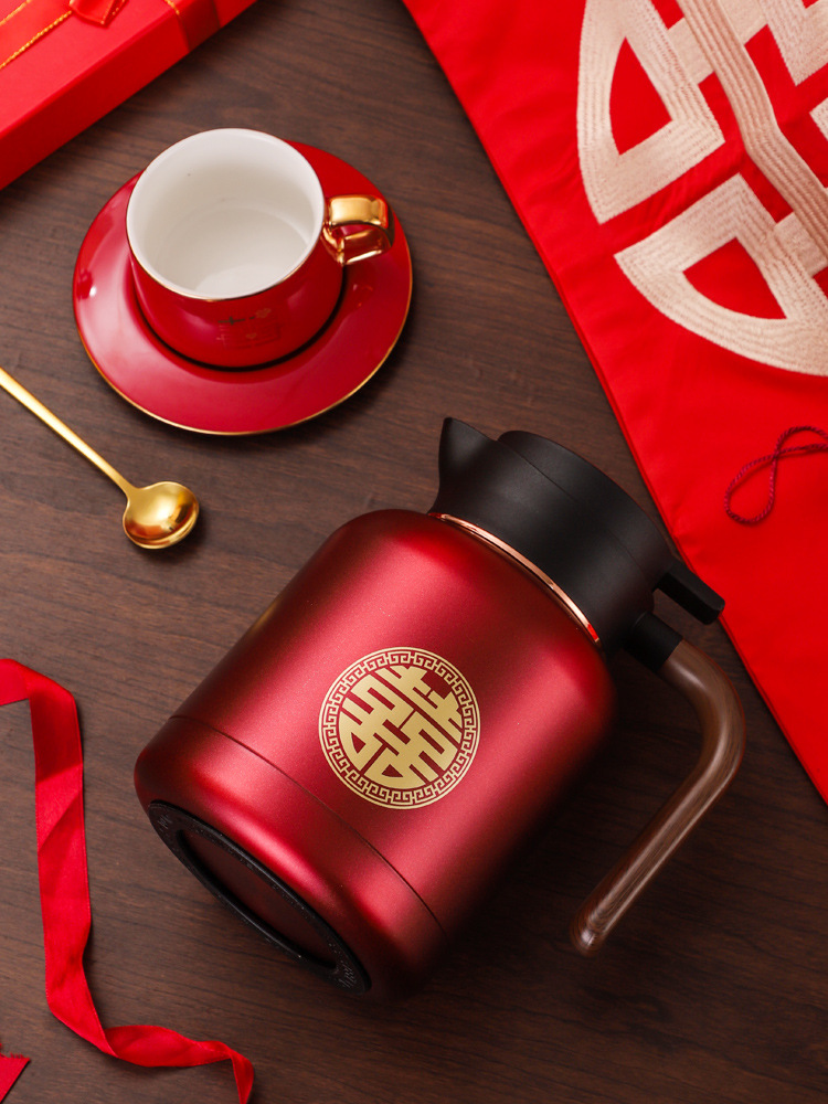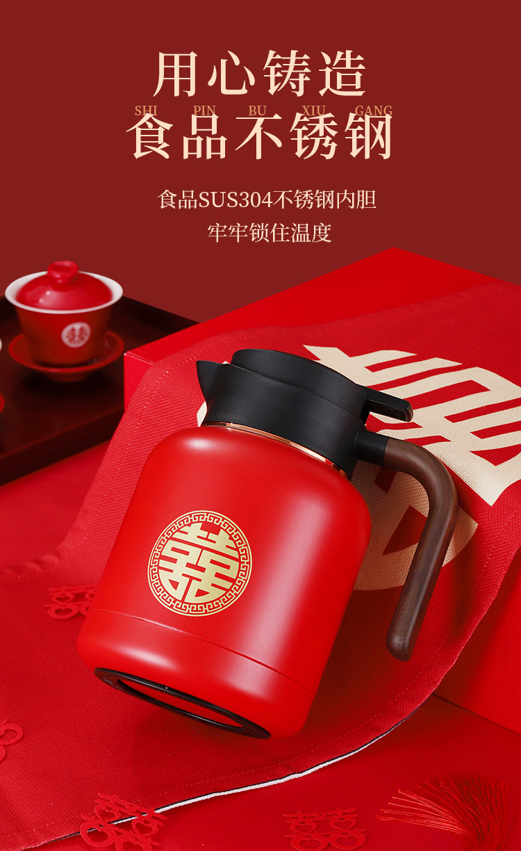 婚庆保温壶304不锈钢闷泡壶结婚暖壶陪嫁礼盒伴手礼红色水壶套装