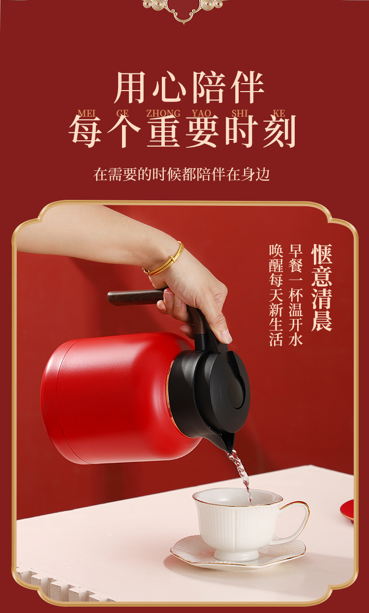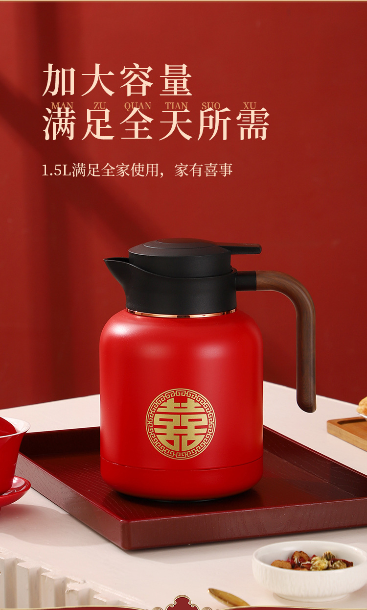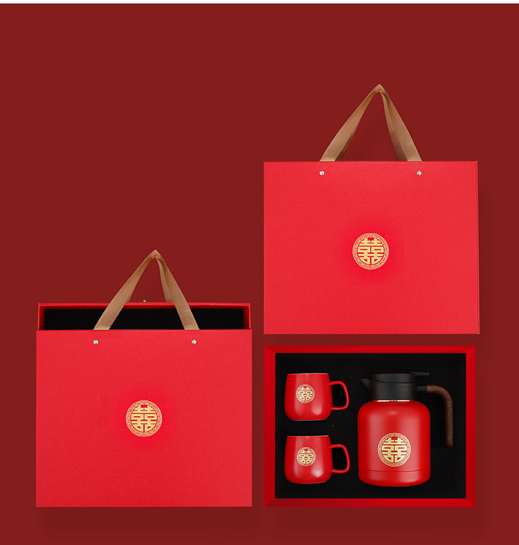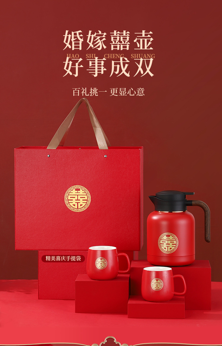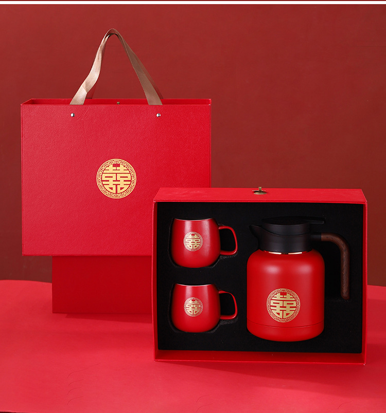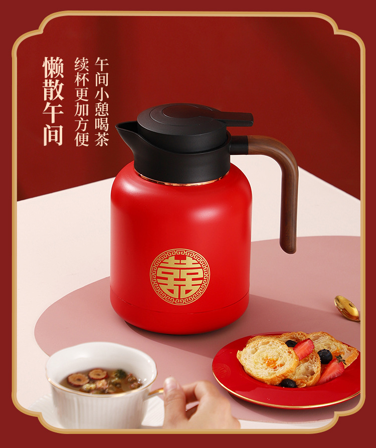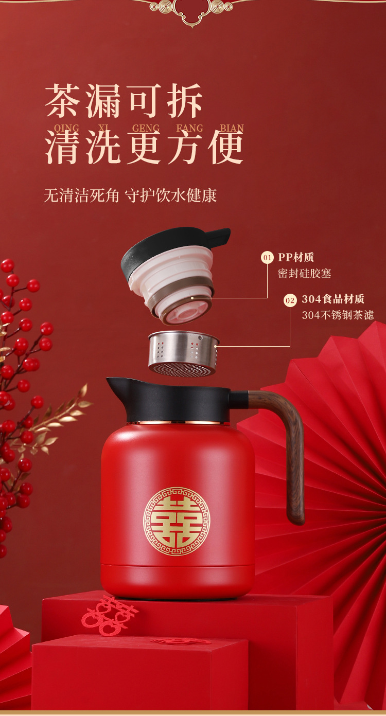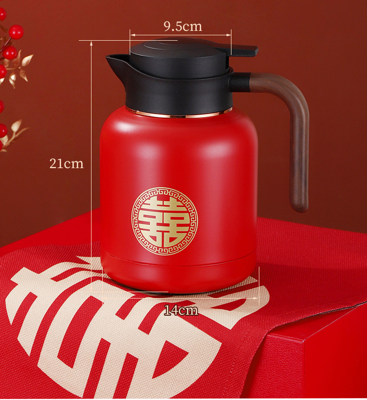 婚庆保温壶304不锈钢闷泡壶结婚暖壶陪嫁礼盒伴手礼红色水壶套装