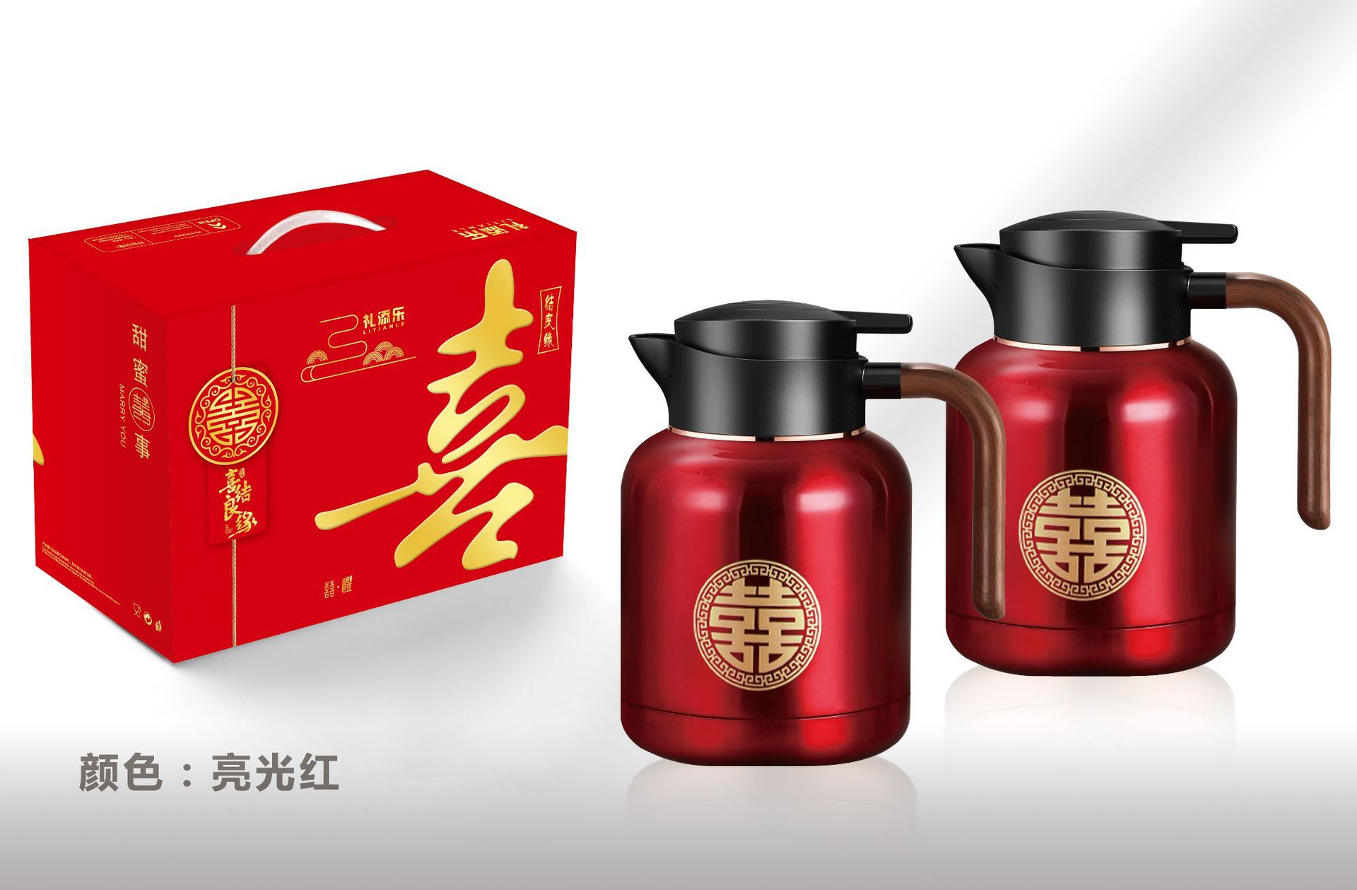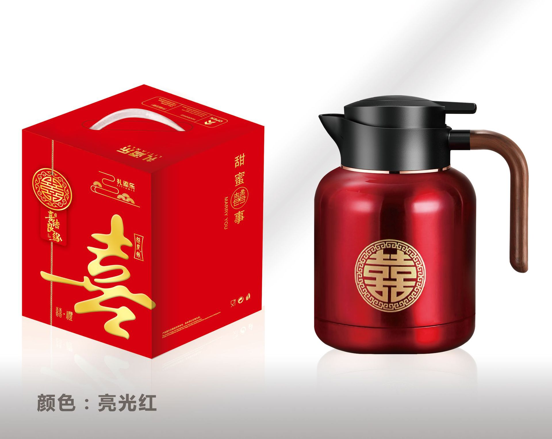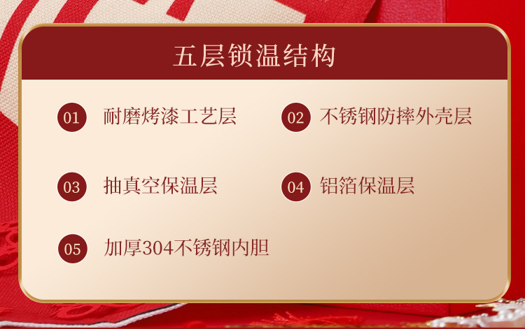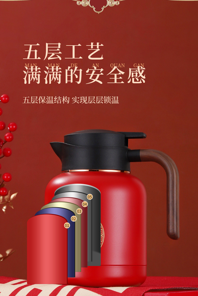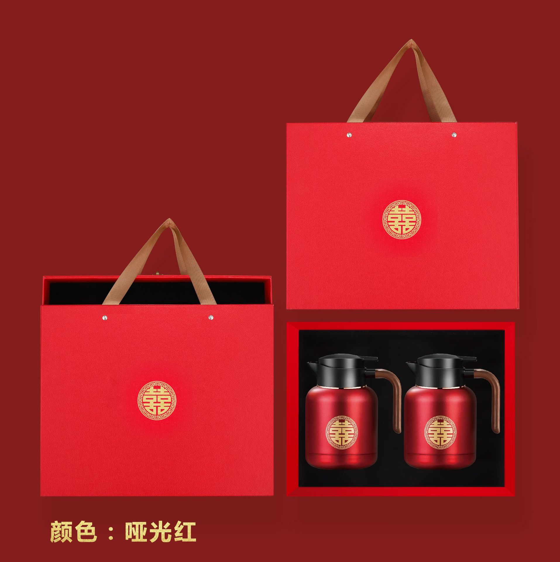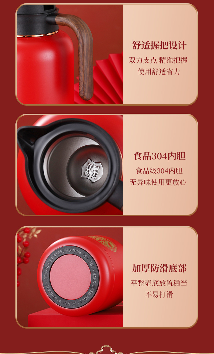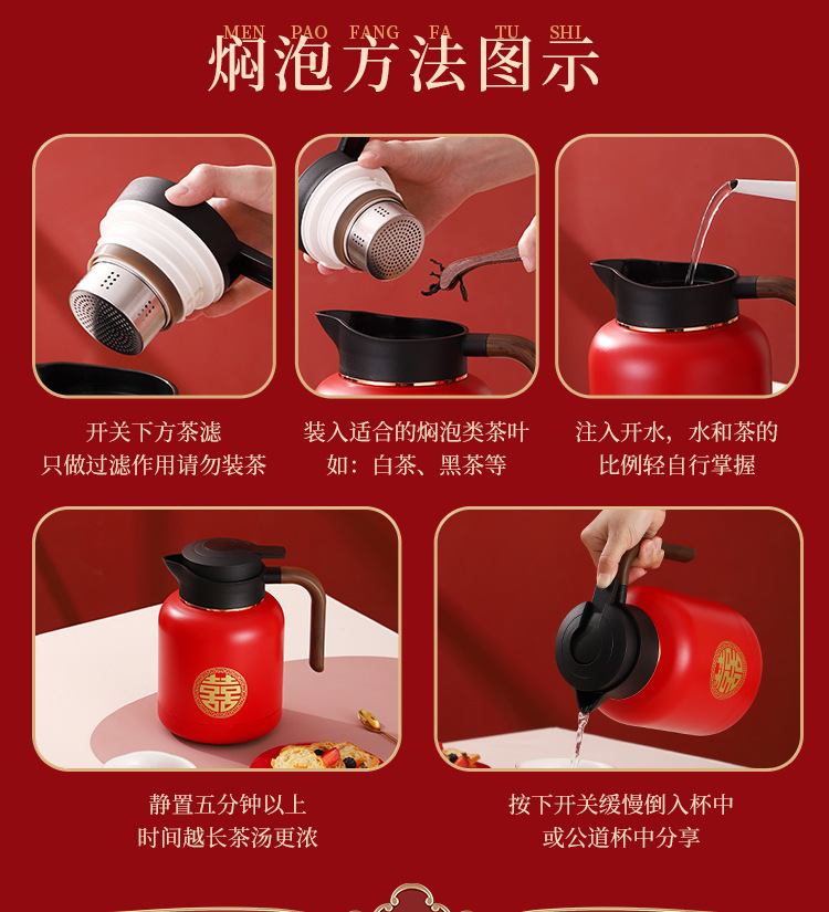 婚庆保温壶304不锈钢闷泡壶结婚暖壶陪嫁礼盒伴手礼红色水壶套装