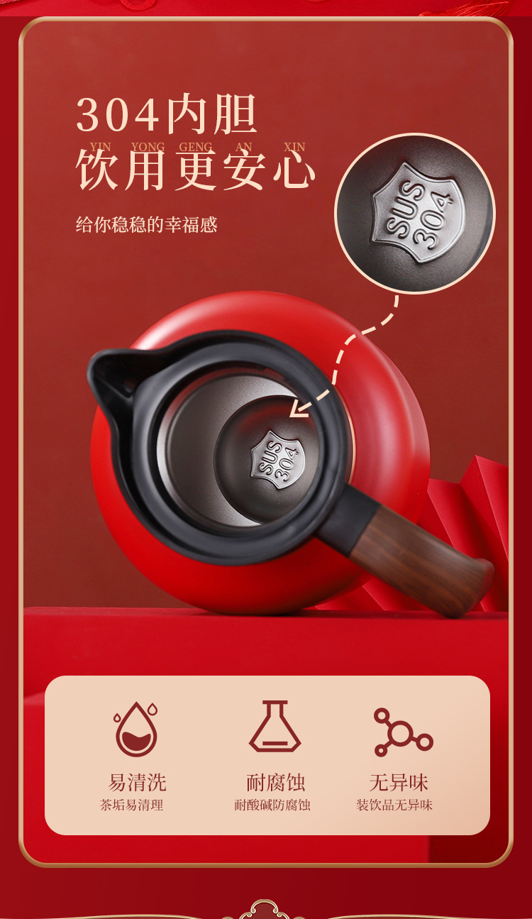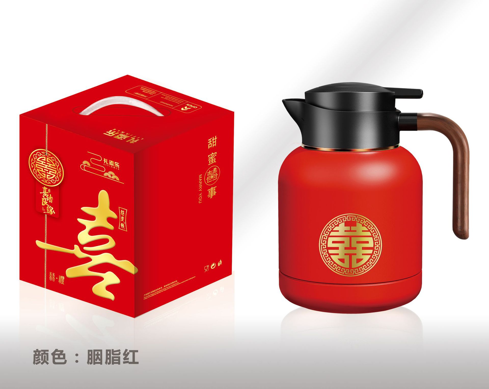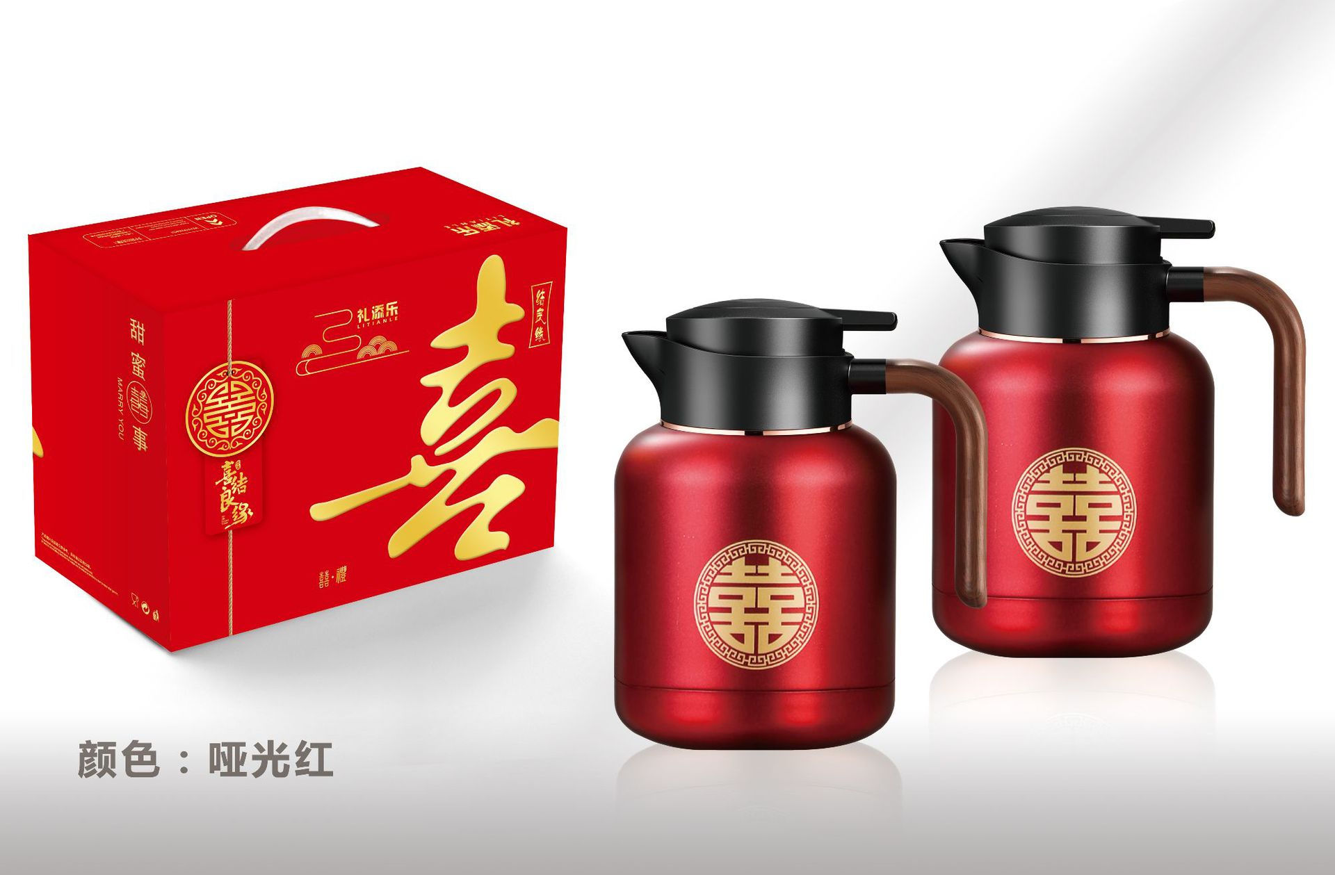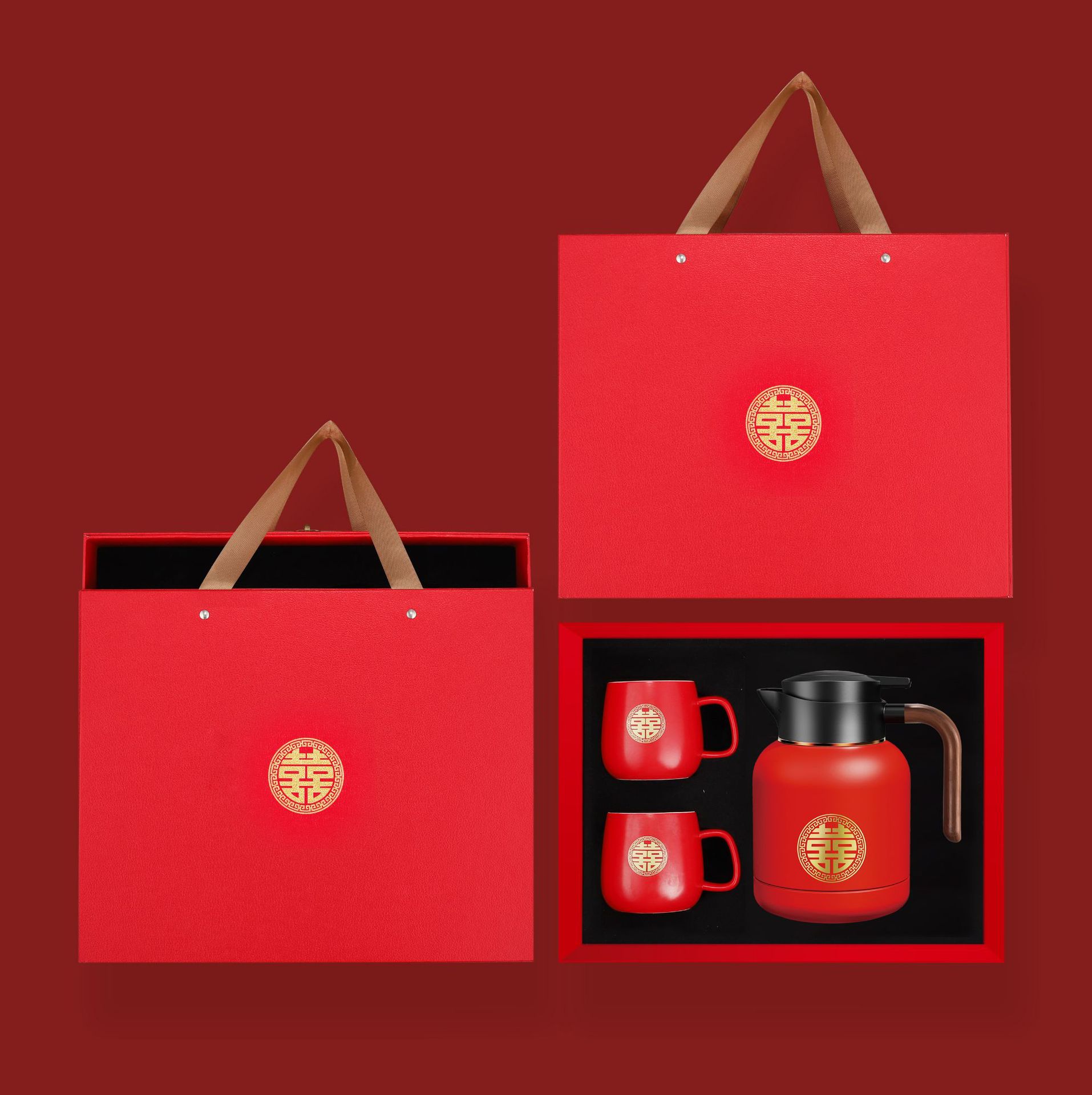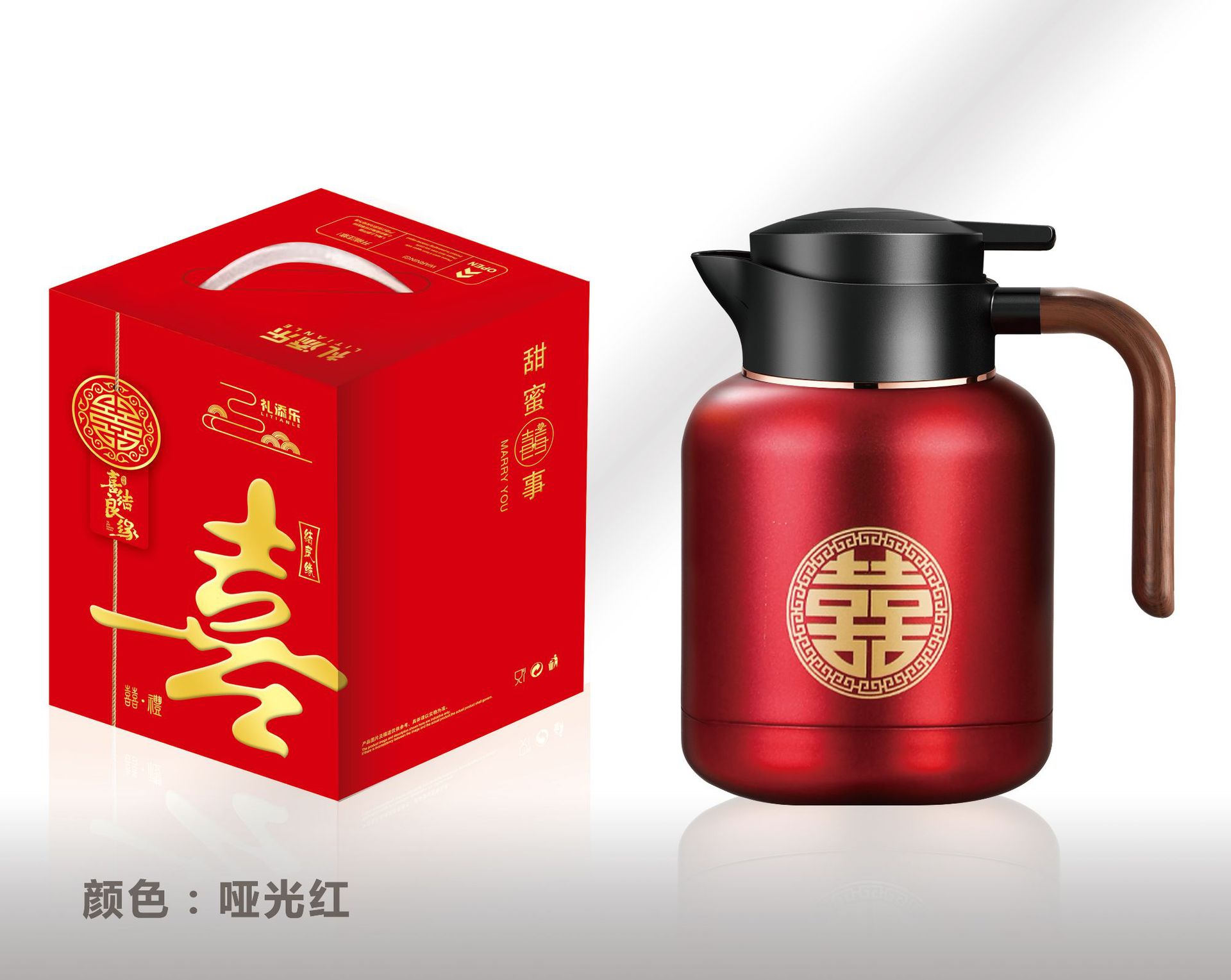 婚庆保温壶304不锈钢闷泡壶结婚暖壶陪嫁礼盒伴手礼红色水壶套装