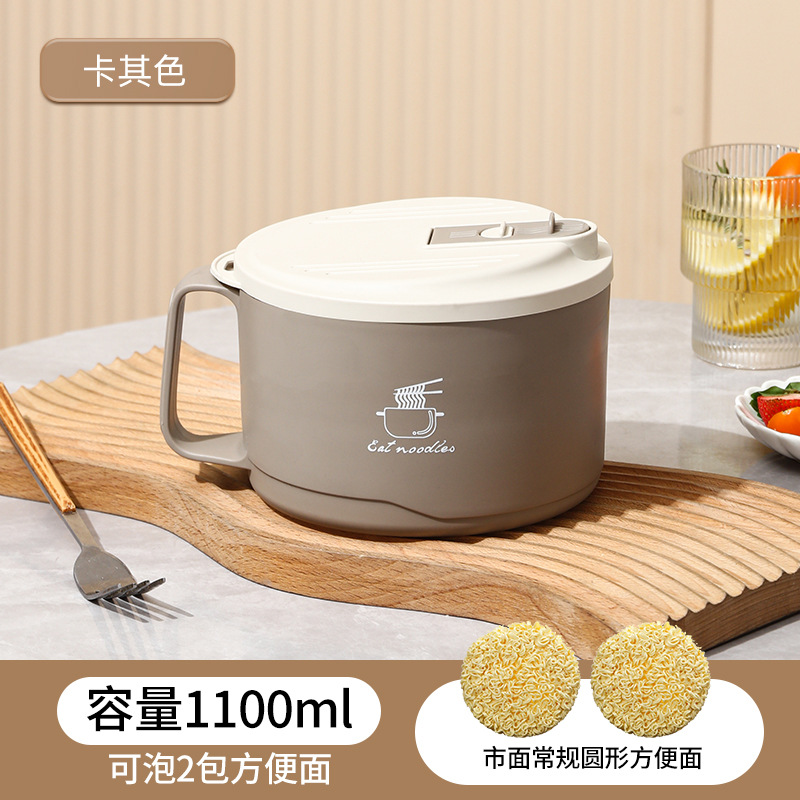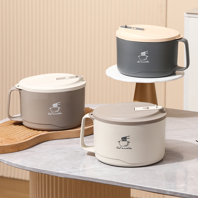 304不锈钢泡面碗双层隔热带盖饭盒可沥水大容量方便面碗礼品代发