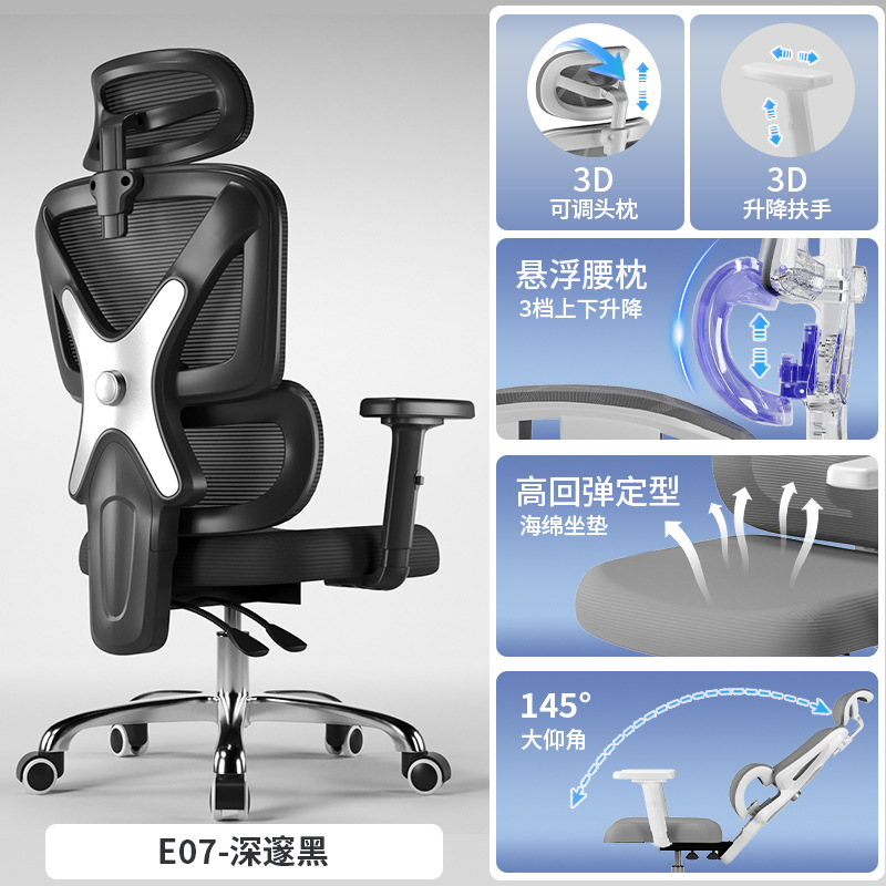 办公椅电脑椅子人体工学椅家用舒适久坐不累员工椅电竞椅可躺座椅
