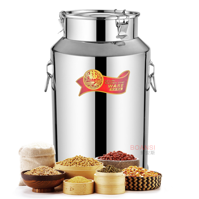 不锈钢密封桶圆桶米酒油牛奶桶储物密封 茶叶罐茶具 无磁加厚