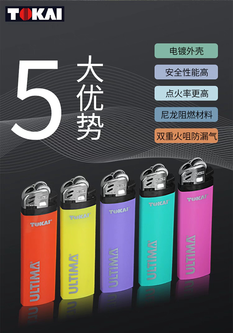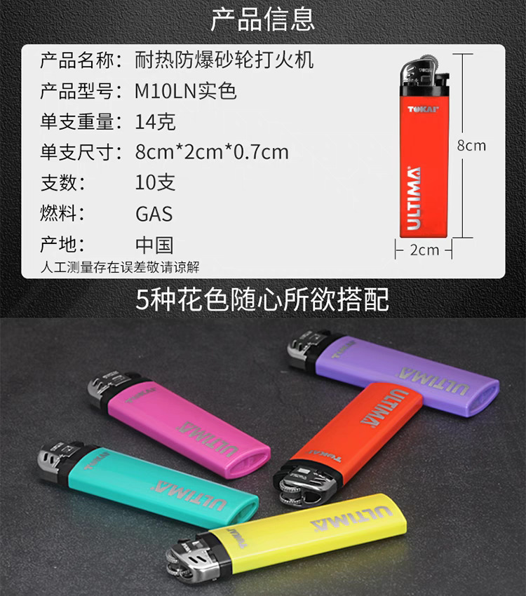 TOKAI东海一次性打火机M10LN实色半透明款耐热防爆砂轮批发