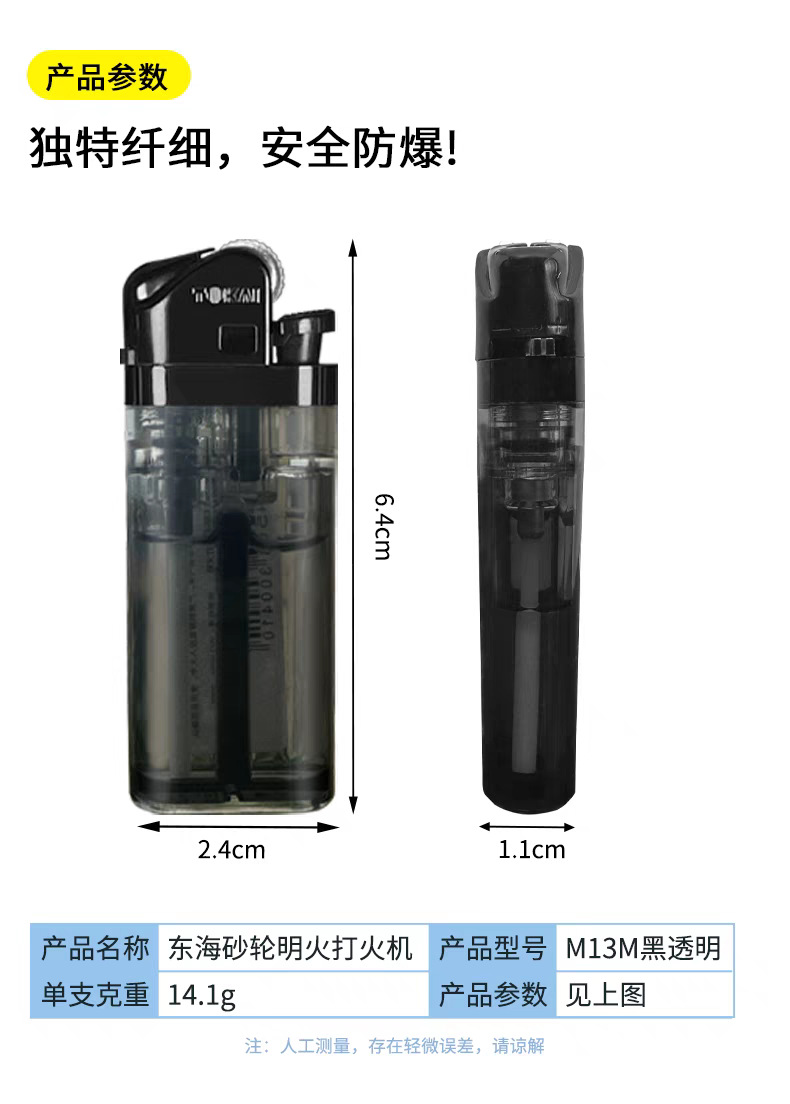 tokai donghai disposable lighter black translucent short mini heat-resistant explosion-proof grinding wheel wholesale