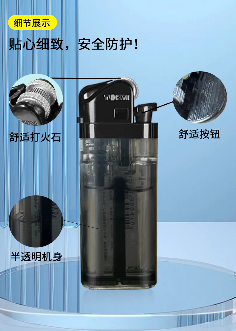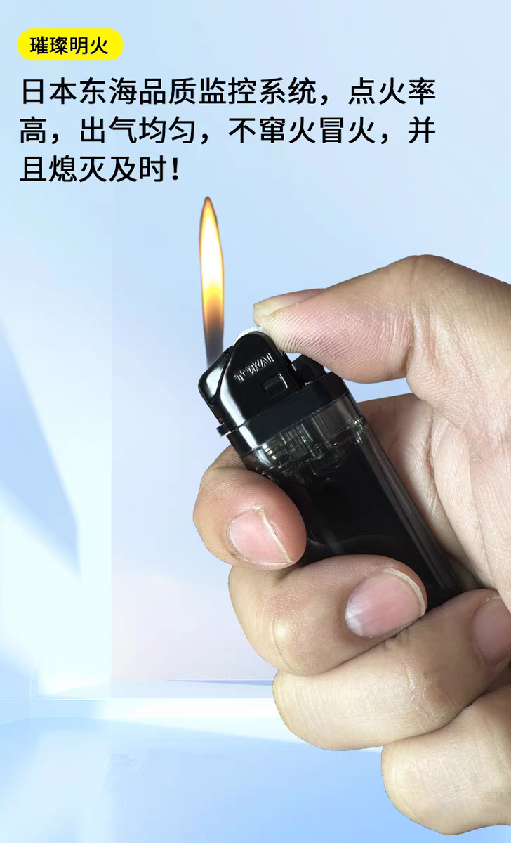 TOKAI东海一次性打火机黑色半透明短款迷你耐热防爆砂轮批发
