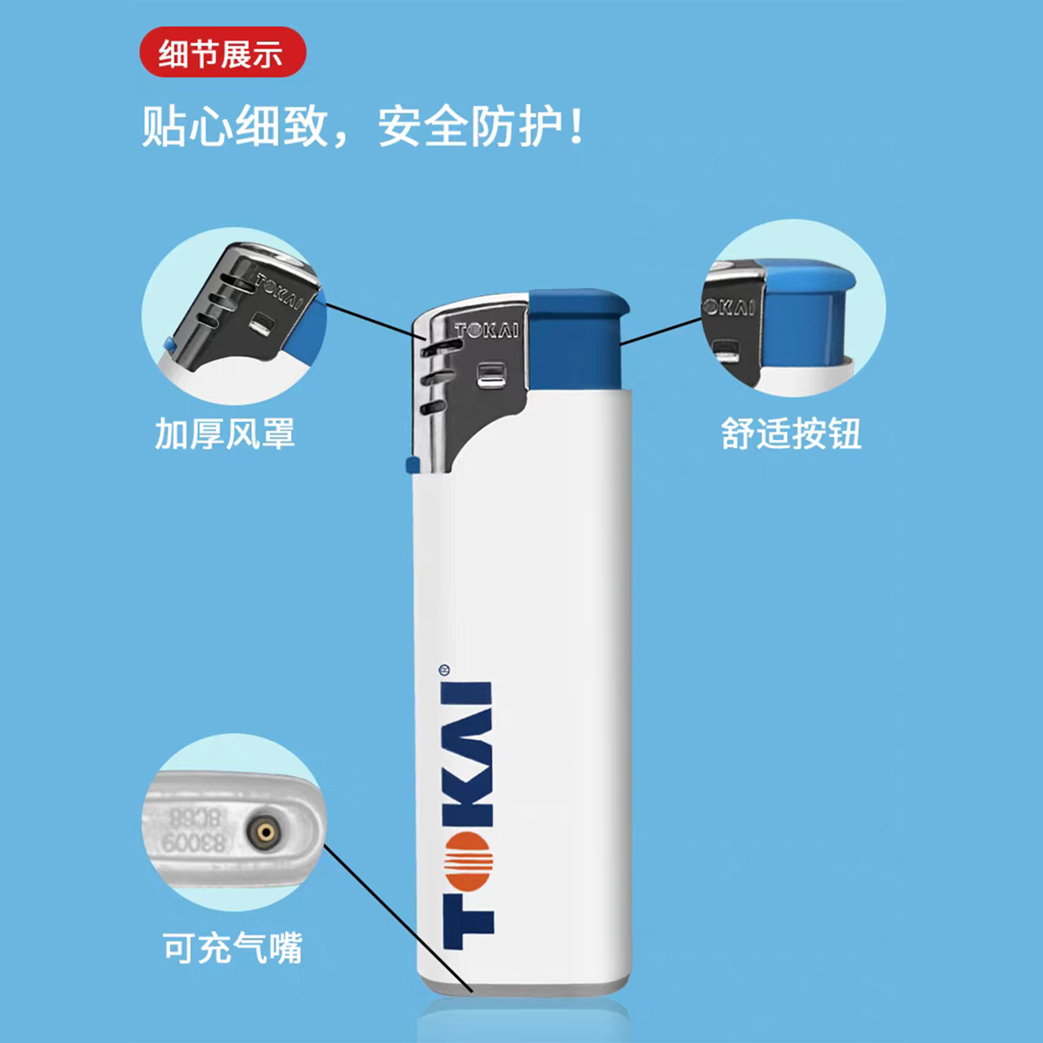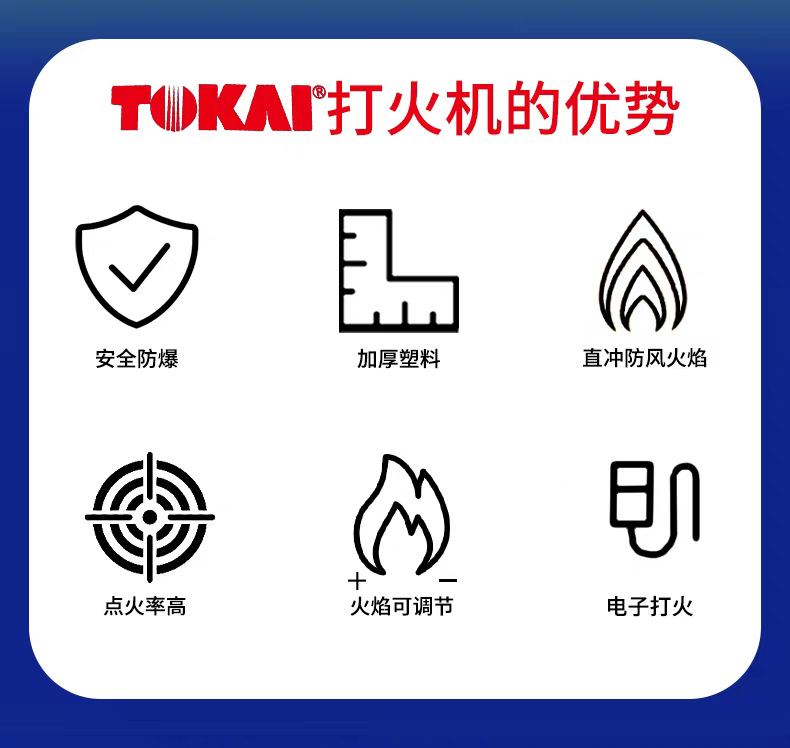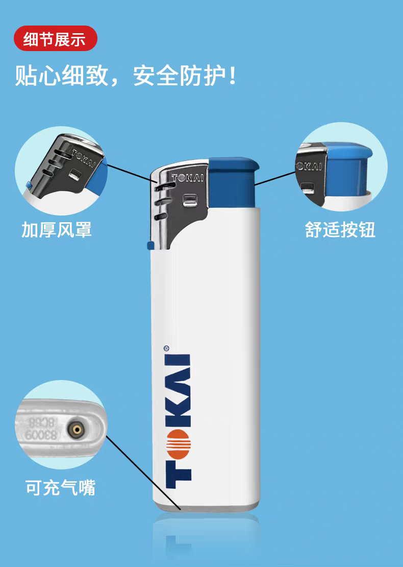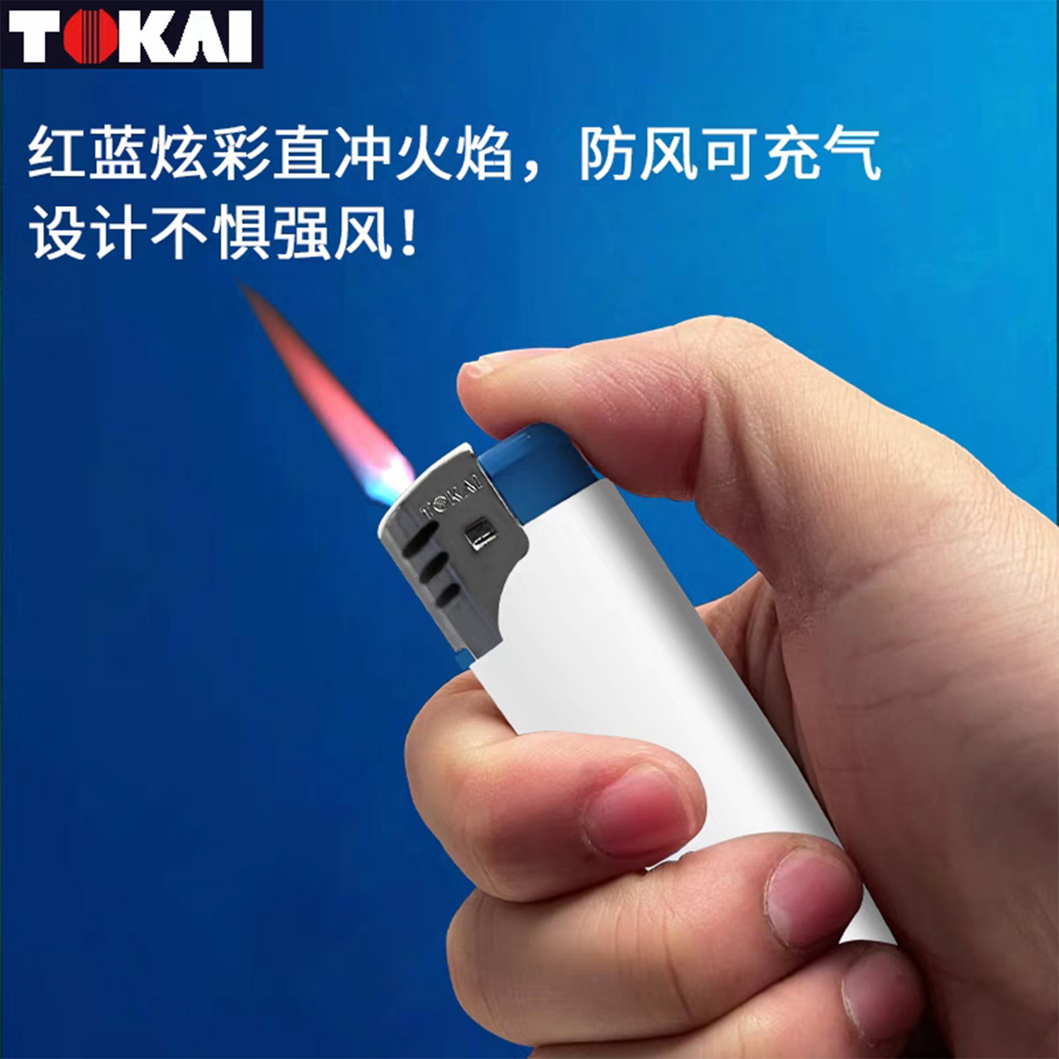 TOKAI东海tokai一次性打火机直冲防风蓝白款耐热防爆砂轮批发