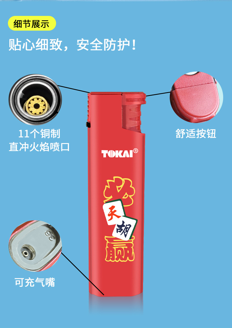 TOKAI东海tokai一次性打火机幻彩红色直冲防风雀神麻将耐热防爆