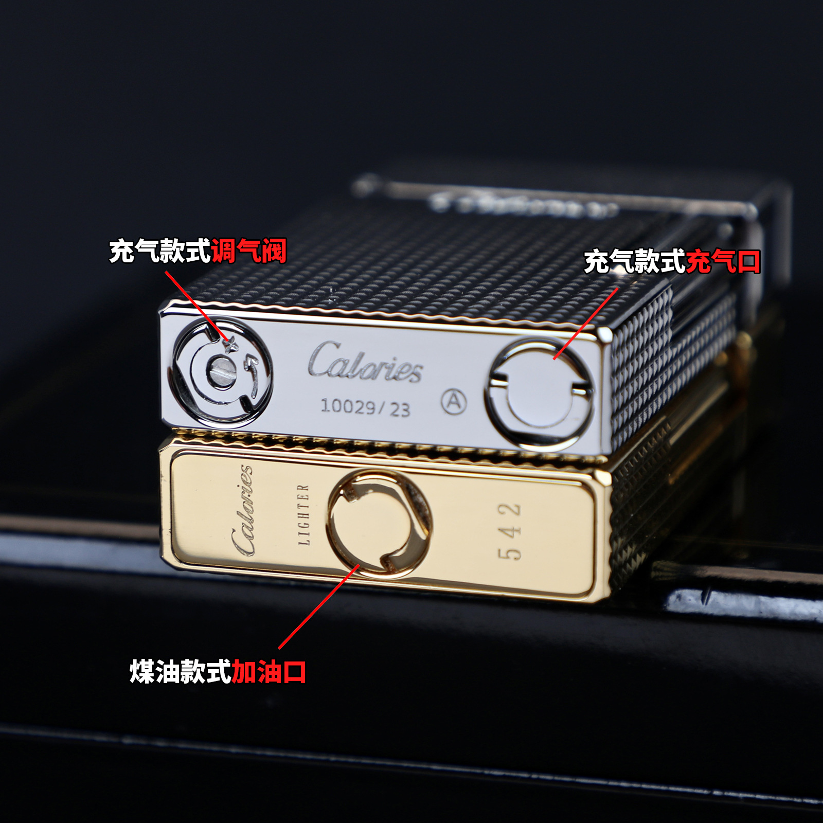 Calories卡路正品朗声打火机巴黎丁大标铜充气体油机铜砂轮侧滑铜