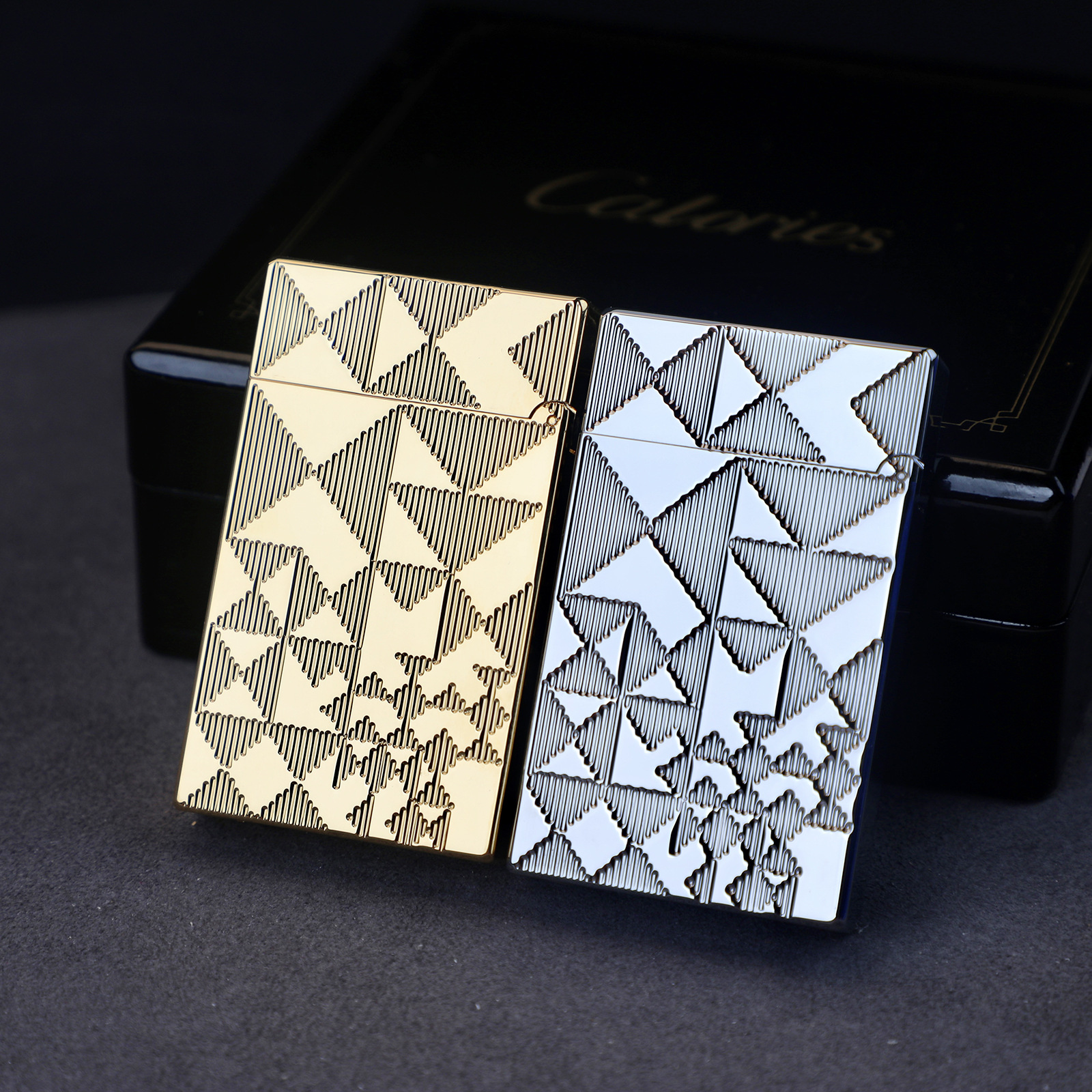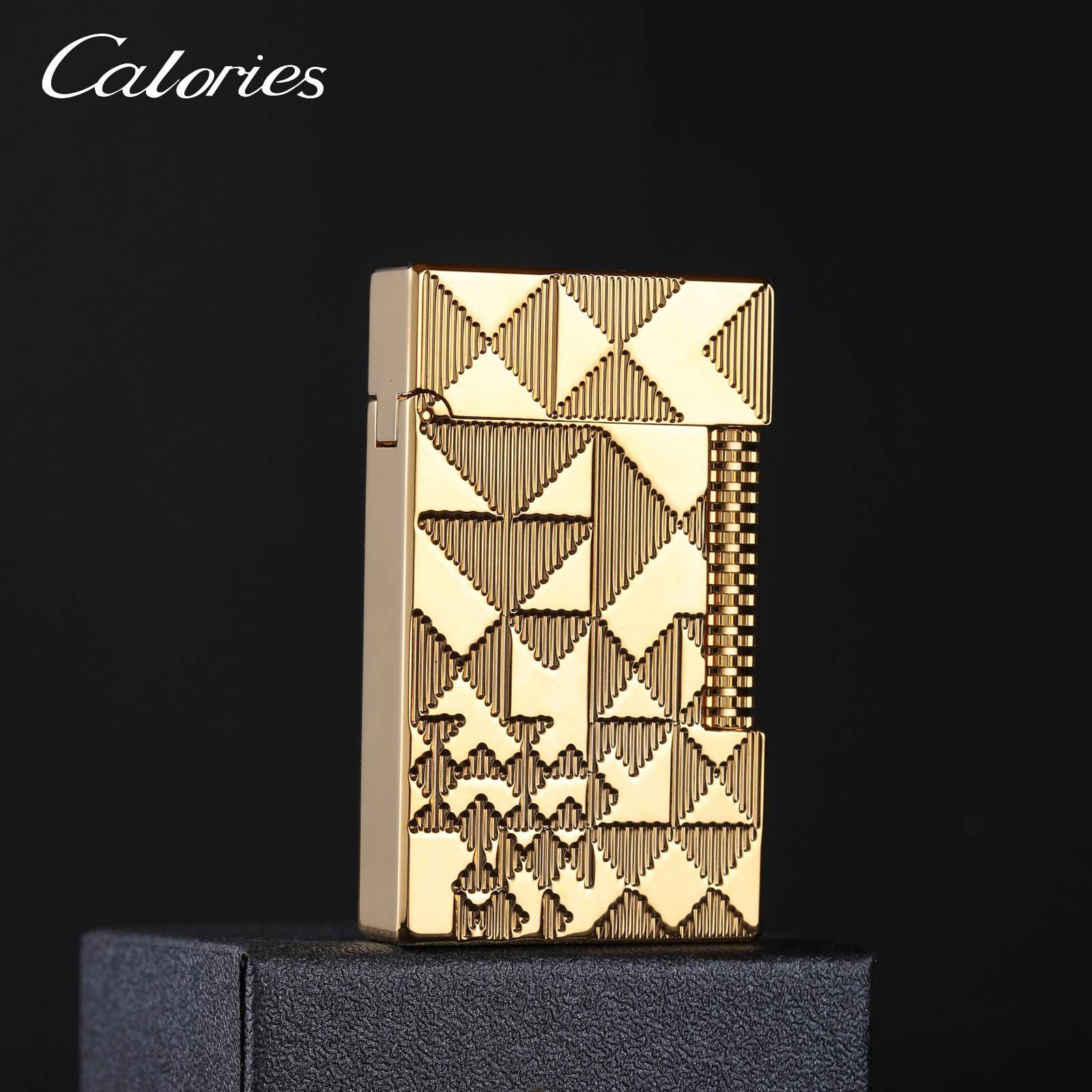Calories卡路朗声打火机铜机三角纹侧滑轮分割线大格子竖条盖茨比