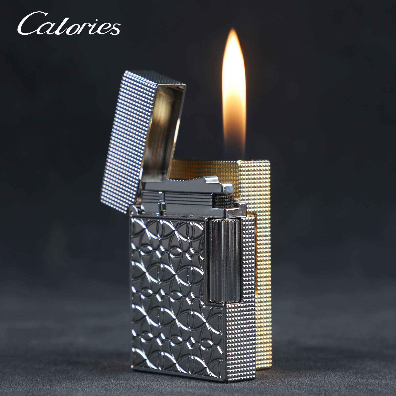 Calorie卡路朗声气体正品充气打火机短款迷你黄铜创意侧滑砂轮