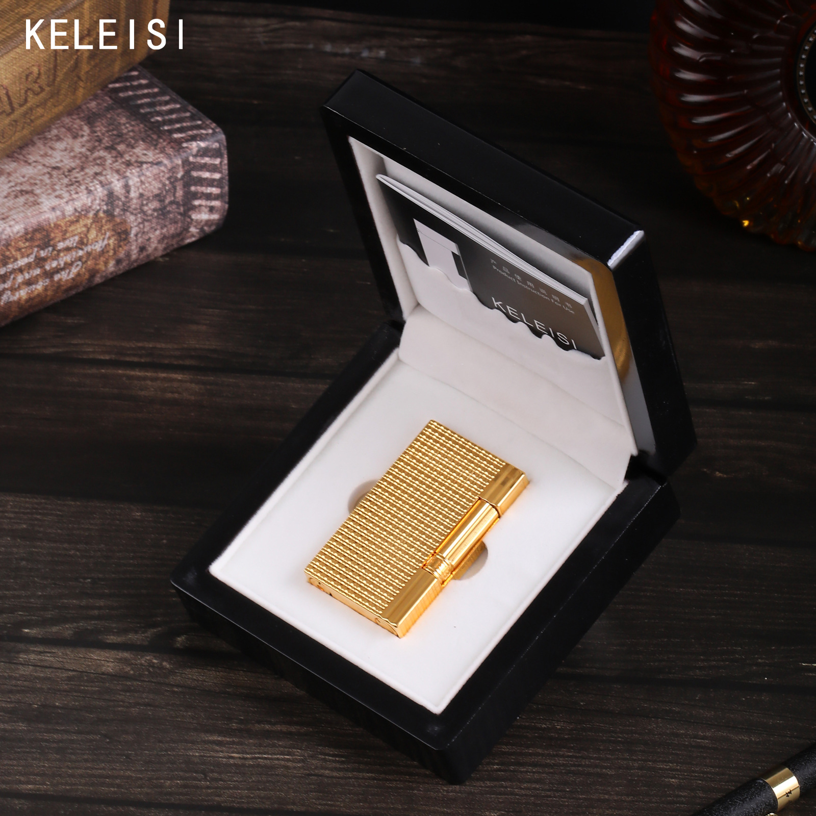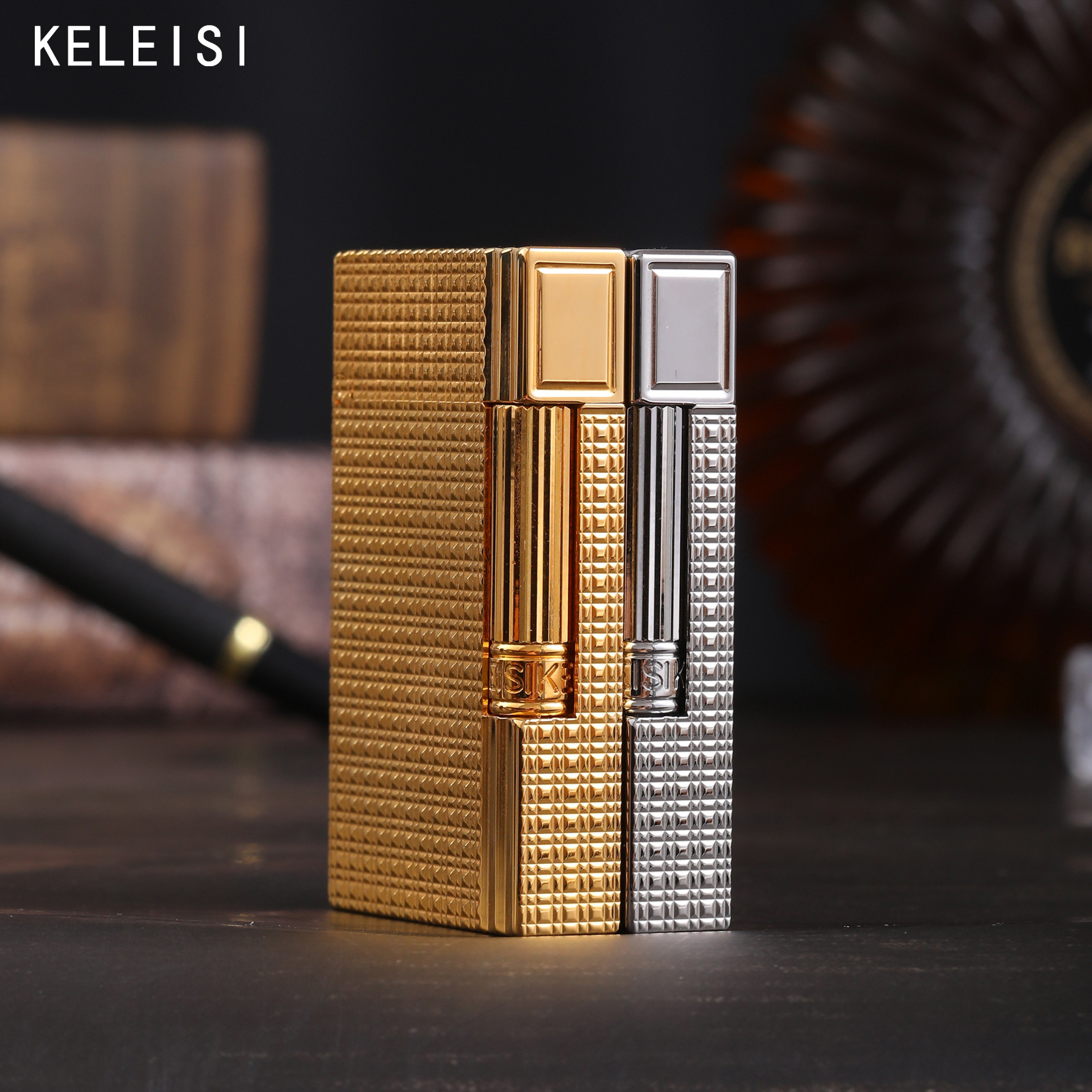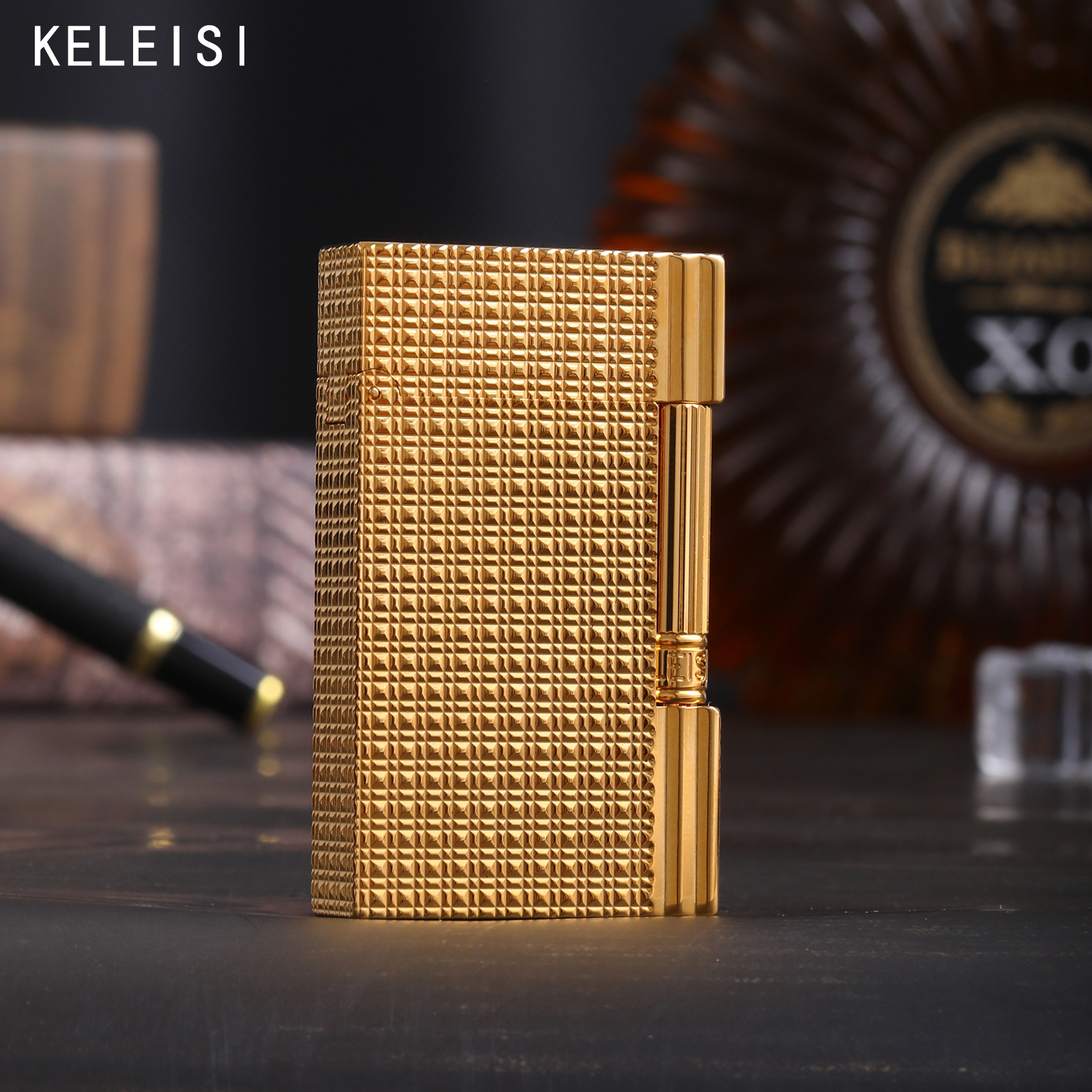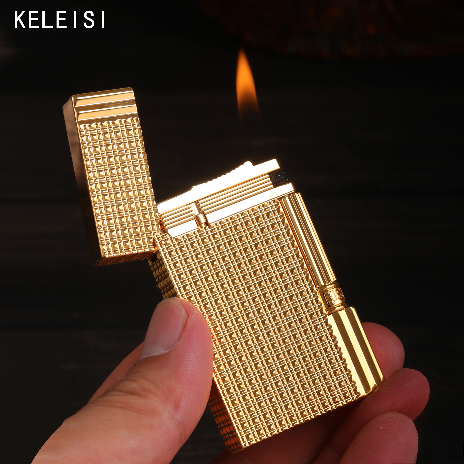 原装正品KELEISI克雷斯巴黎丁纯铜砂轮侧滑充气打火机送礼批发