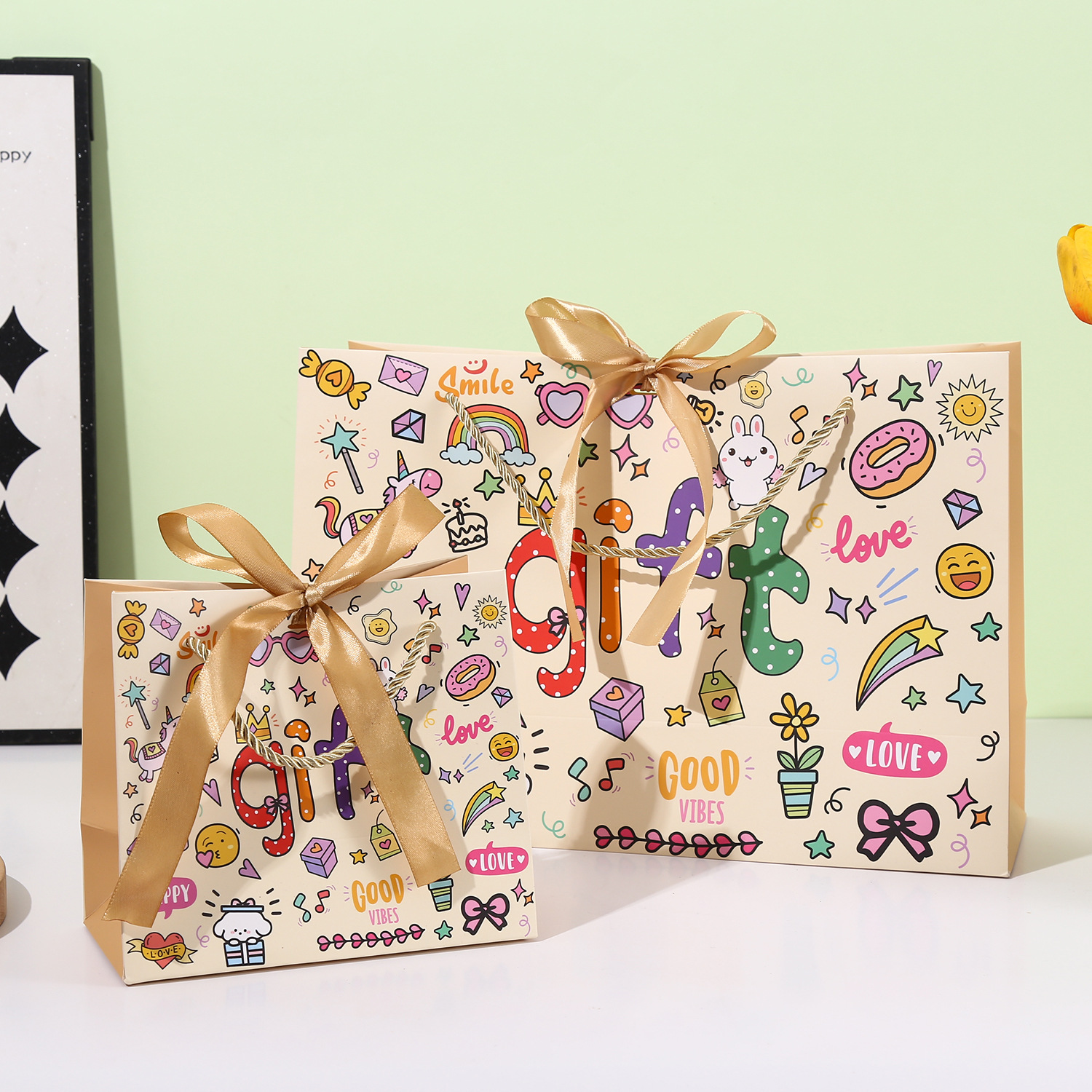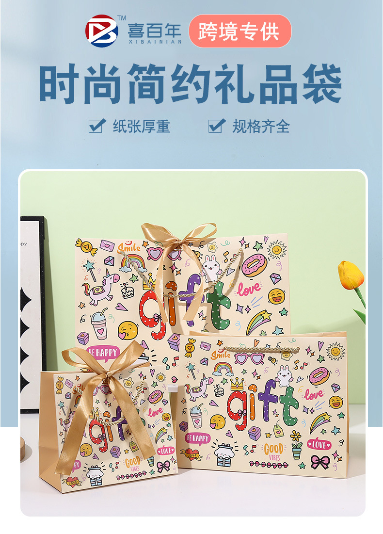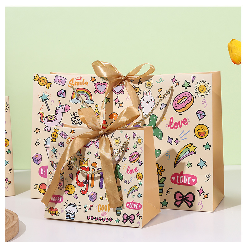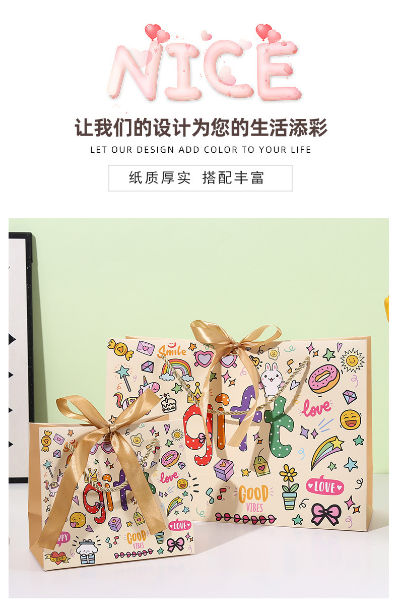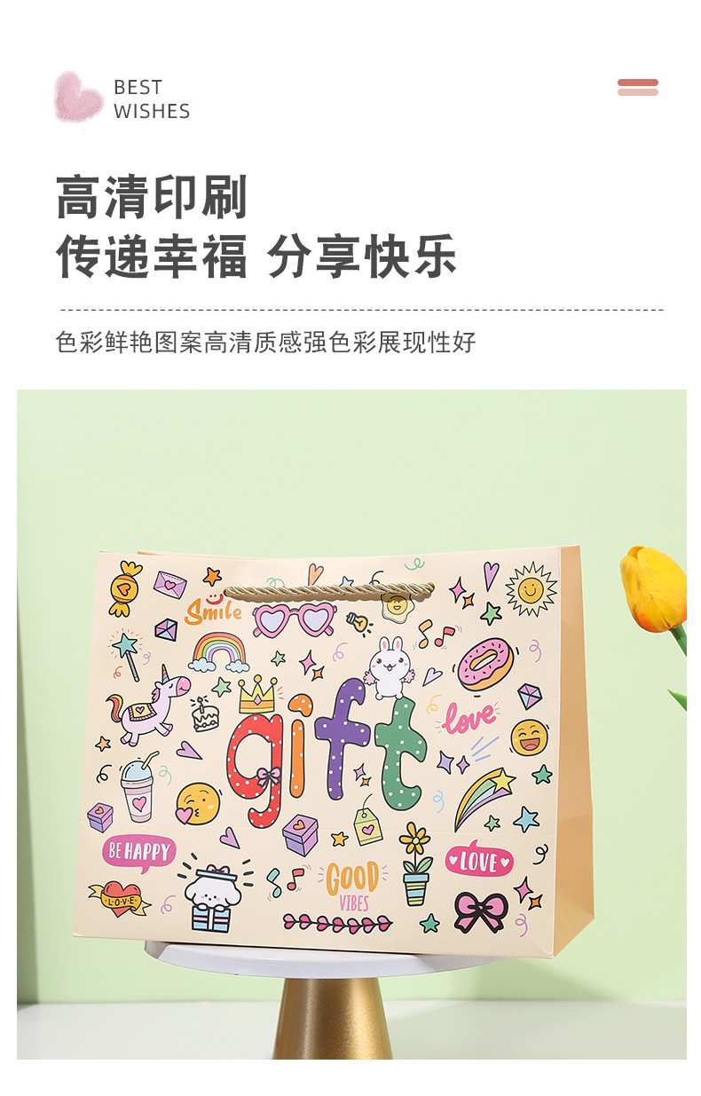 可爱GIFT伴手礼袋卡通涂鸦手提袋儿童生日礼品袋创意购物手拎纸袋