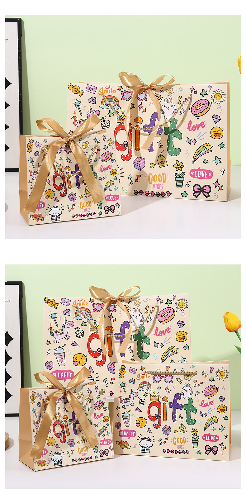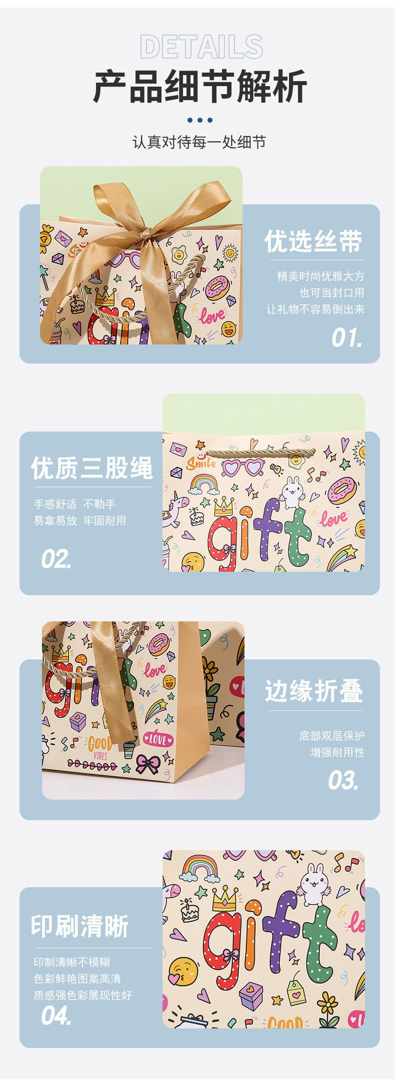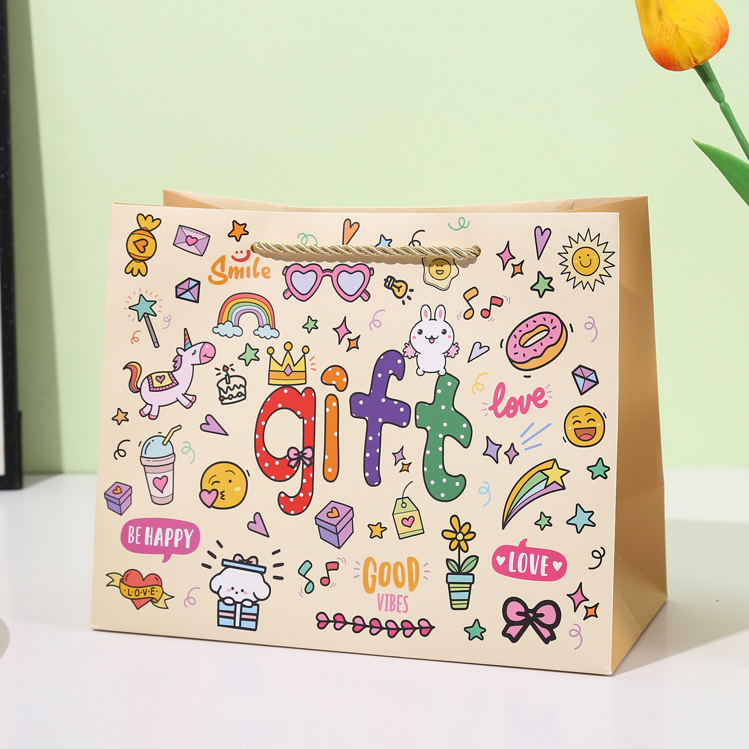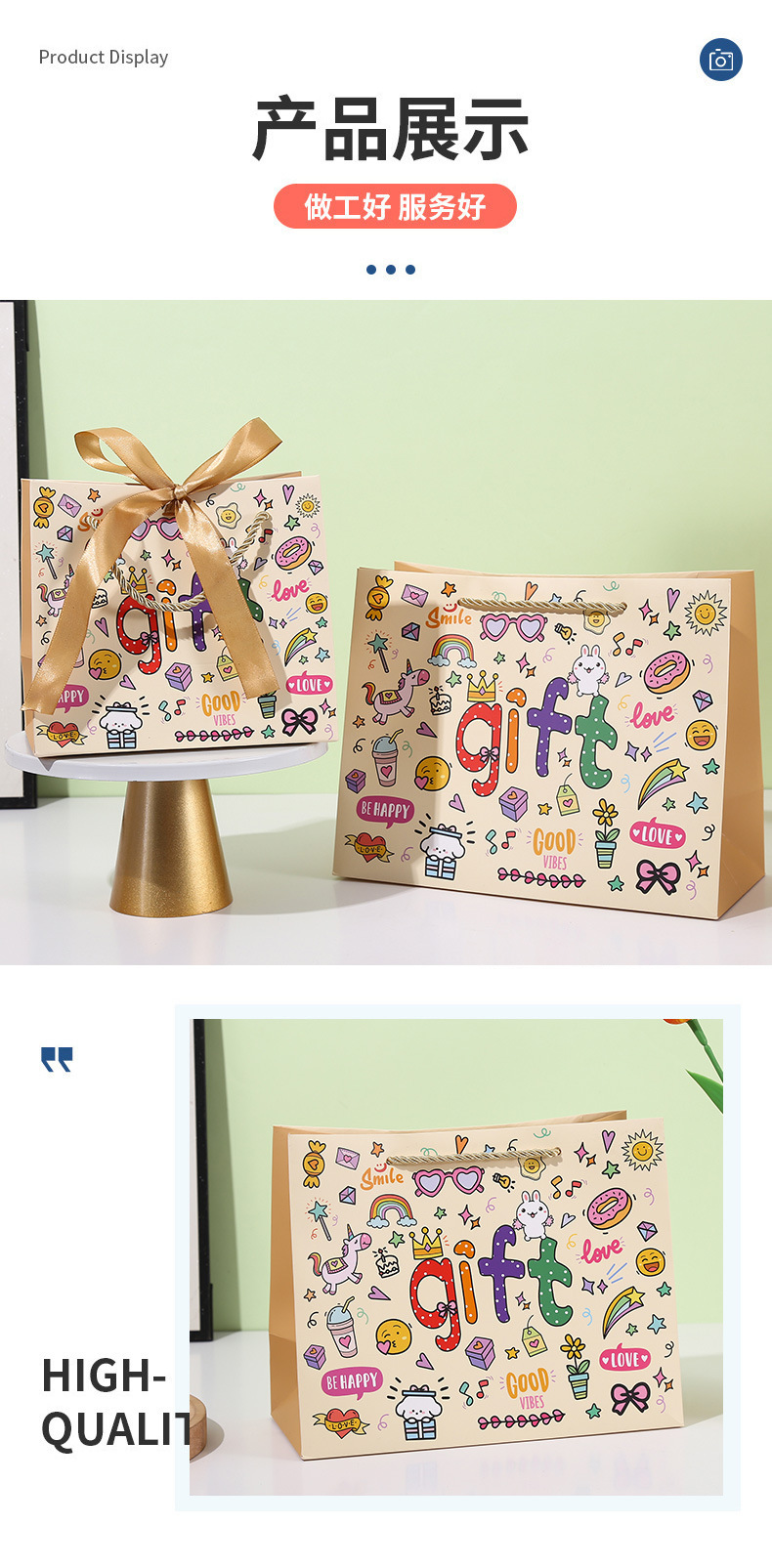 可爱GIFT伴手礼袋卡通涂鸦手提袋儿童生日礼品袋创意购物手拎纸袋