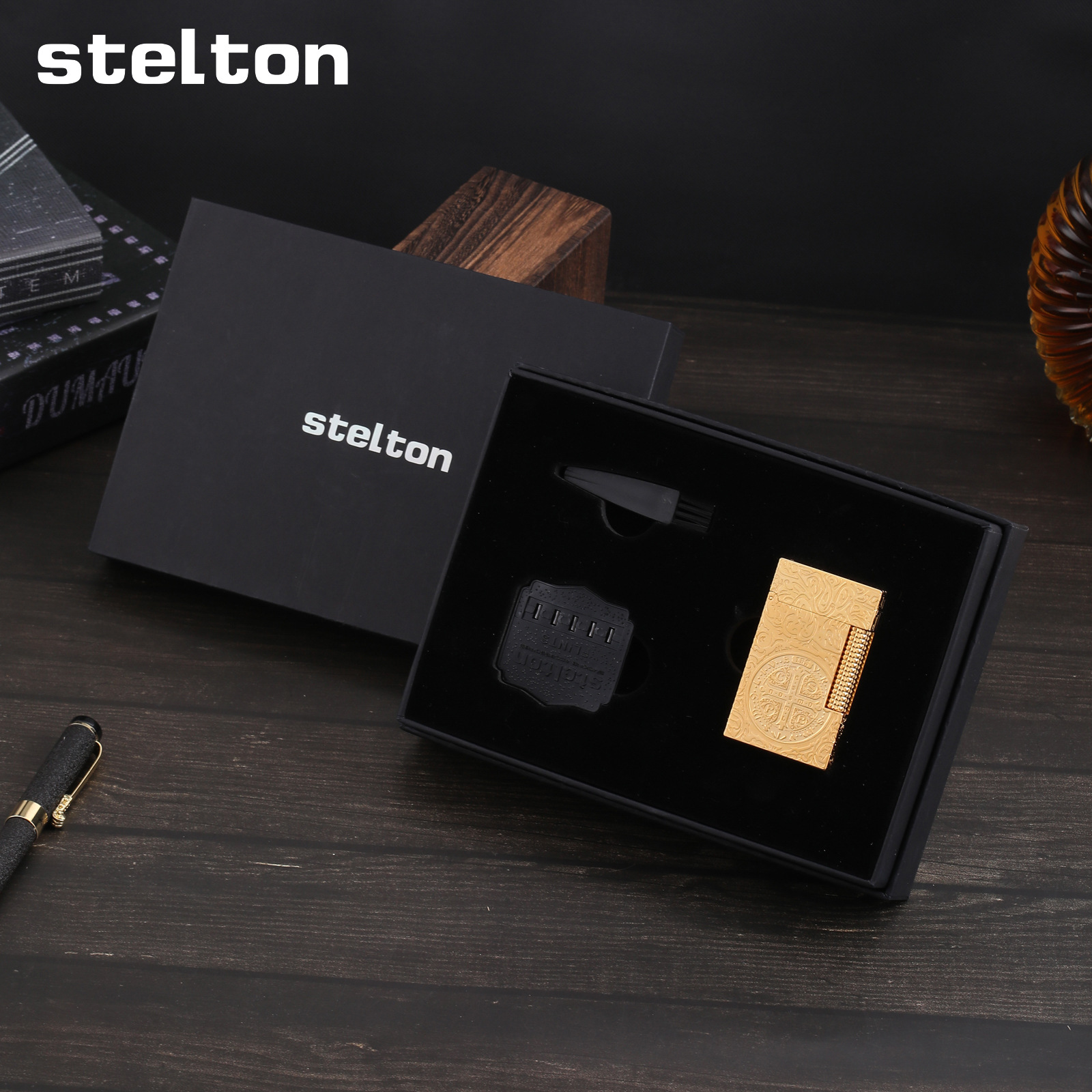 stelton斯特滕朗声充气打火机雕刻砂轮侧滑康斯坦丁礼盒套装批发