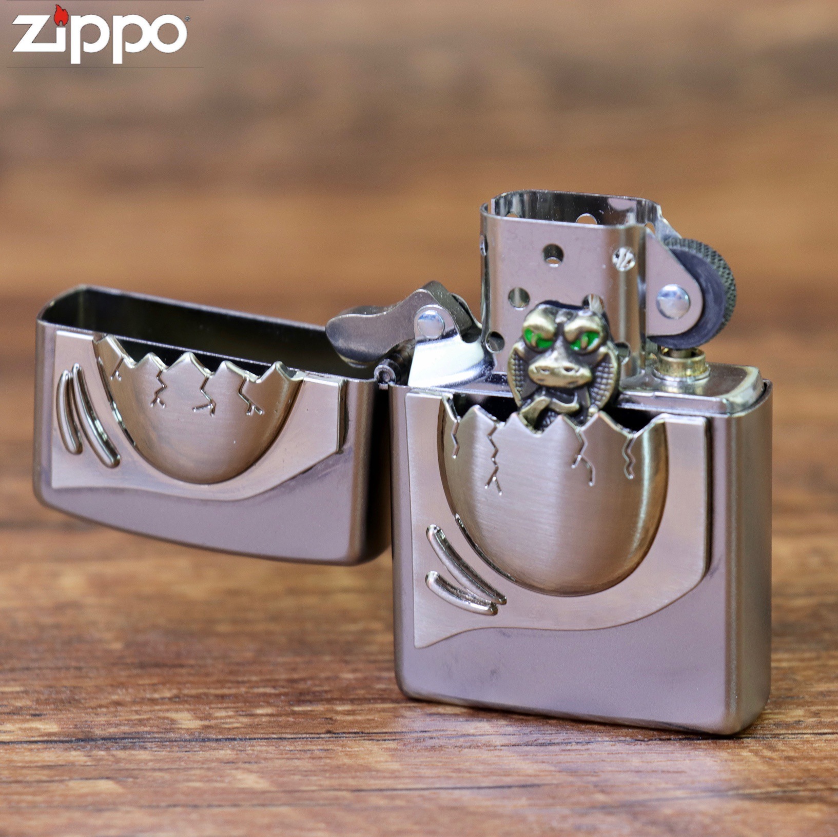 ZIPPO芝宝 正品开盖贴章个性小恐龙蛋蛇蛋煤油防风打火机