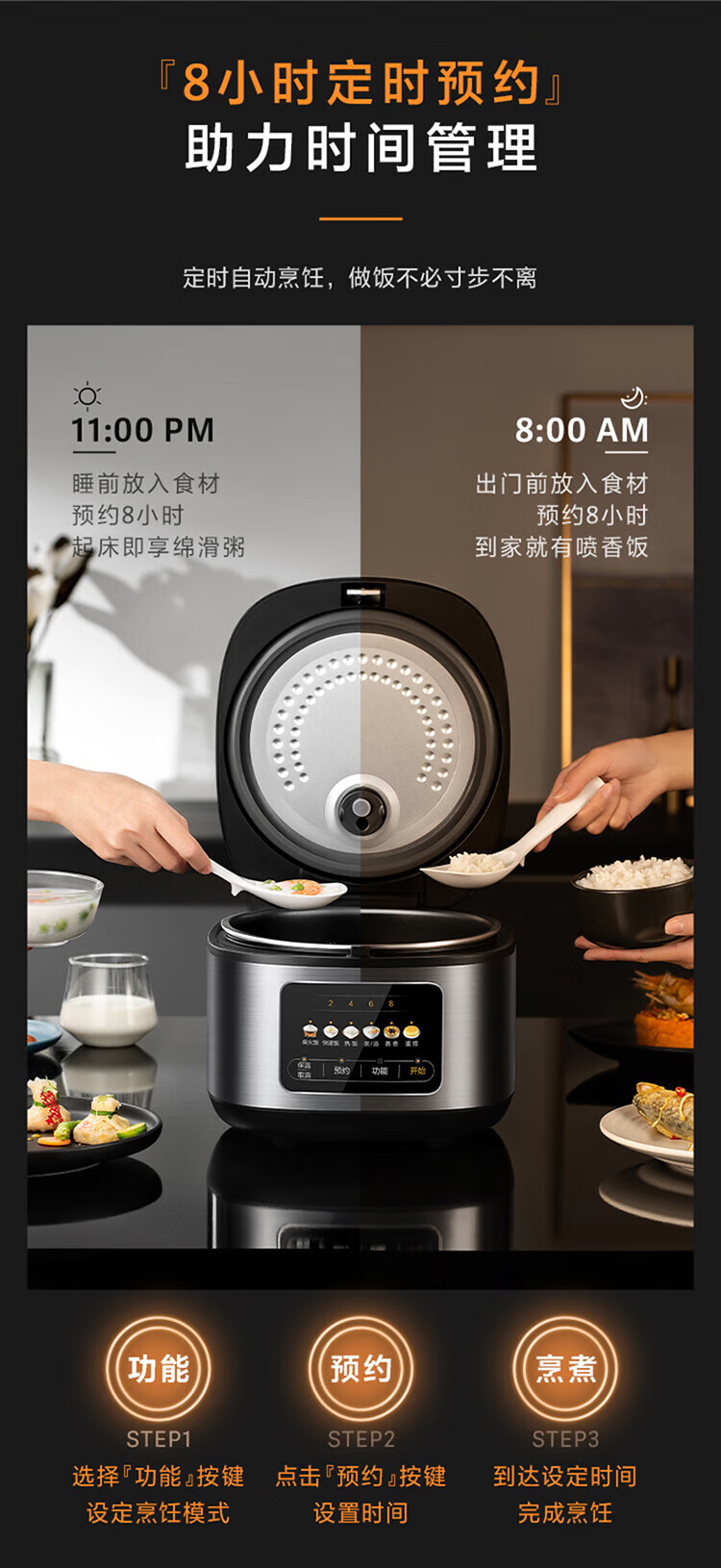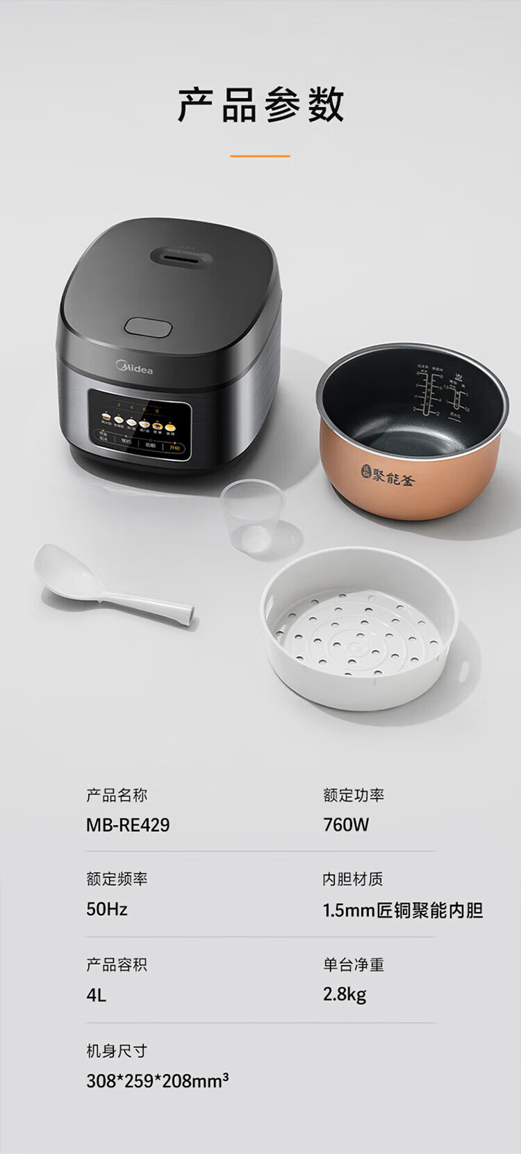 美的电饭煲智能家用3升煮饭锅全自动蒸蛋糕迷你宿舍柴火不粘快速