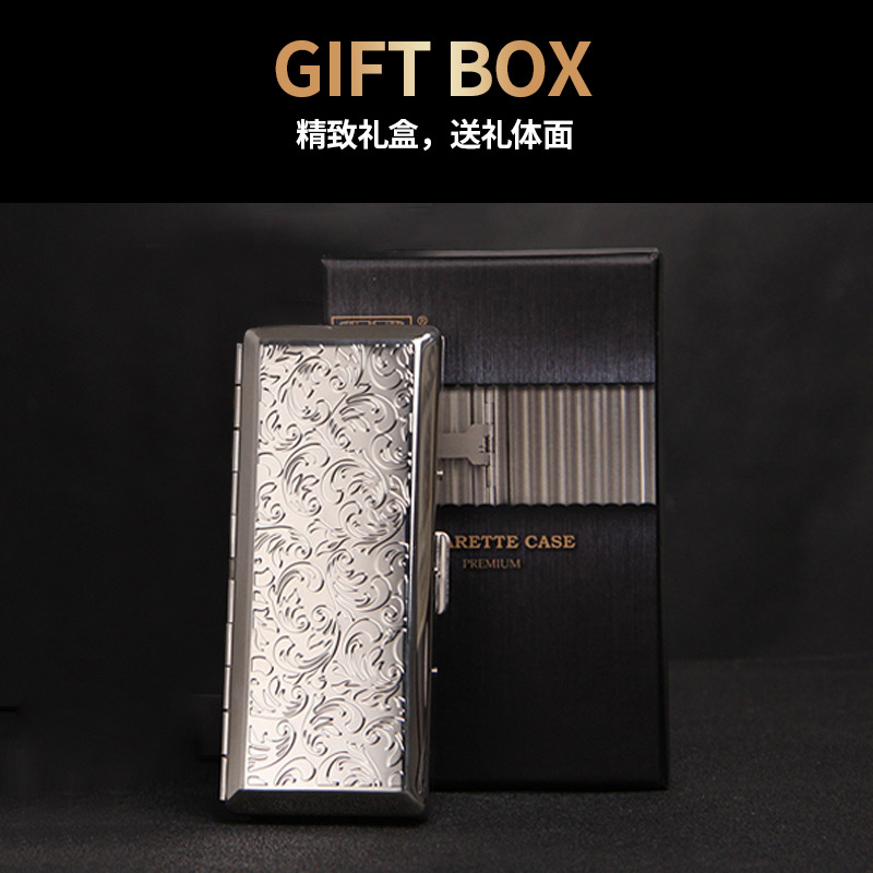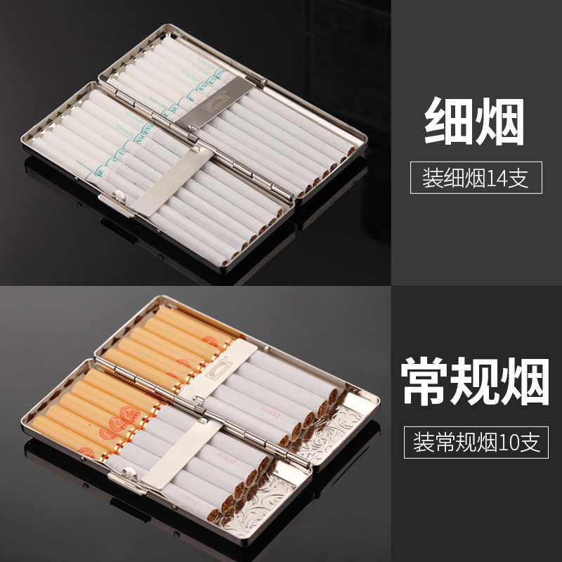双枪女细烟盒14支装加长款男香菸盒个性创意便携金属烟夹烟具新