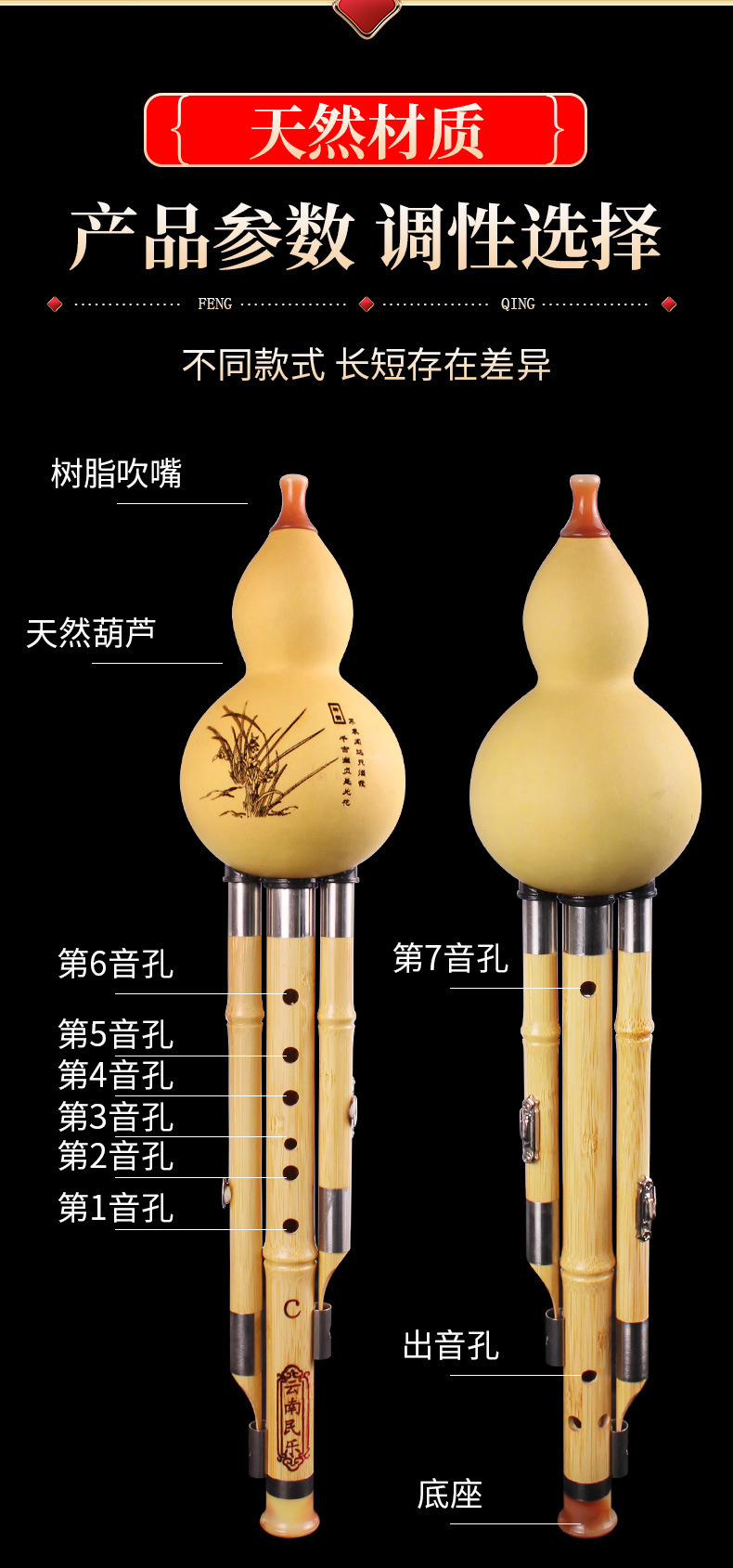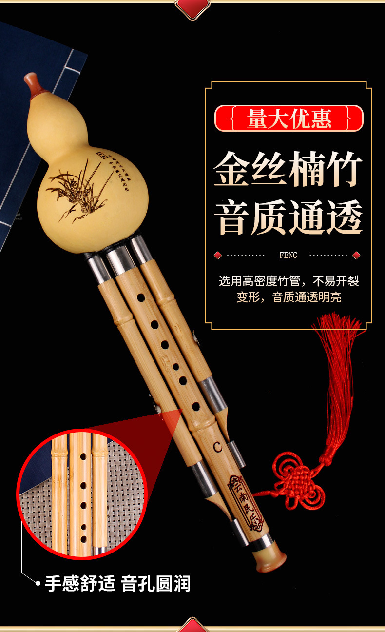 三音金丝楠竹葫芦丝学生初学演奏葫芦丝学校采购葫芦丝厂家批发