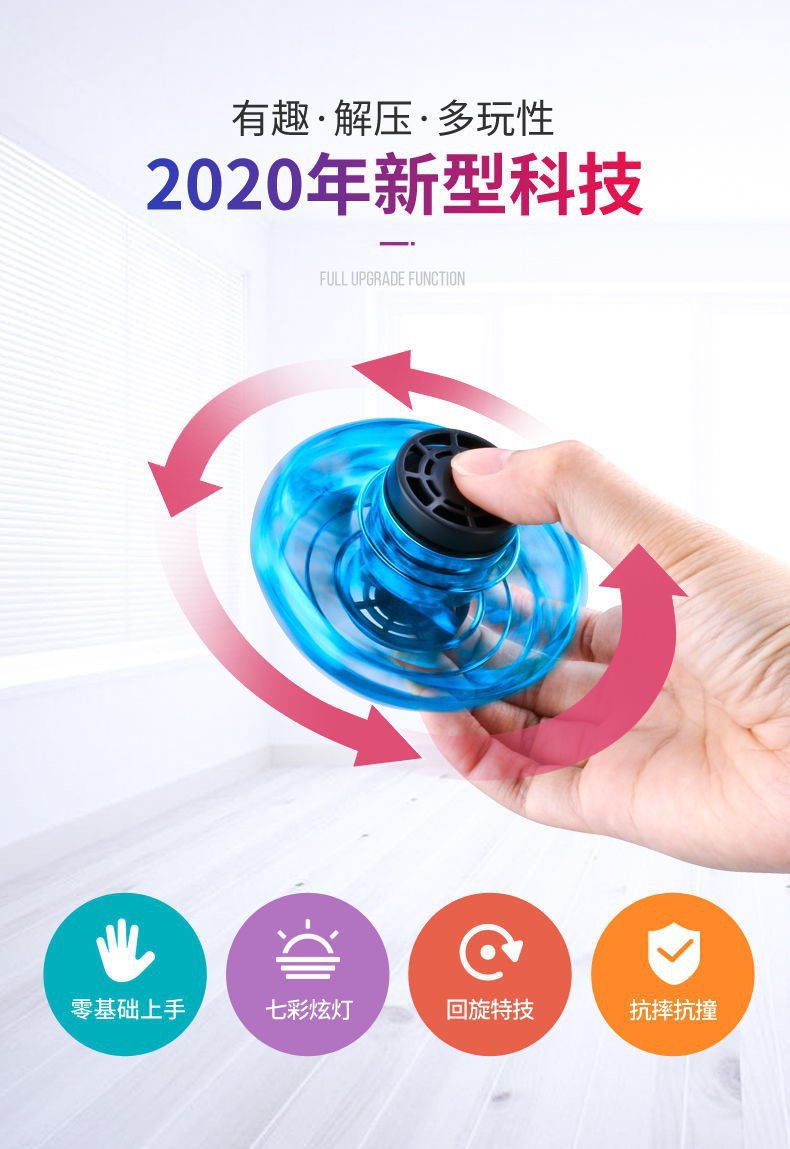 跨境回旋指尖陀螺UFO悬浮发光回旋陀螺减解压儿童玩具 感应飞行器