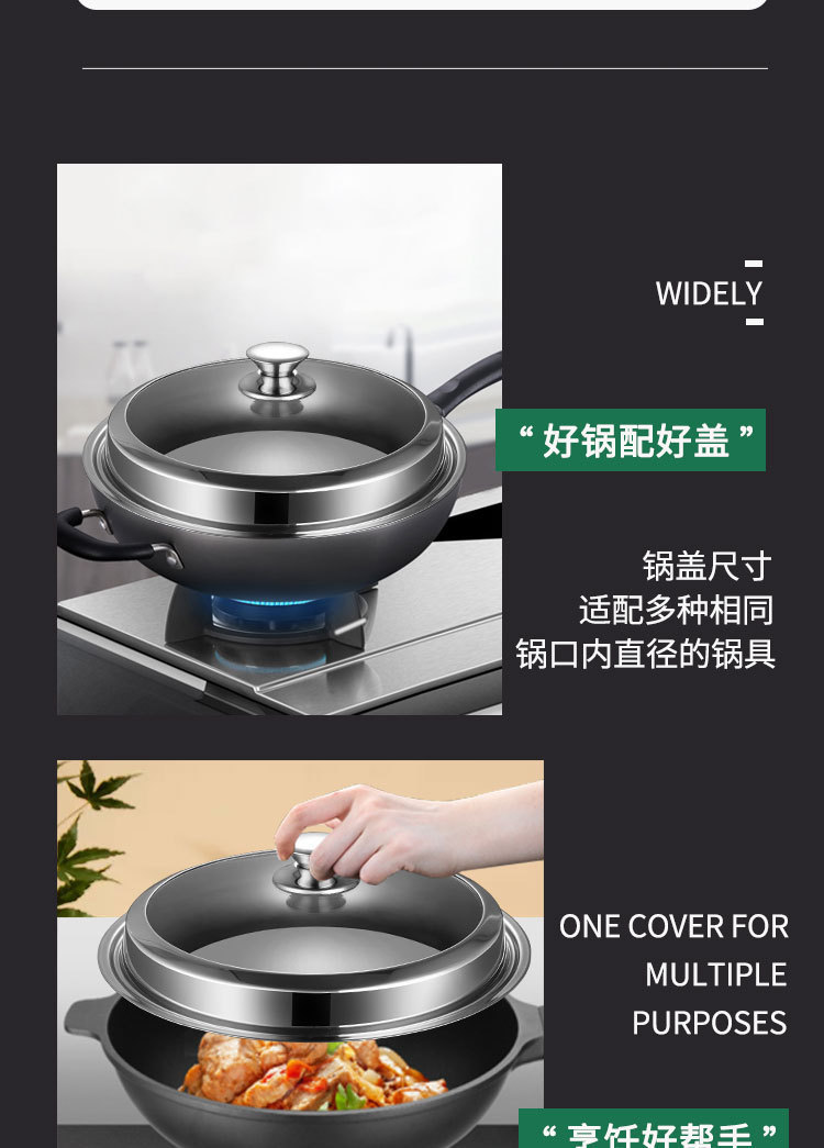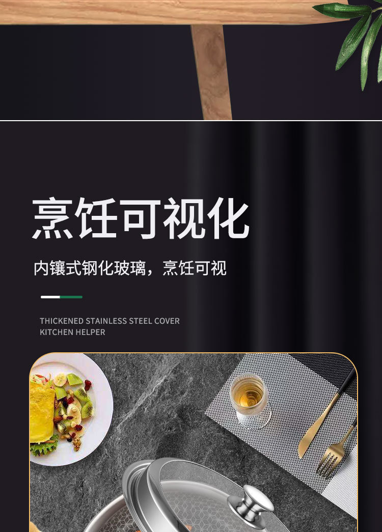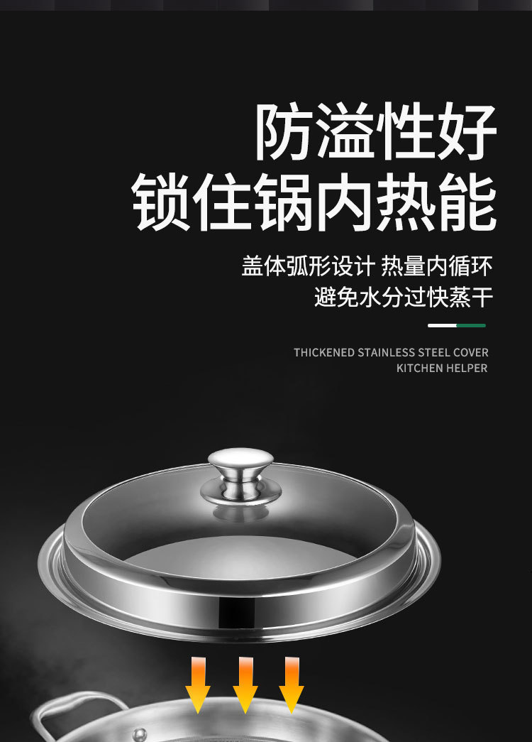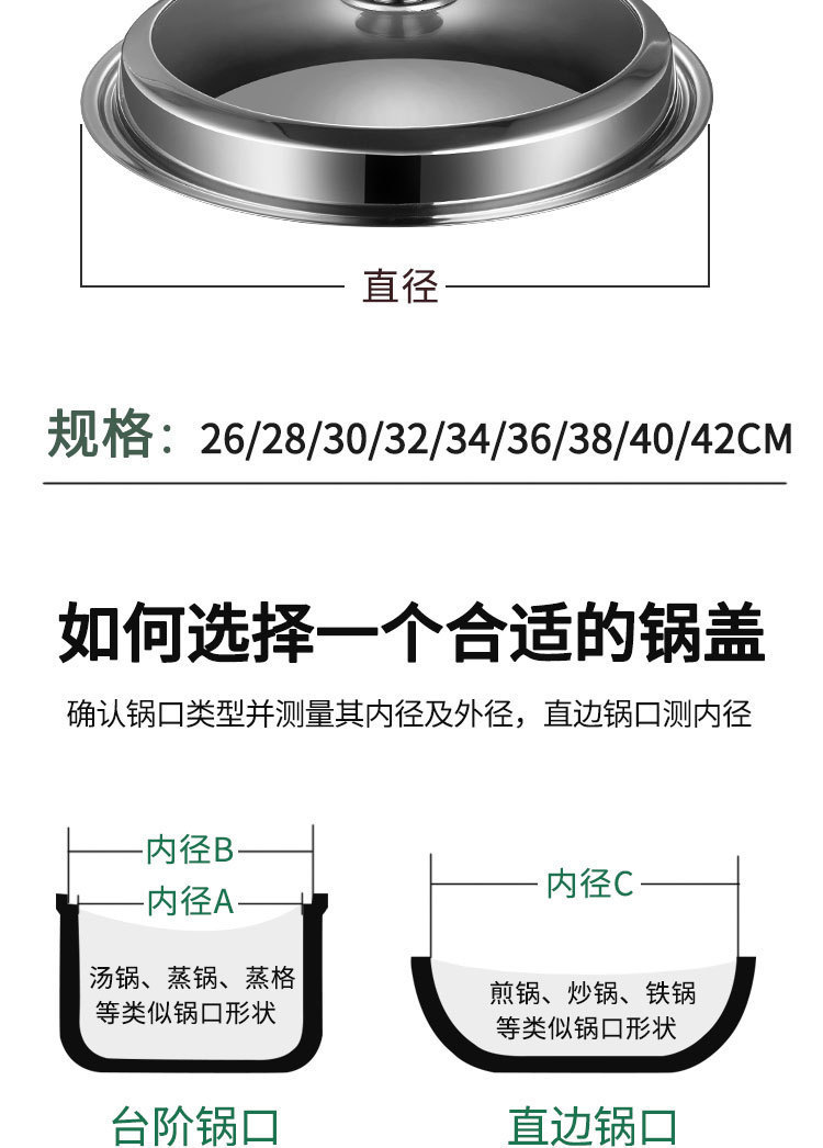 加厚不锈钢雅式盖 无磁家用汤蒸锅盖 大铁锅组合透视玻璃盖子