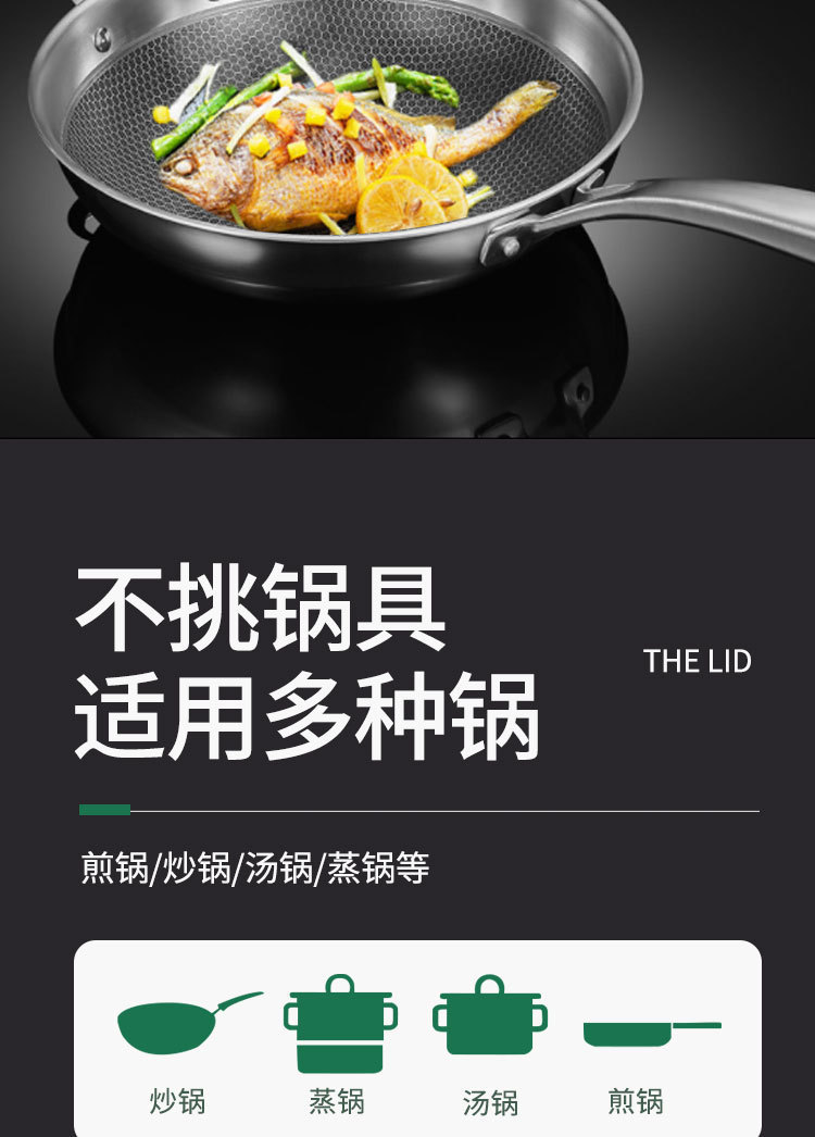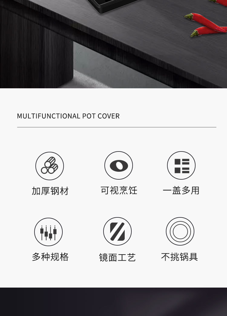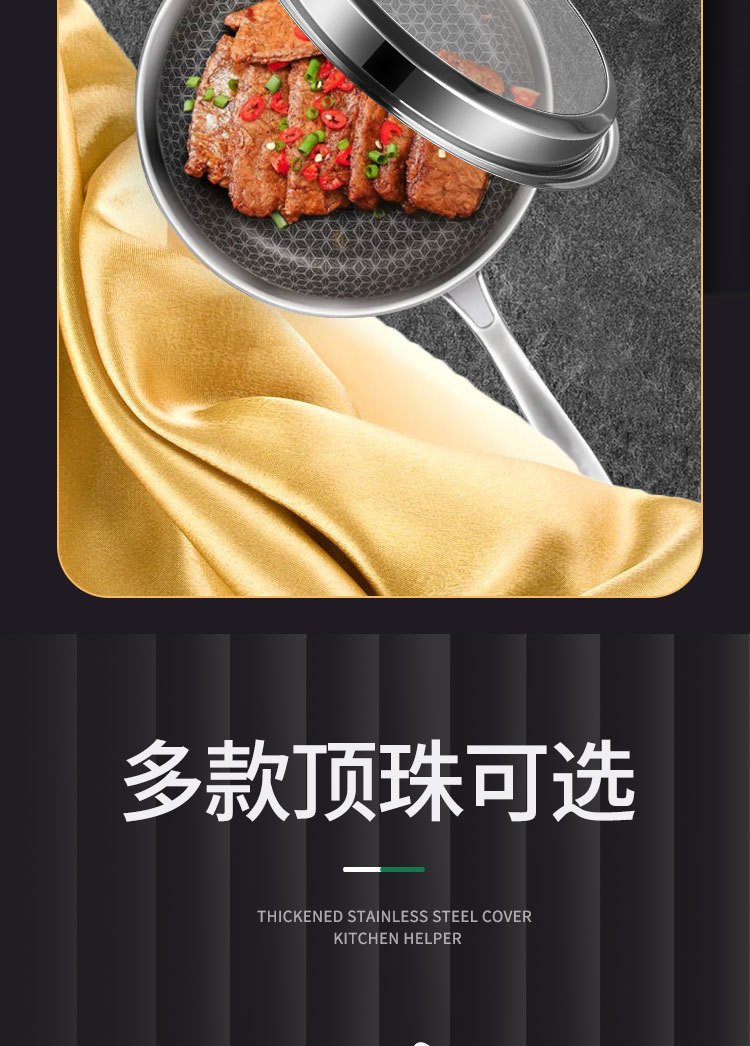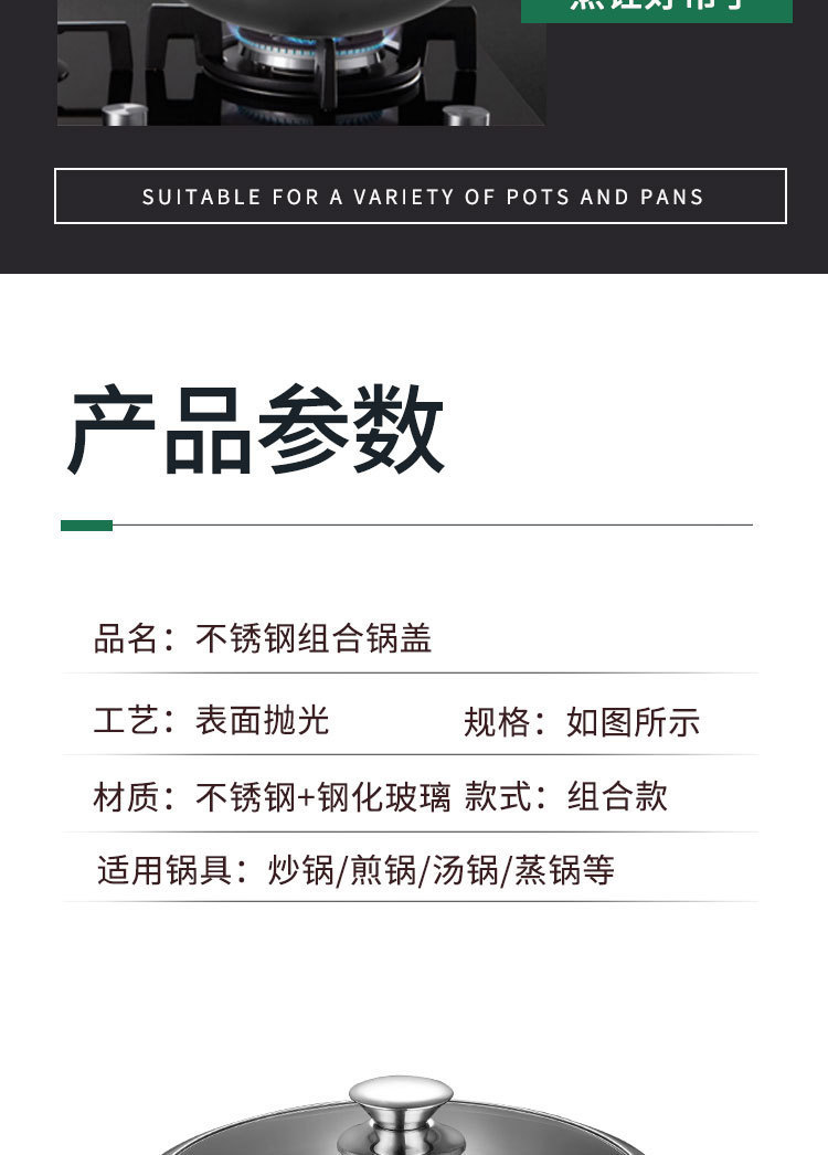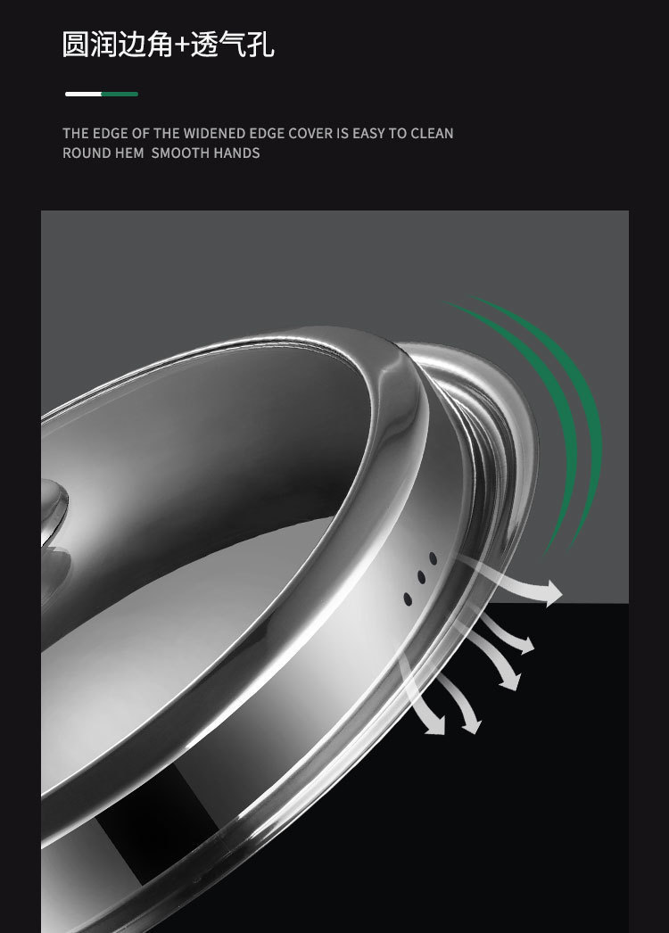 加厚不锈钢雅式盖 无磁家用汤蒸锅盖 大铁锅组合透视玻璃盖子