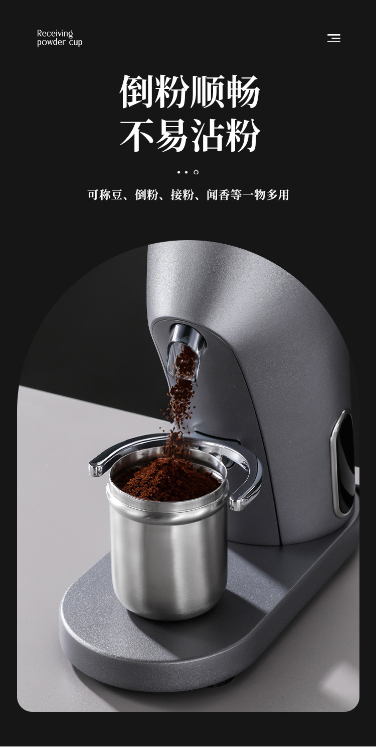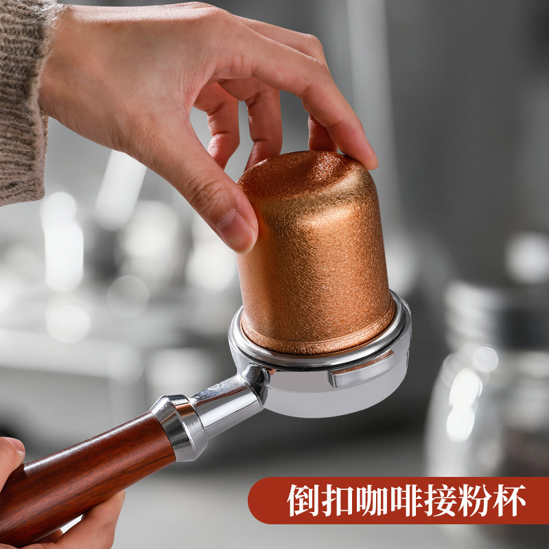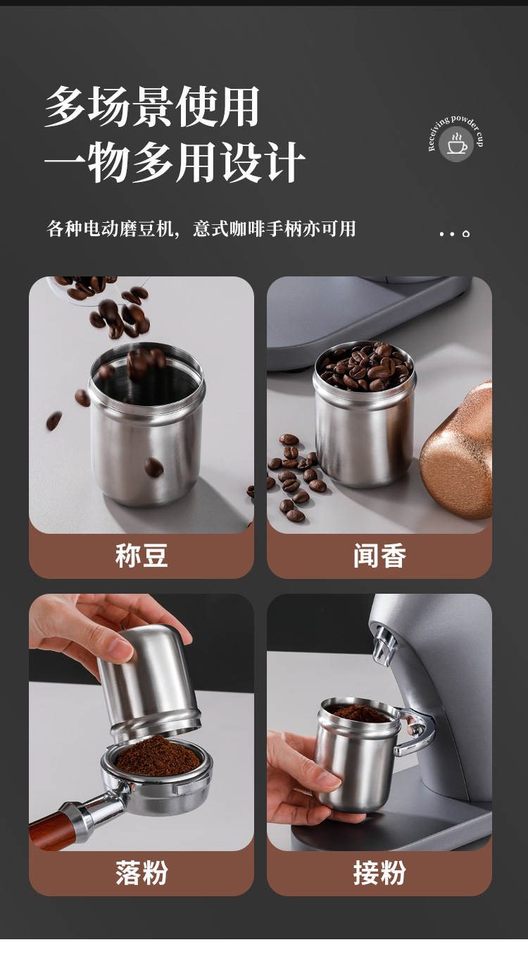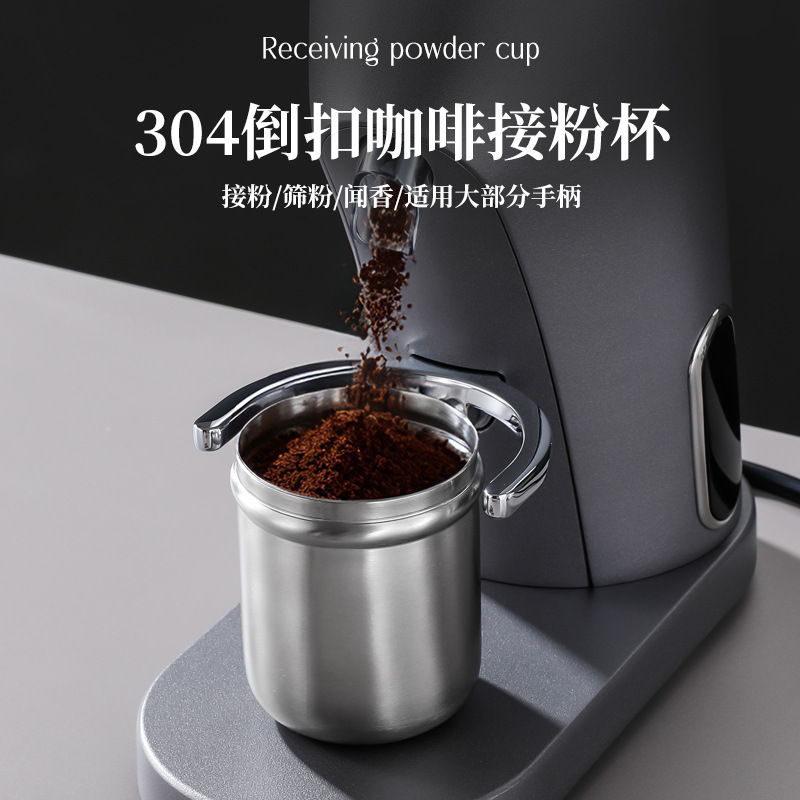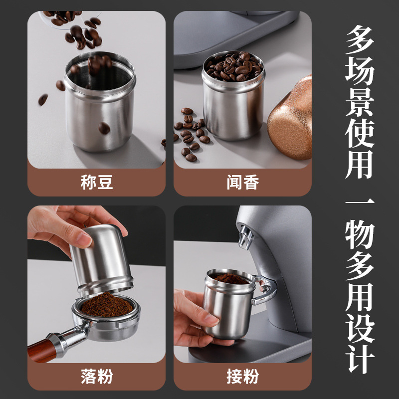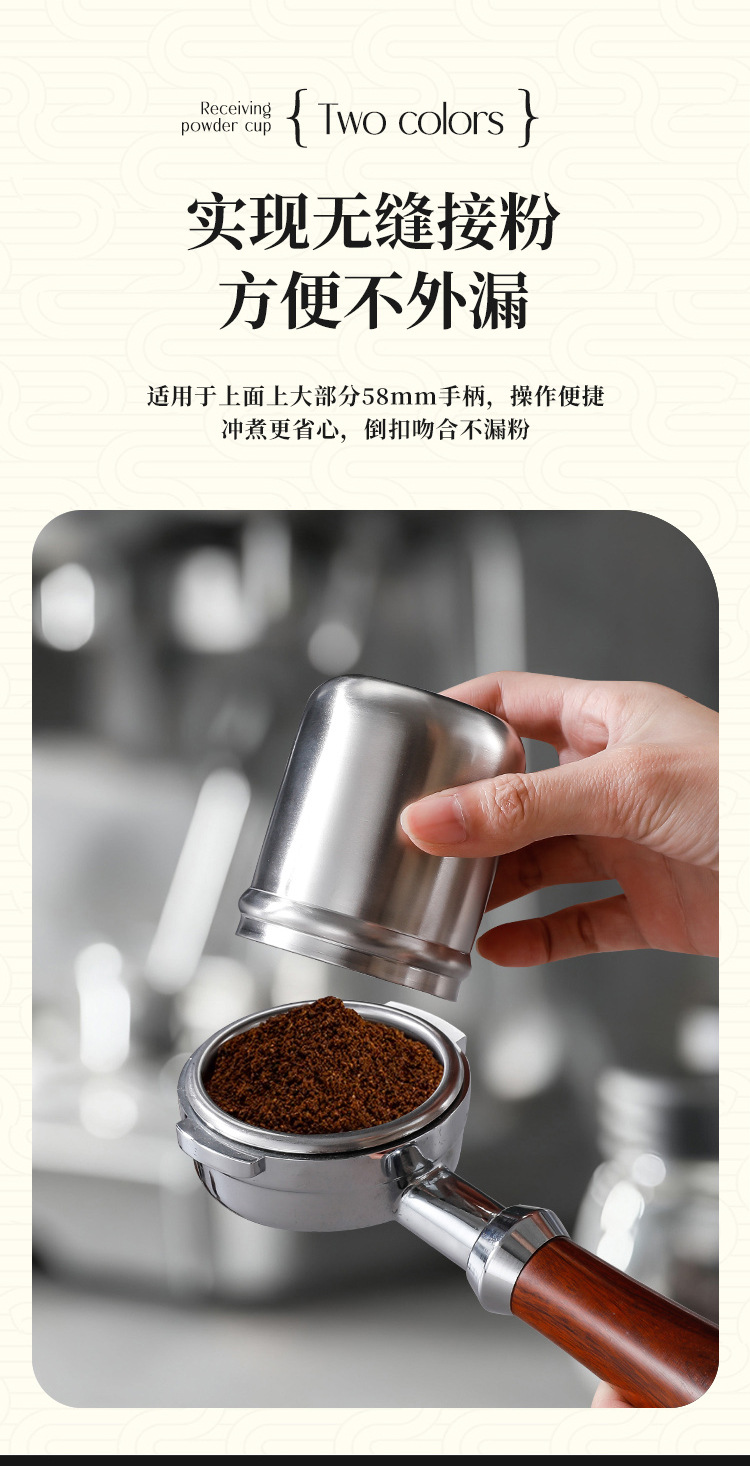 跨境热卖不锈钢304咖啡 防飞粉器具称豆杯58mm接粉杯倒扣接粉器
