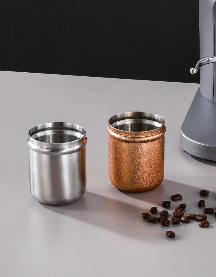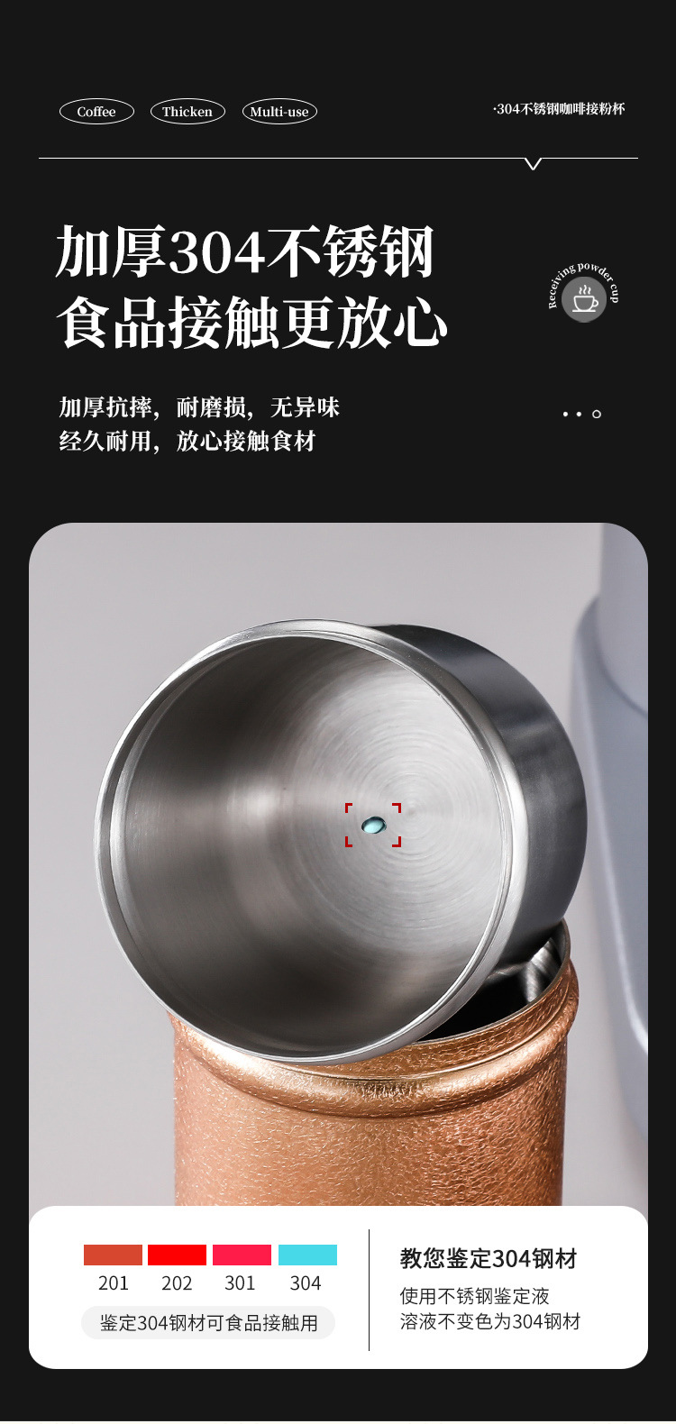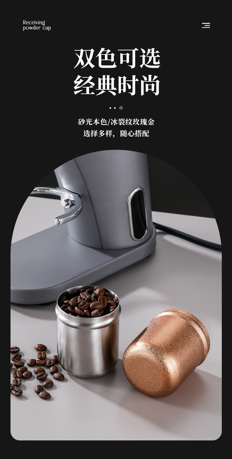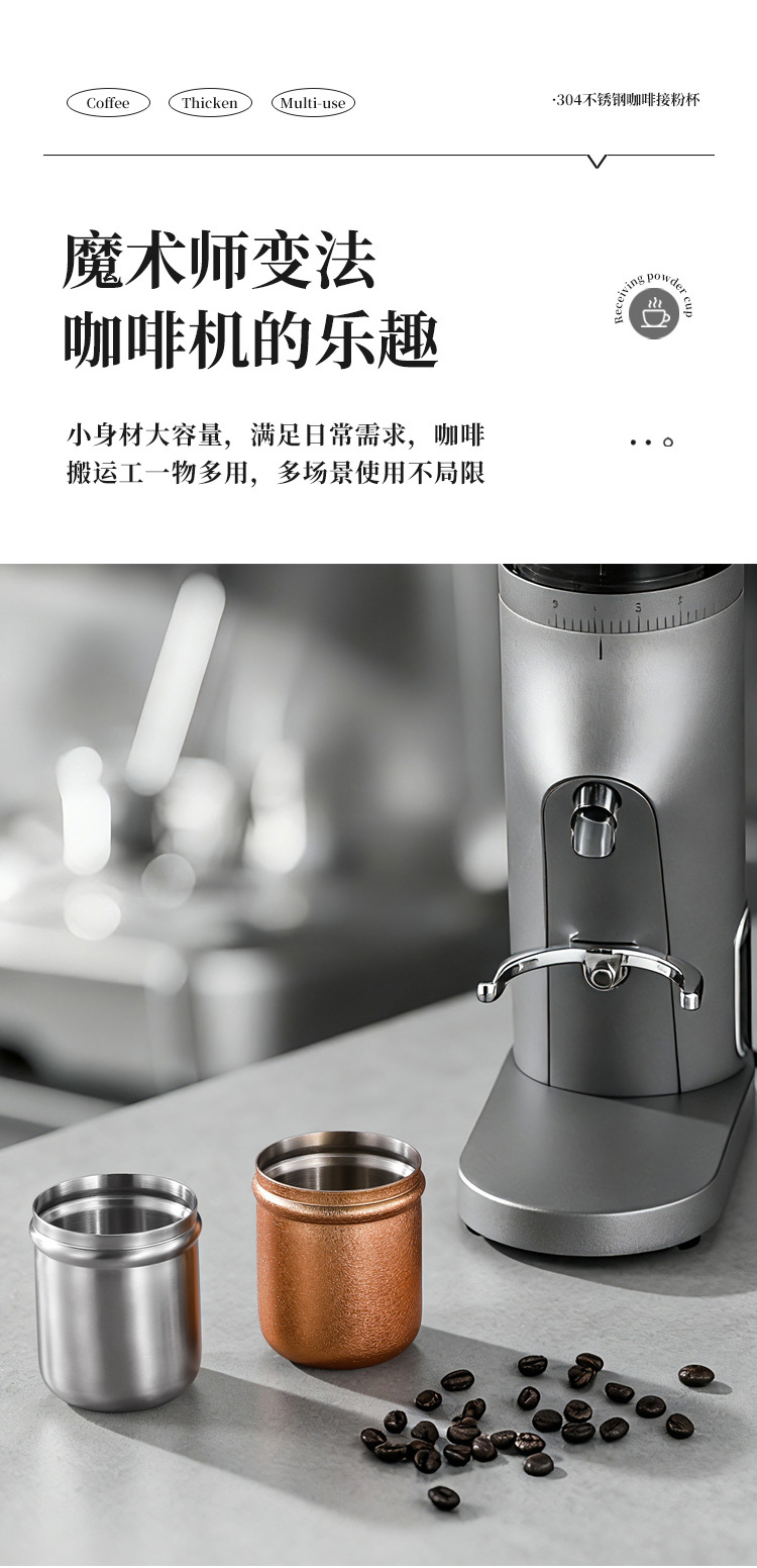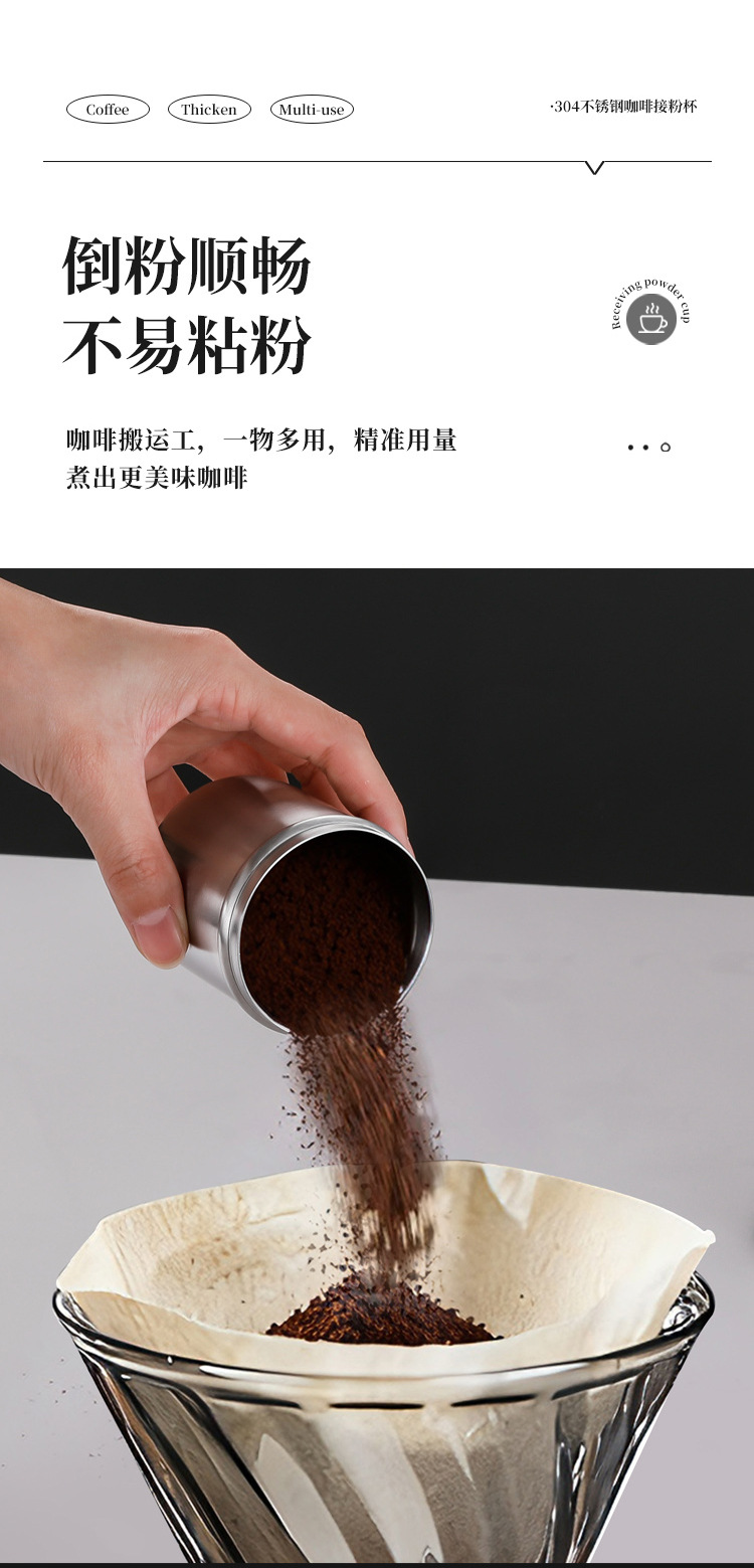 跨境热卖不锈钢304咖啡 防飞粉器具称豆杯58mm接粉杯倒扣接粉器