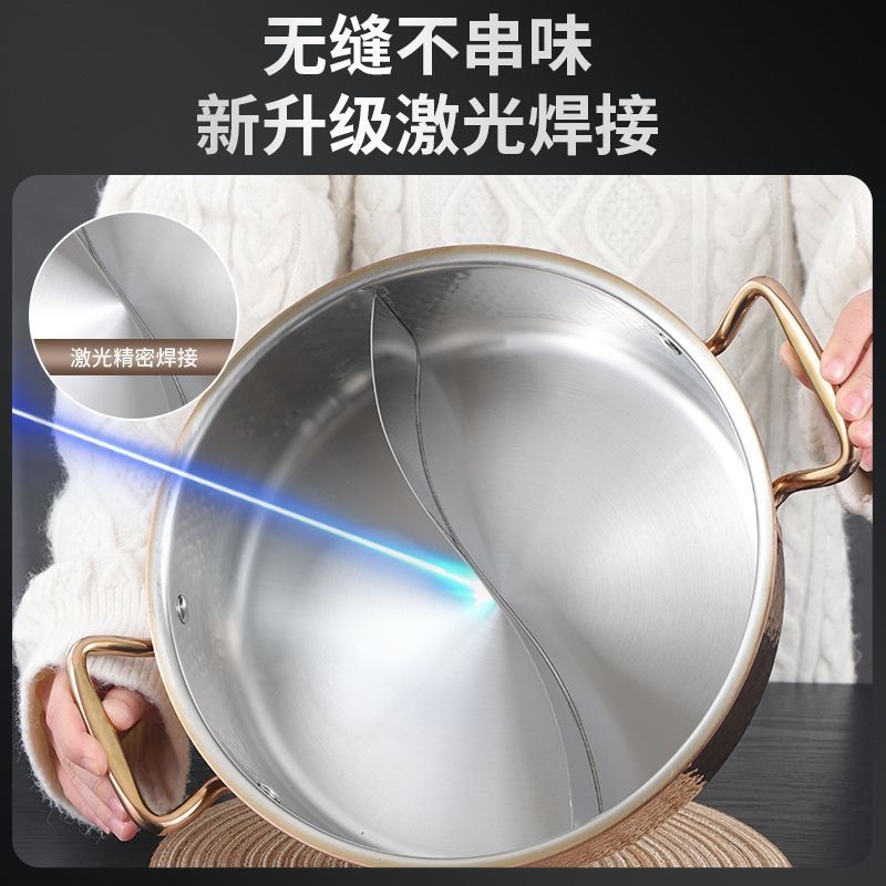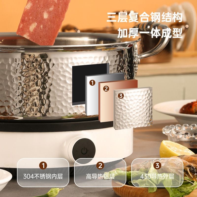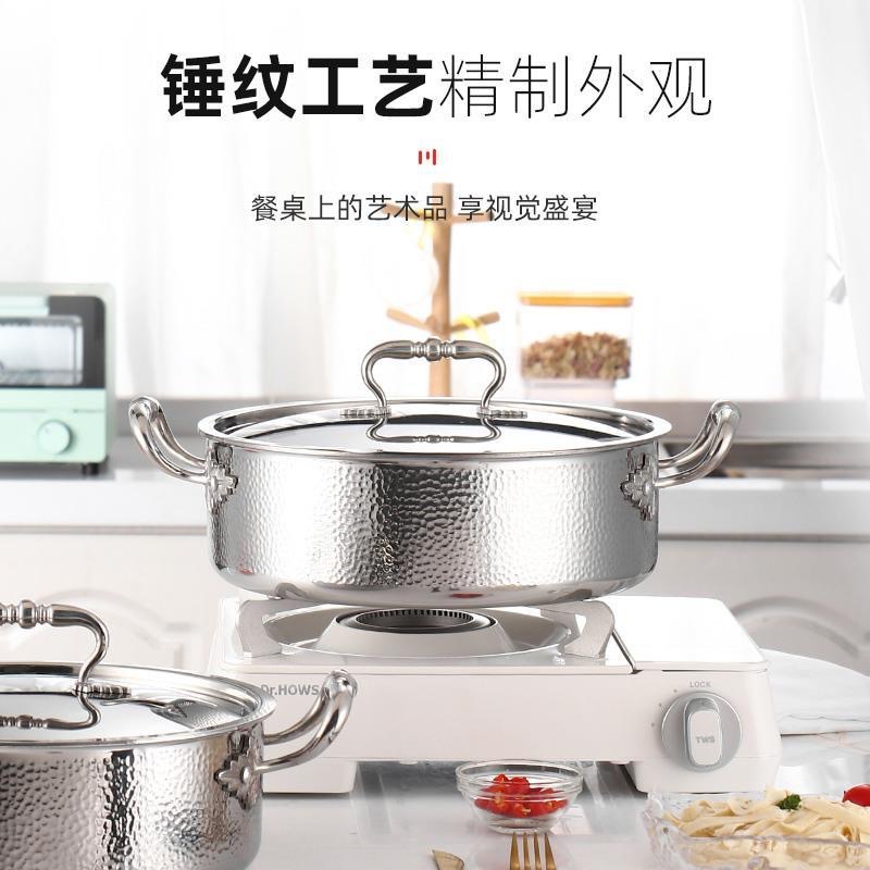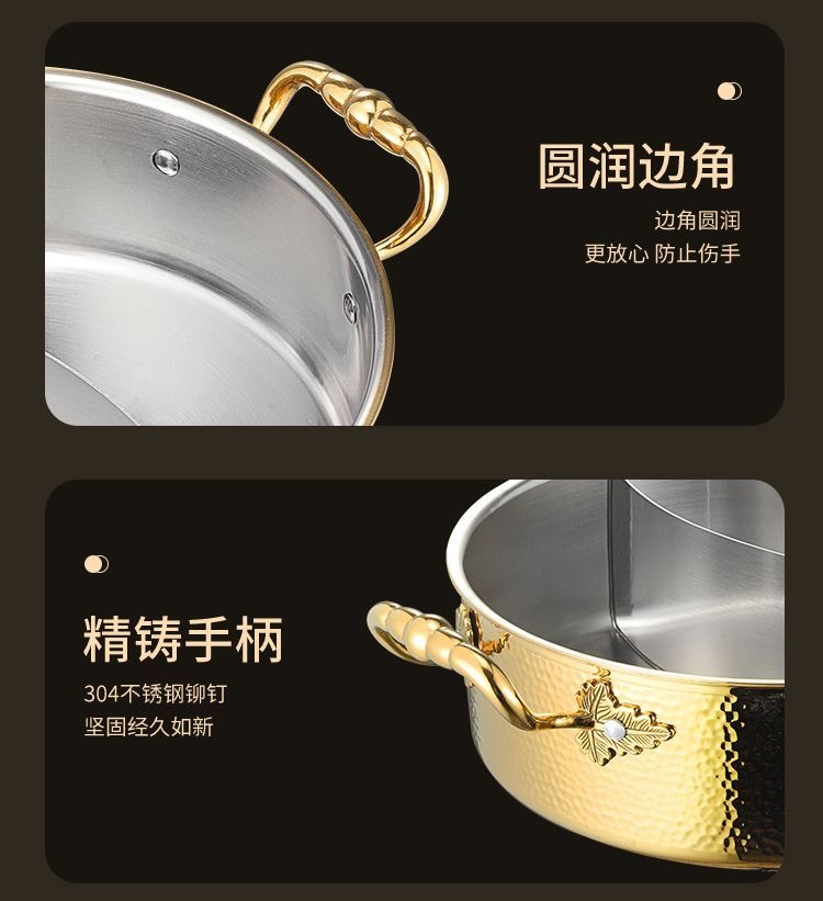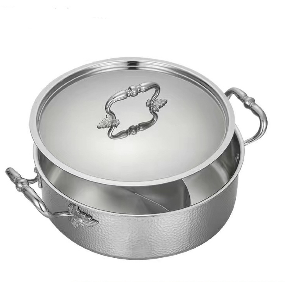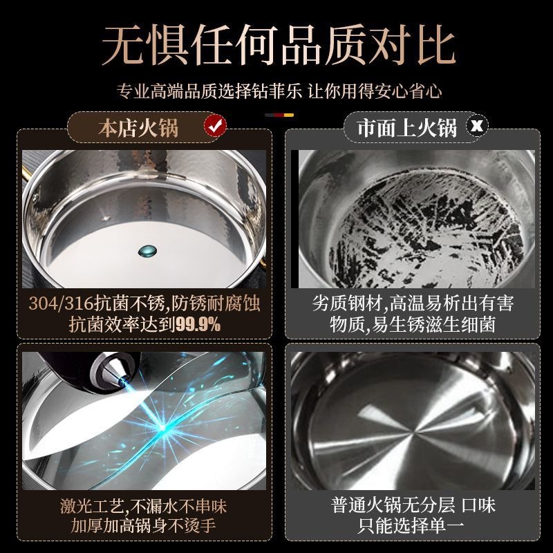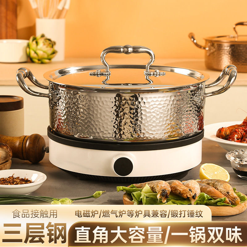 三层钢304锤纹火锅汤锅 商用家用大容量鸳鸯锅 椰子鸡专用锅火锅