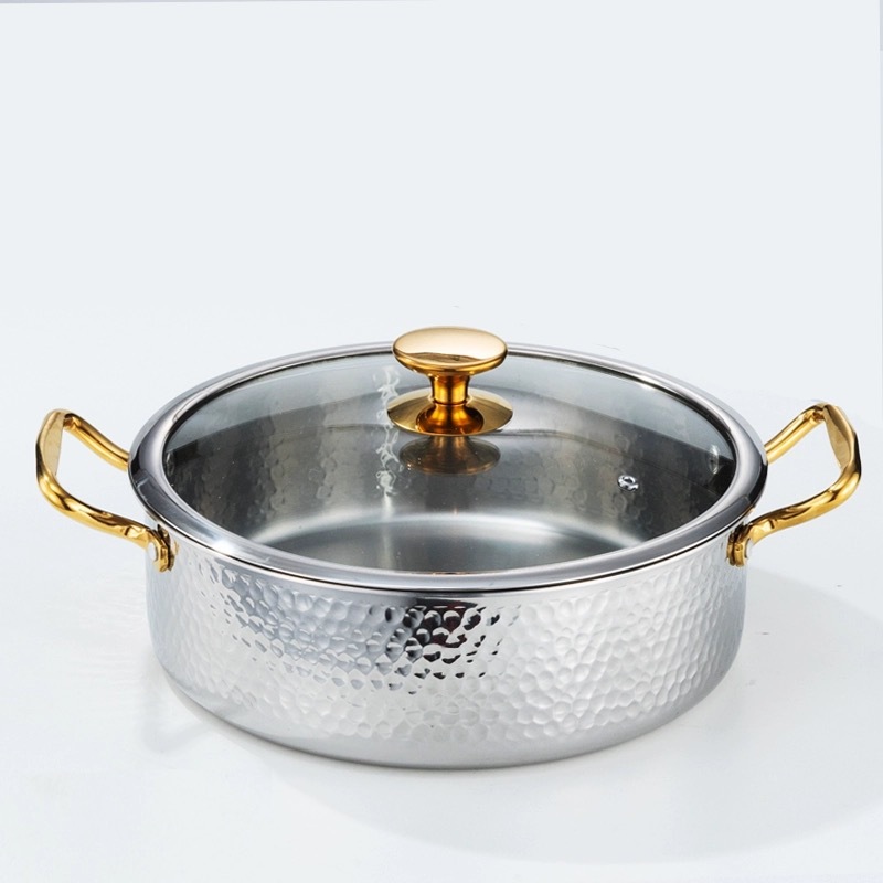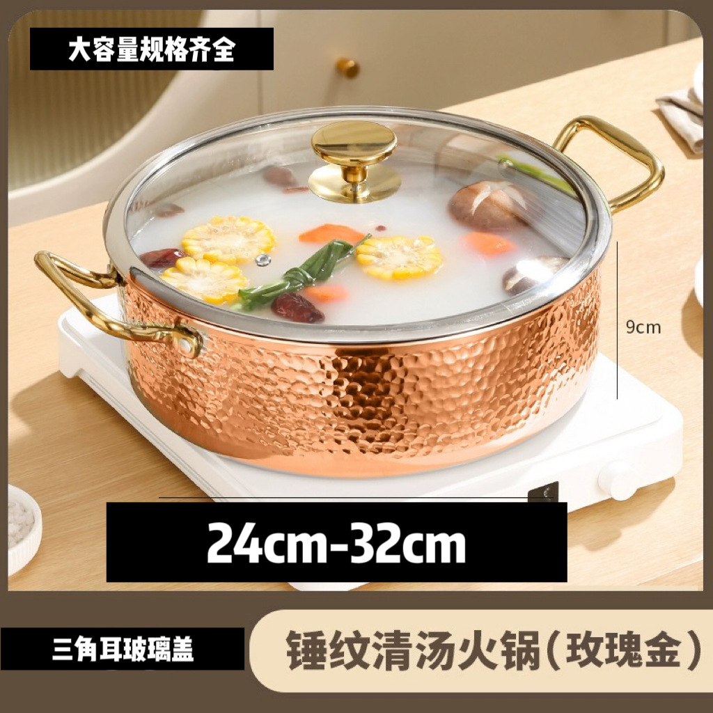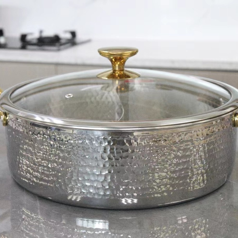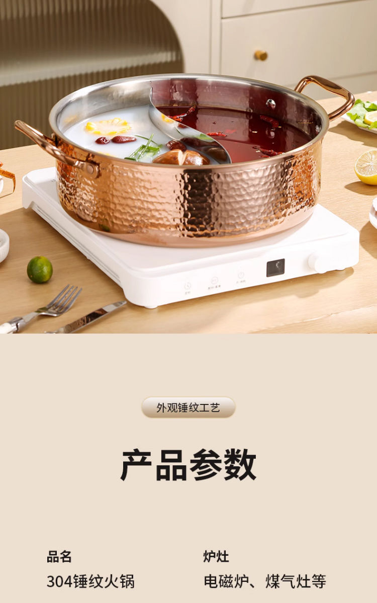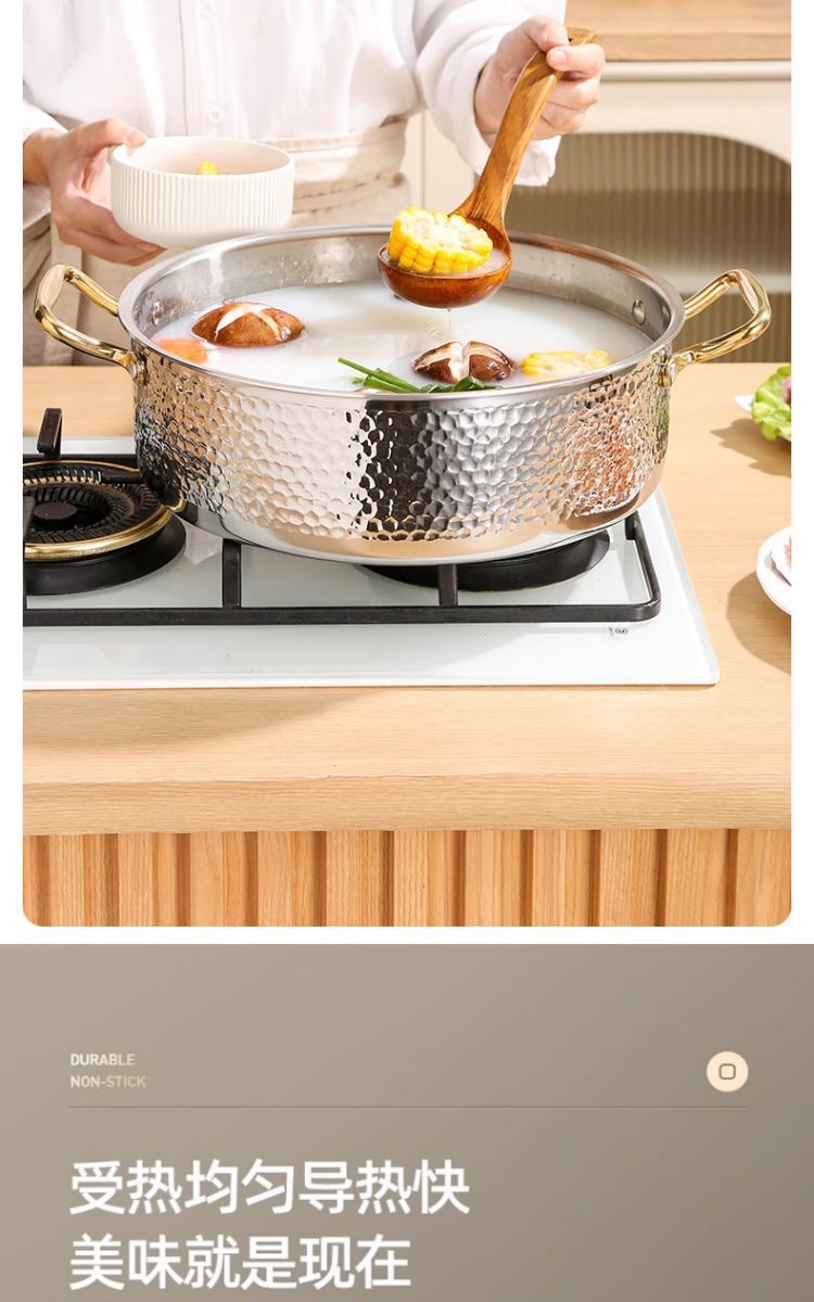 三层钢304锤纹火锅汤锅 商用家用大容量鸳鸯锅 椰子鸡专用锅火锅