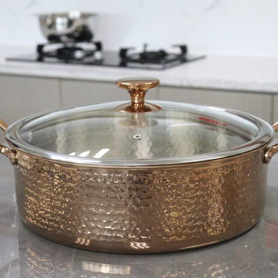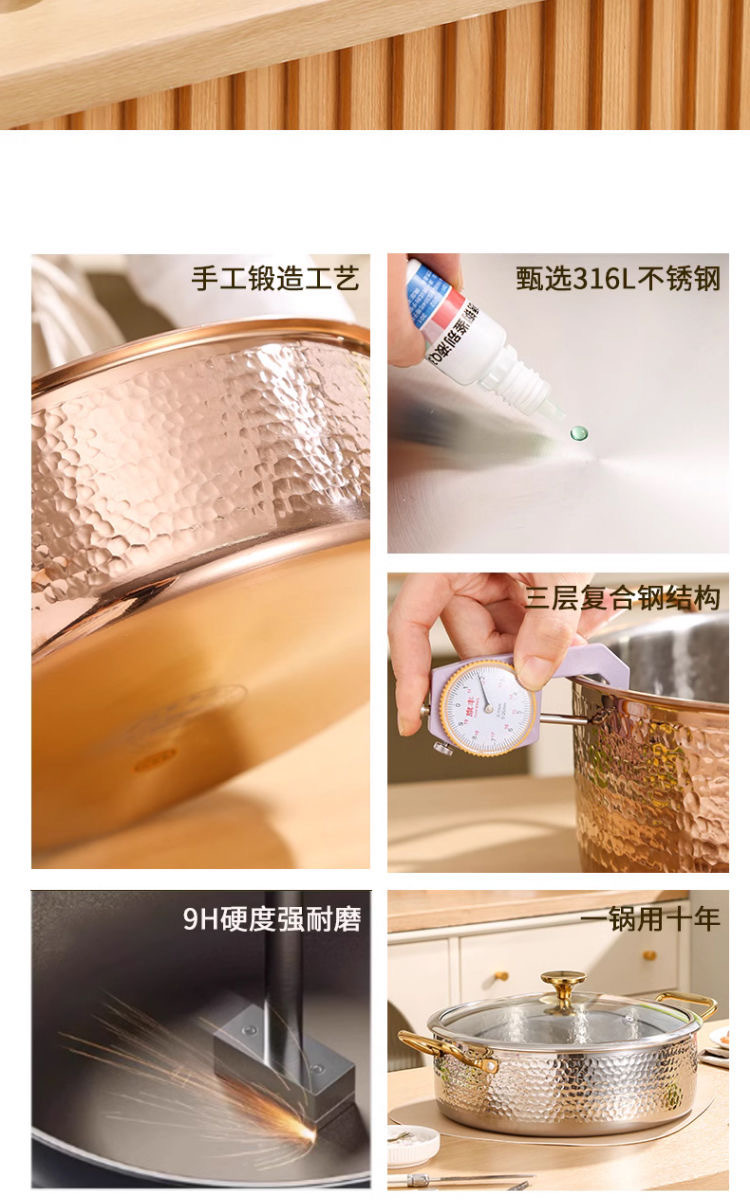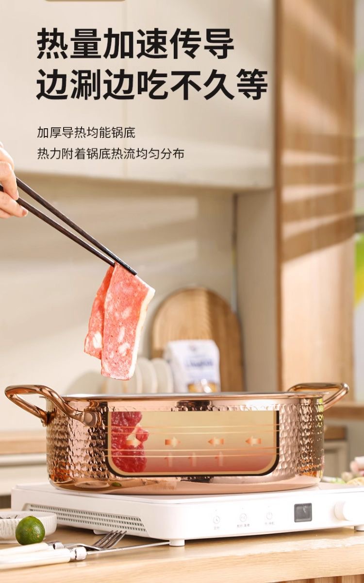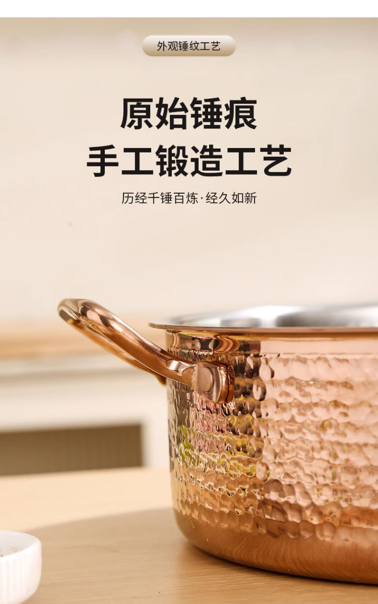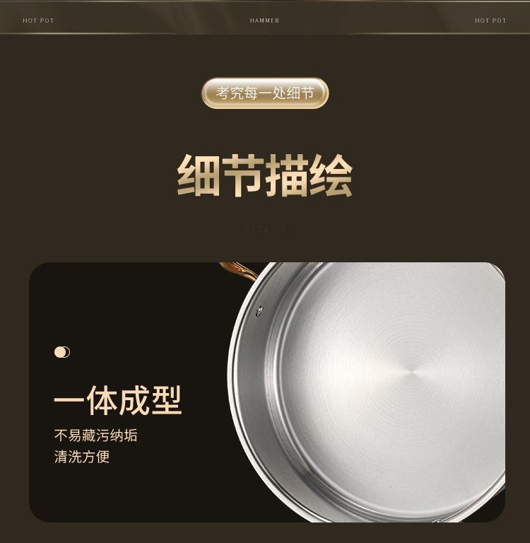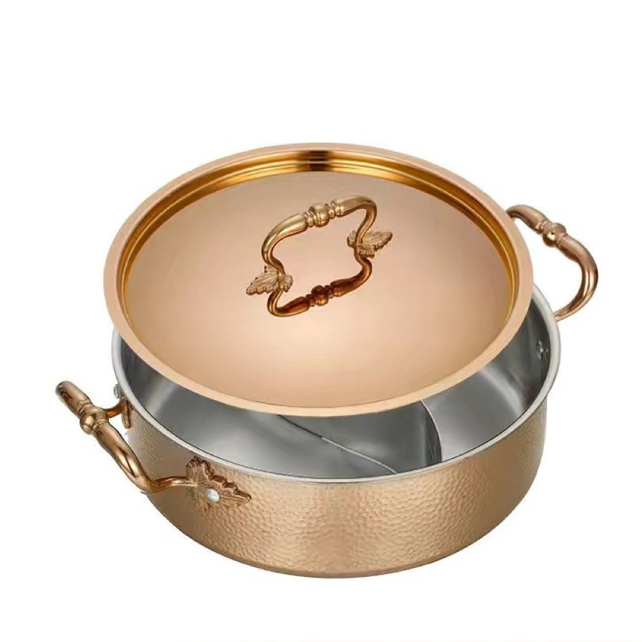 三层钢304锤纹火锅汤锅 商用家用大容量鸳鸯锅 椰子鸡专用锅火锅