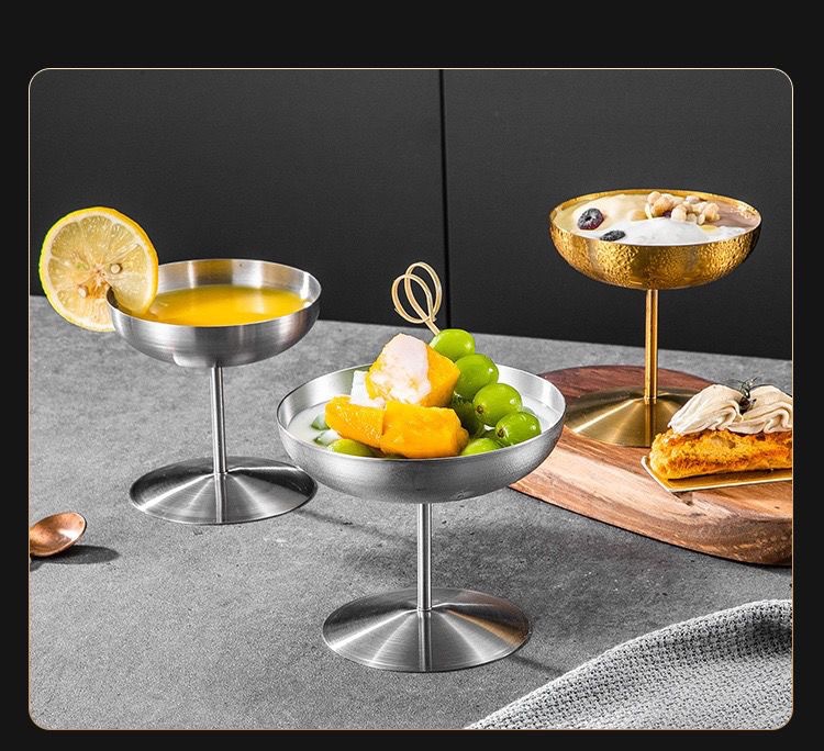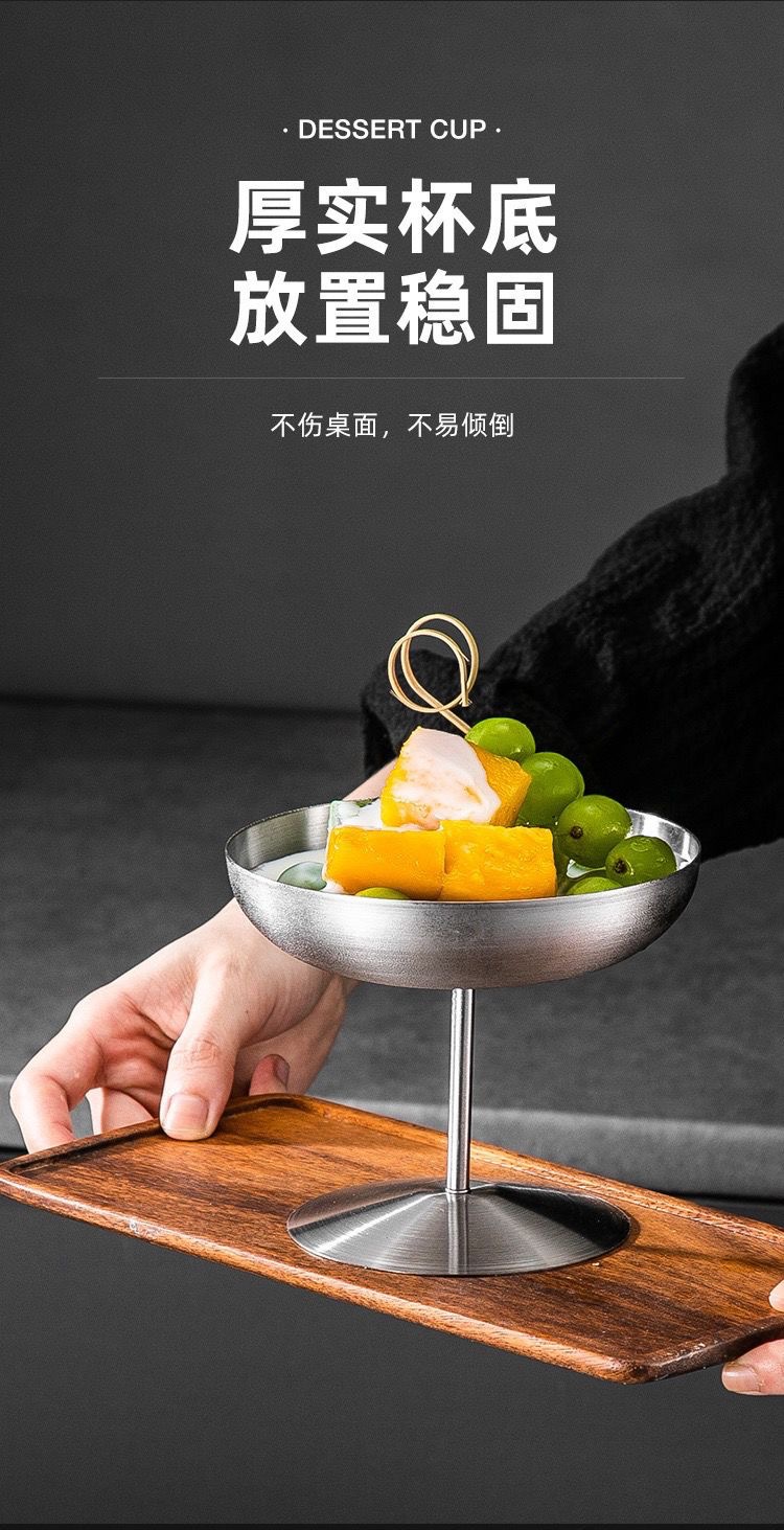 跨境304不锈钢高脚杯雪糕杯冰淇淋雪球杯甜品布丁马丁尼鸡尾酒杯